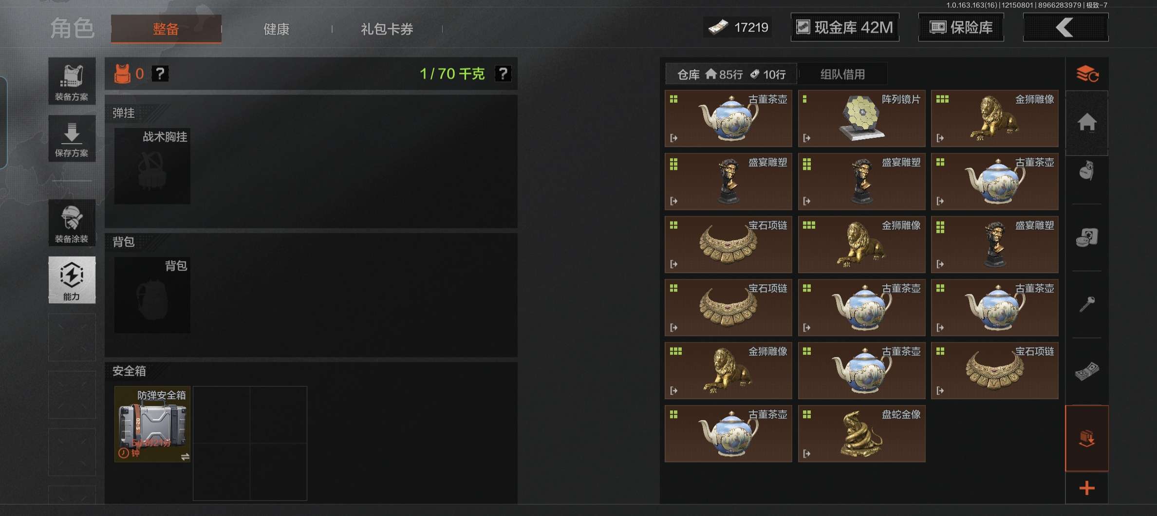 退游号,仓库价值21m,内有17m的纯币和一仓库跑商物品