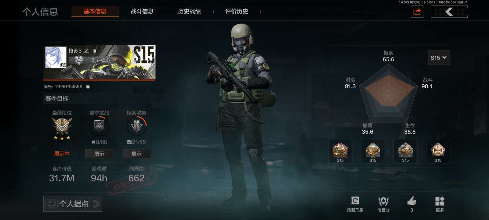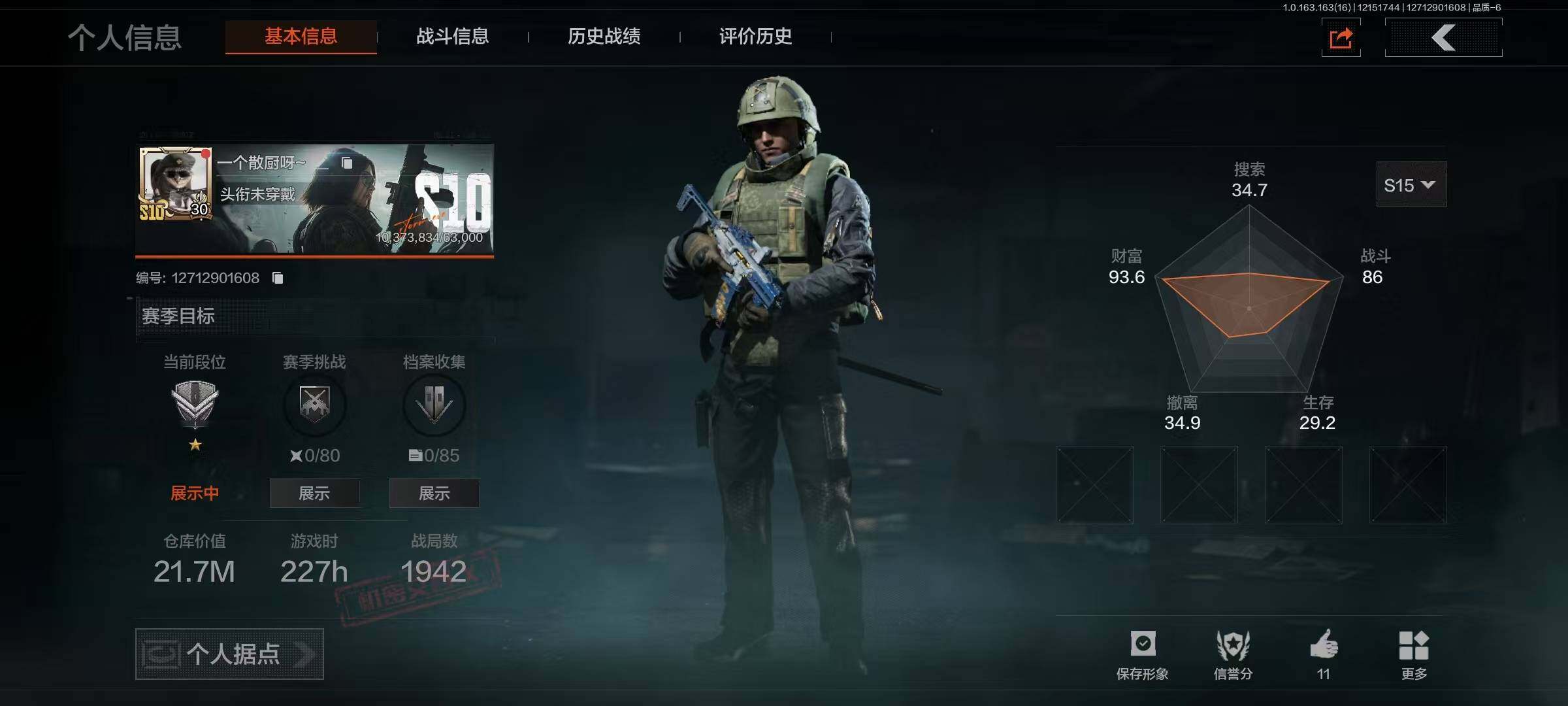 段位:尖兵/仓库价值(百万):21/裁决手杖剑