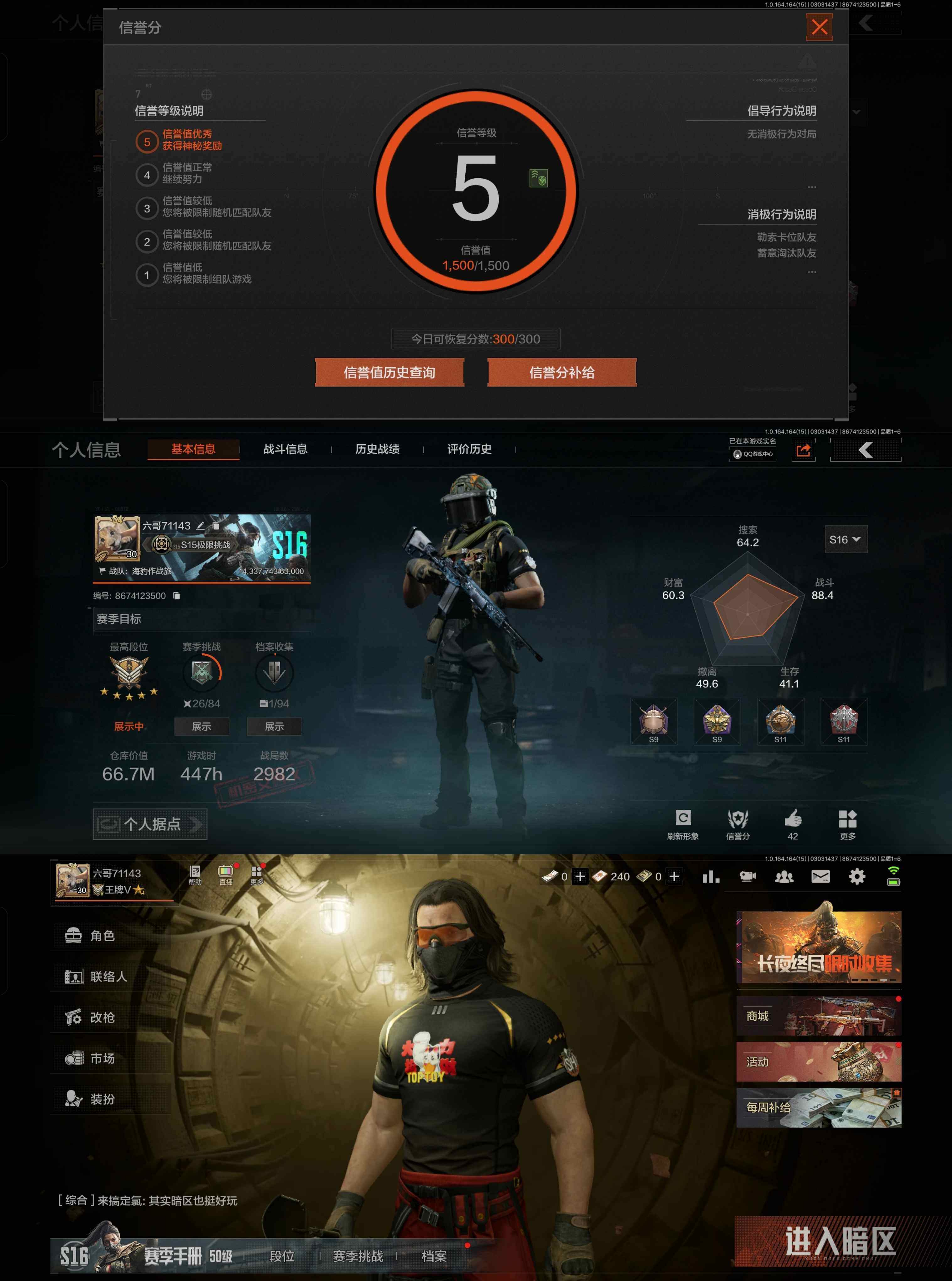 w53,2把刀赢家匕首,1黄枪利齿风暴,仓库36.2M,哈夫币20300K,1