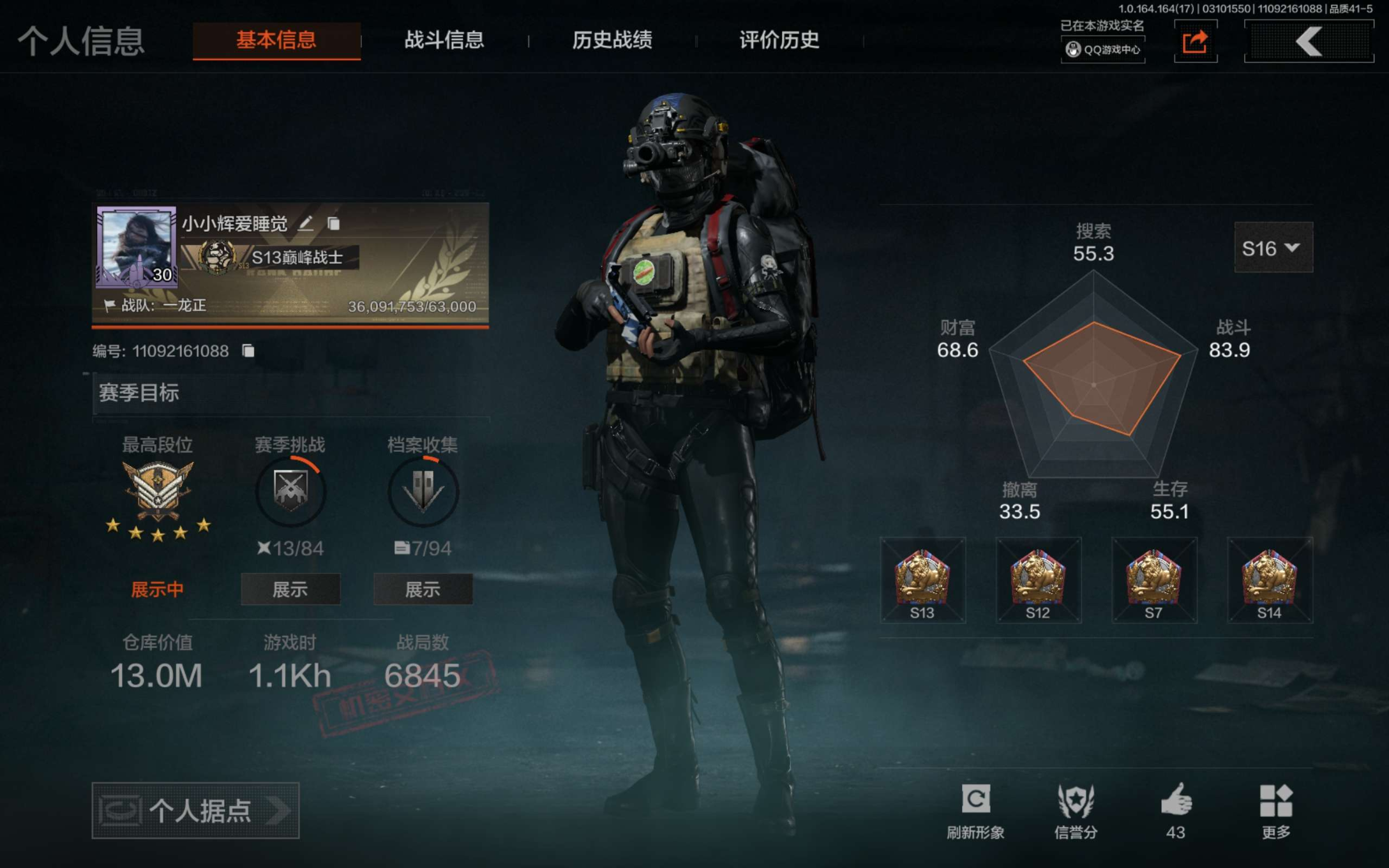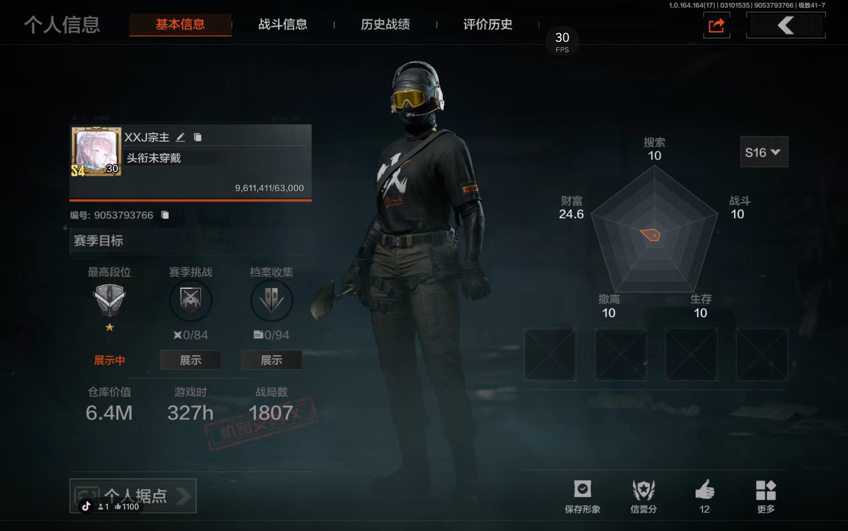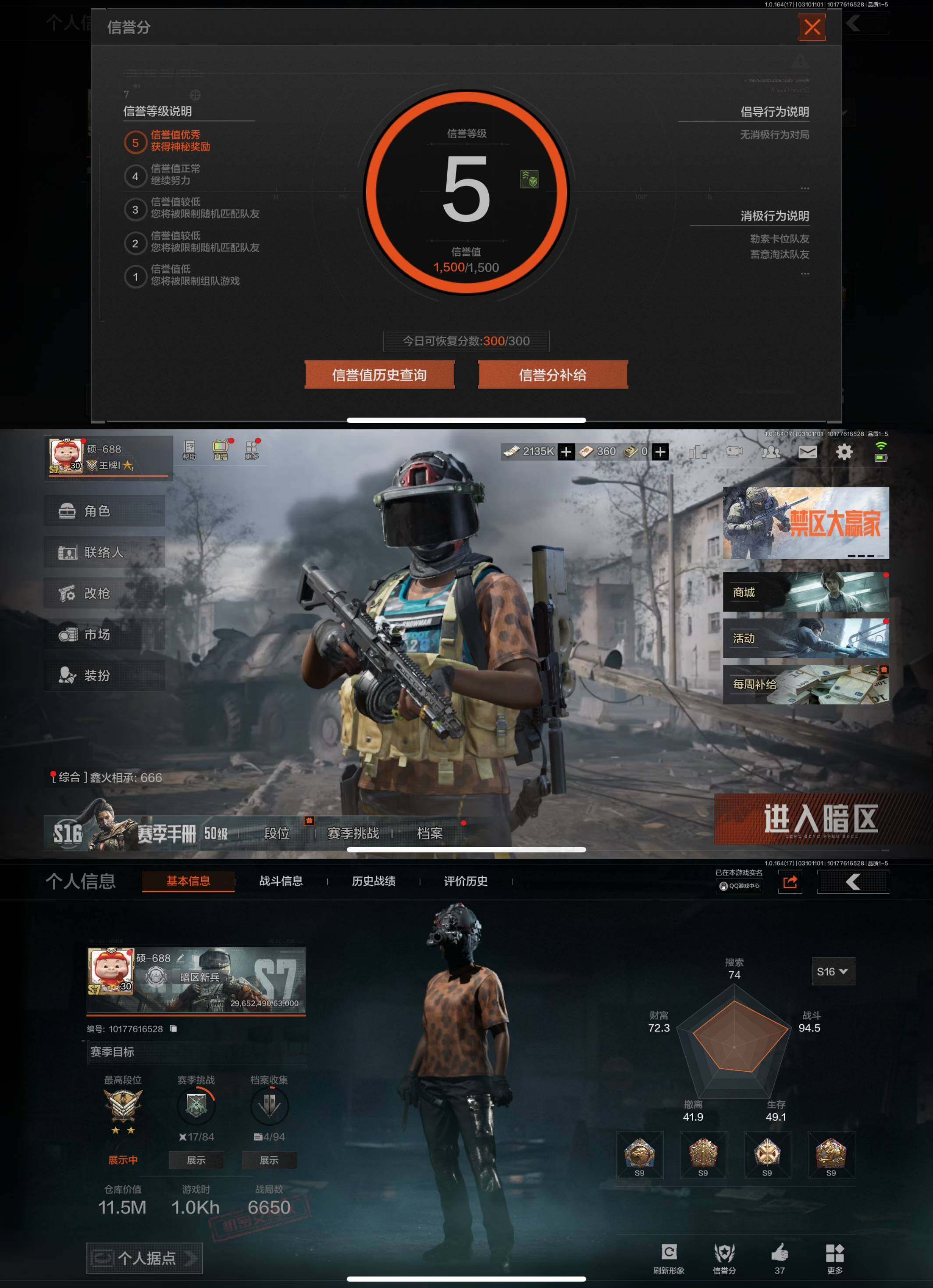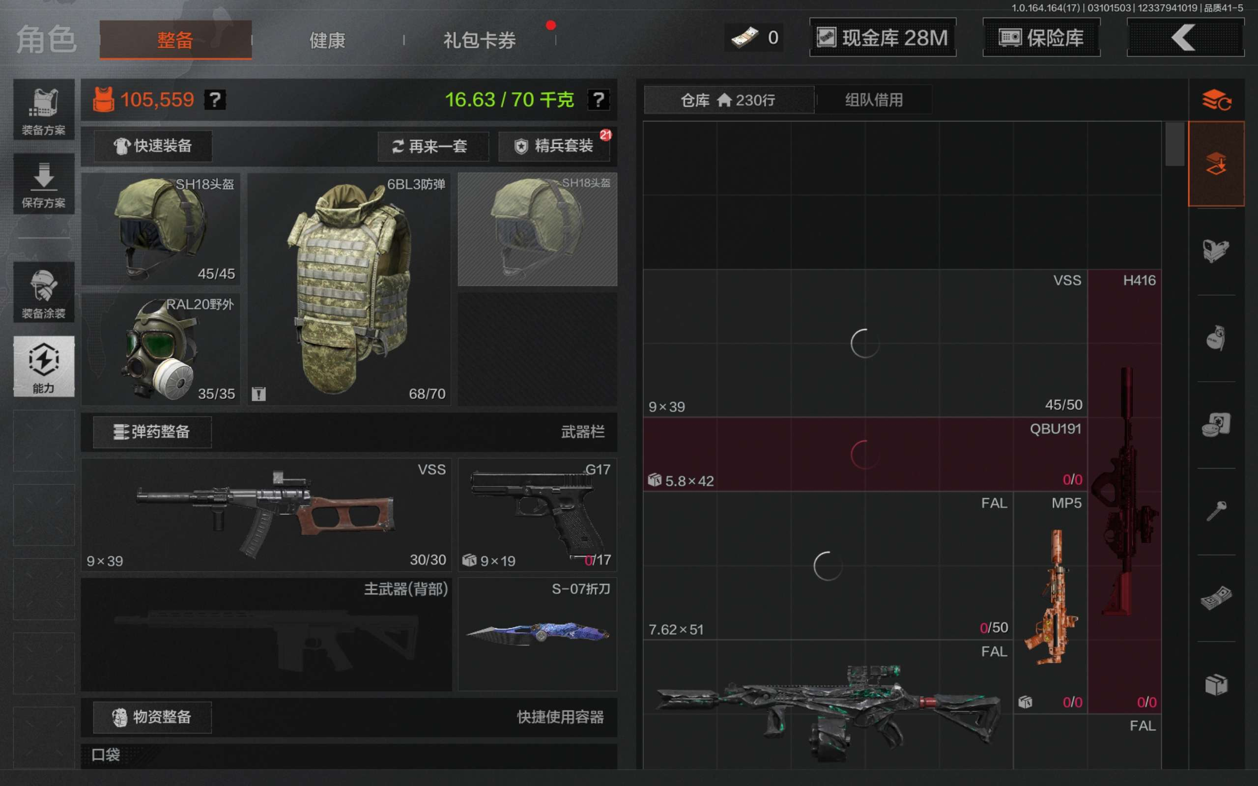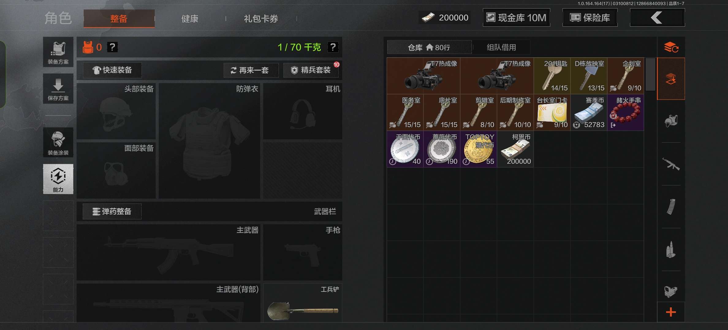 z30,2把刀空腔战术,1黄枪战术大师,仓库34.4M,科恩币20070K,1