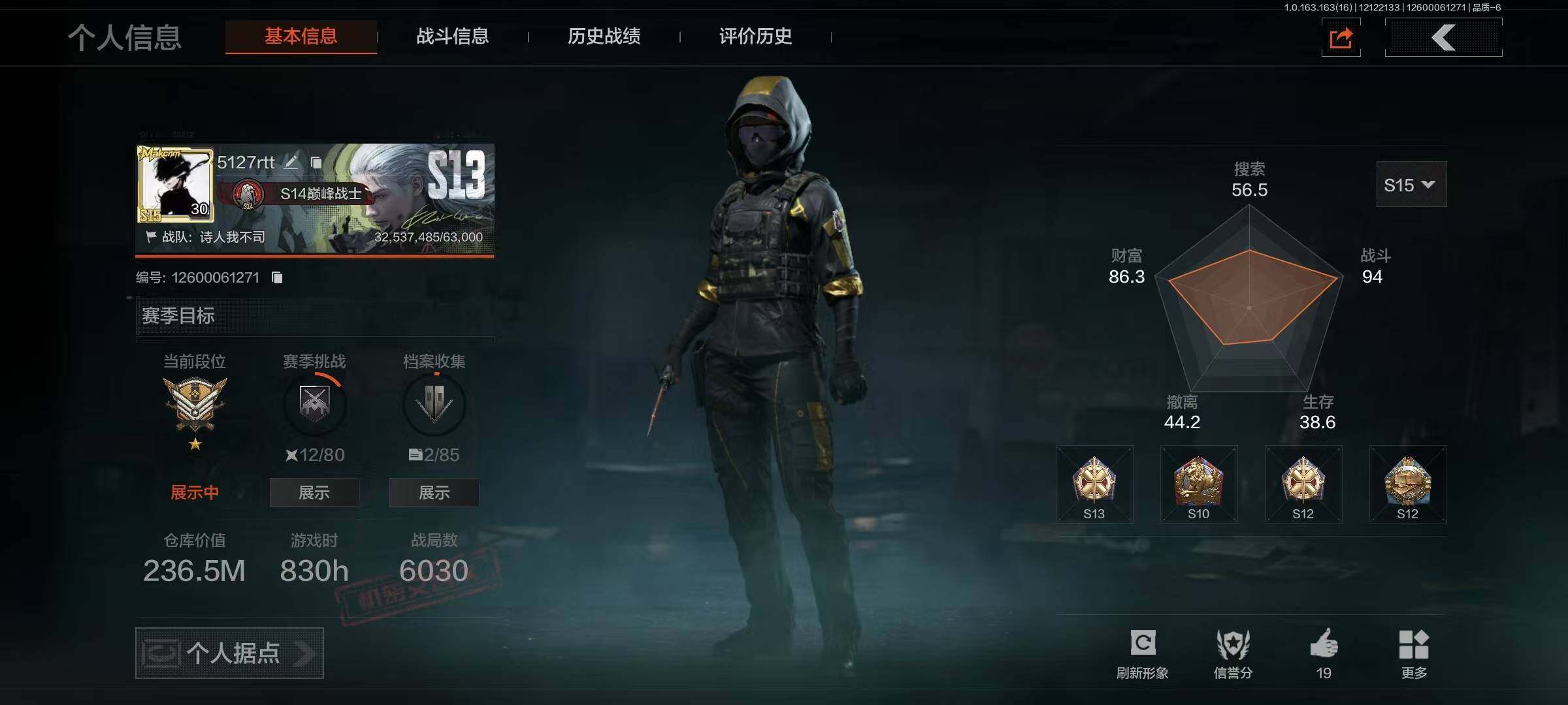 等级:30/段位:专家/仓库价值(百万):49.2/