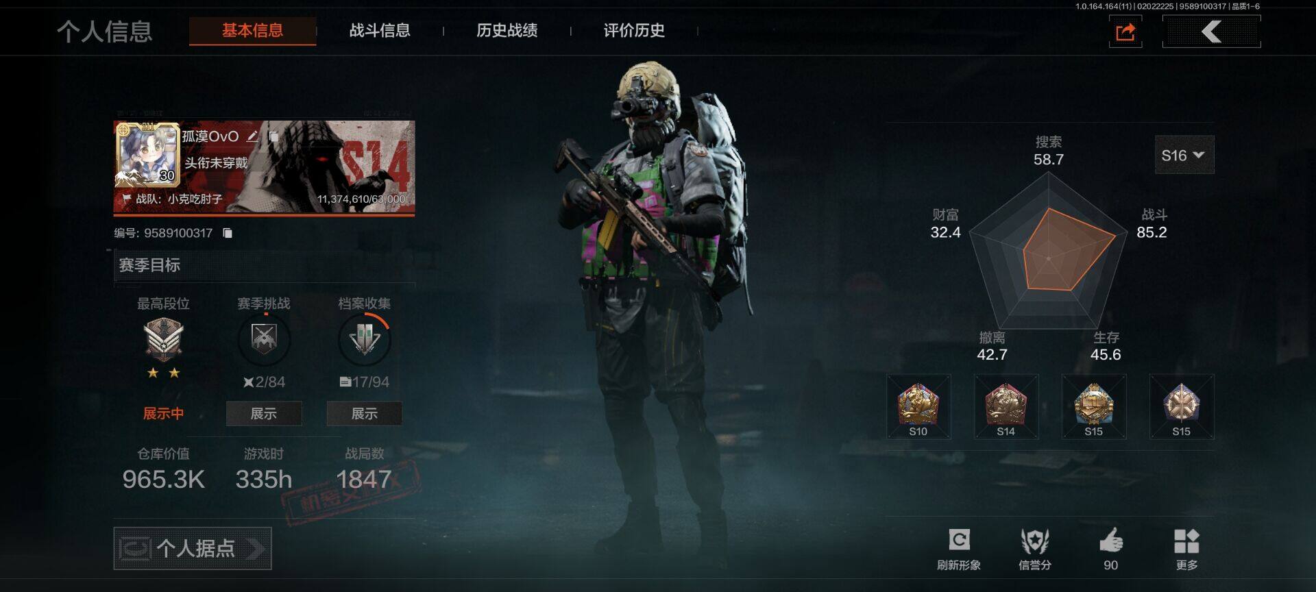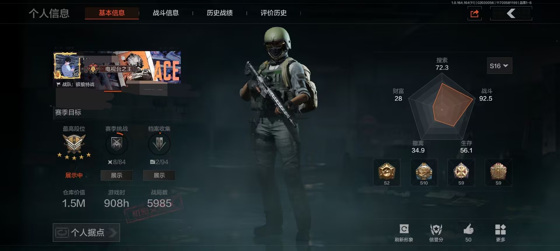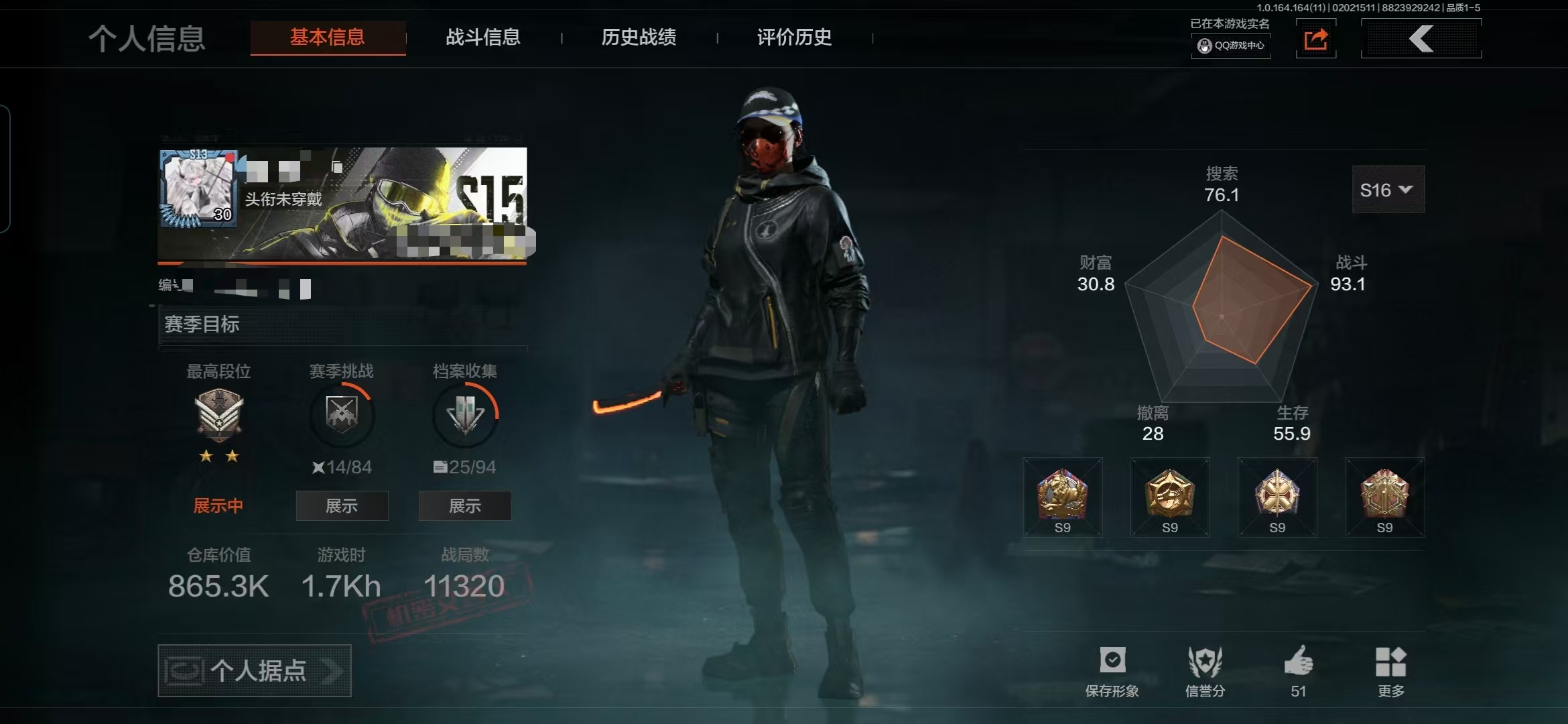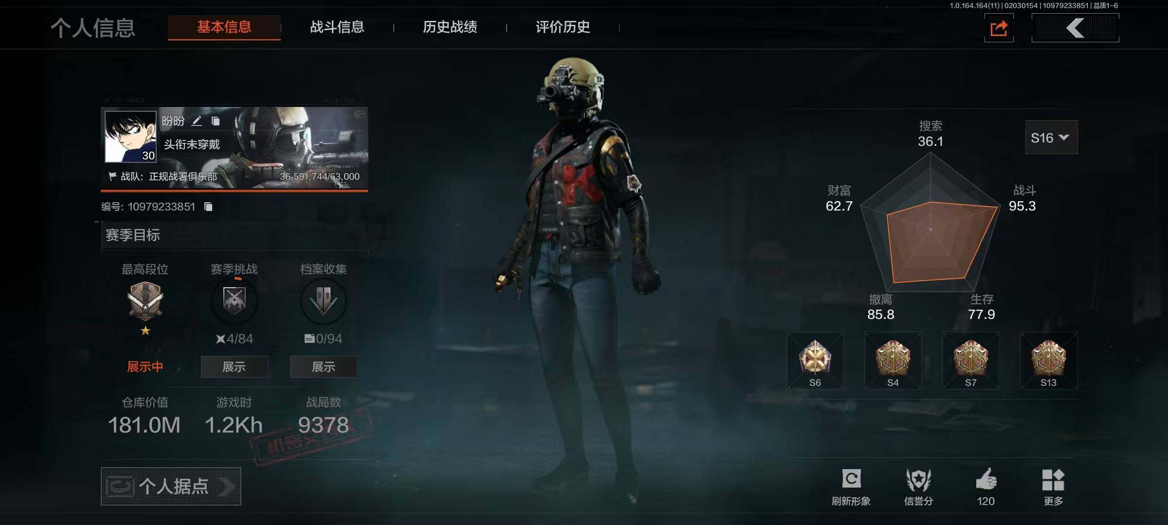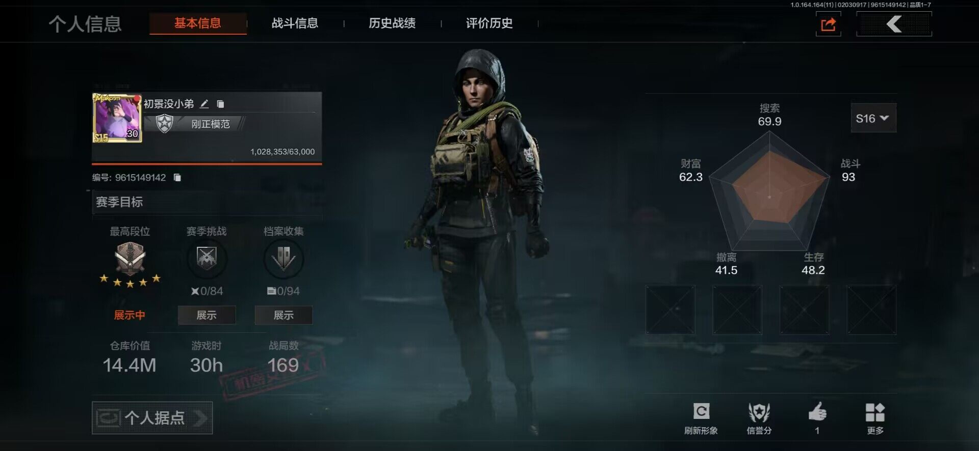 等级:30/段位:王牌/仓库价值(百万):11/柯恩币:2868/
