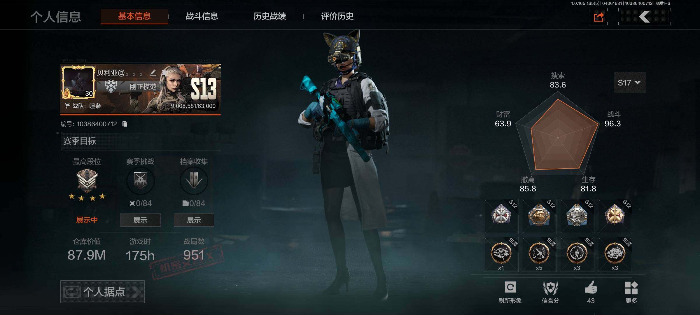 【AQZ353】等级:30/段位:暗区传说/仓库价值(百万):96.7/柯恩币