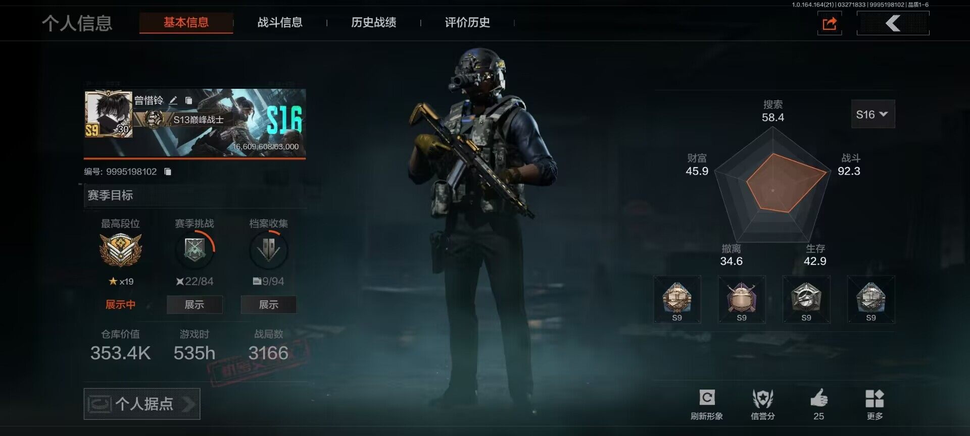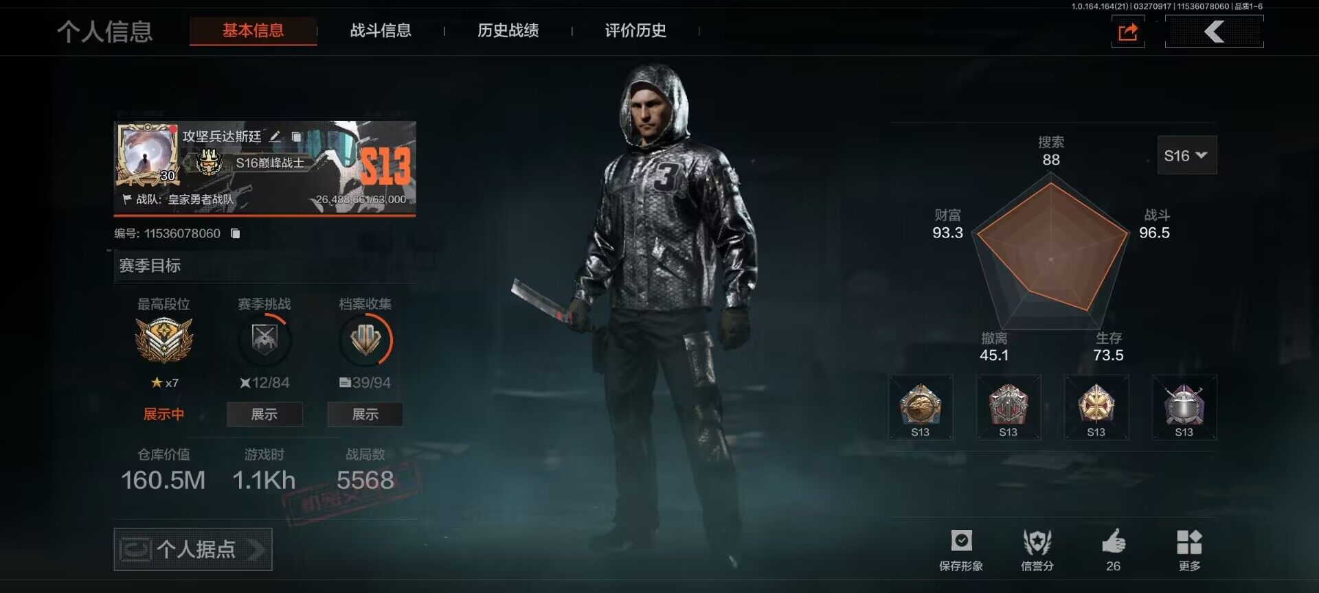 【AQZG1839】等级:30/段位:王牌/仓库价值(百万):124/柯恩币: