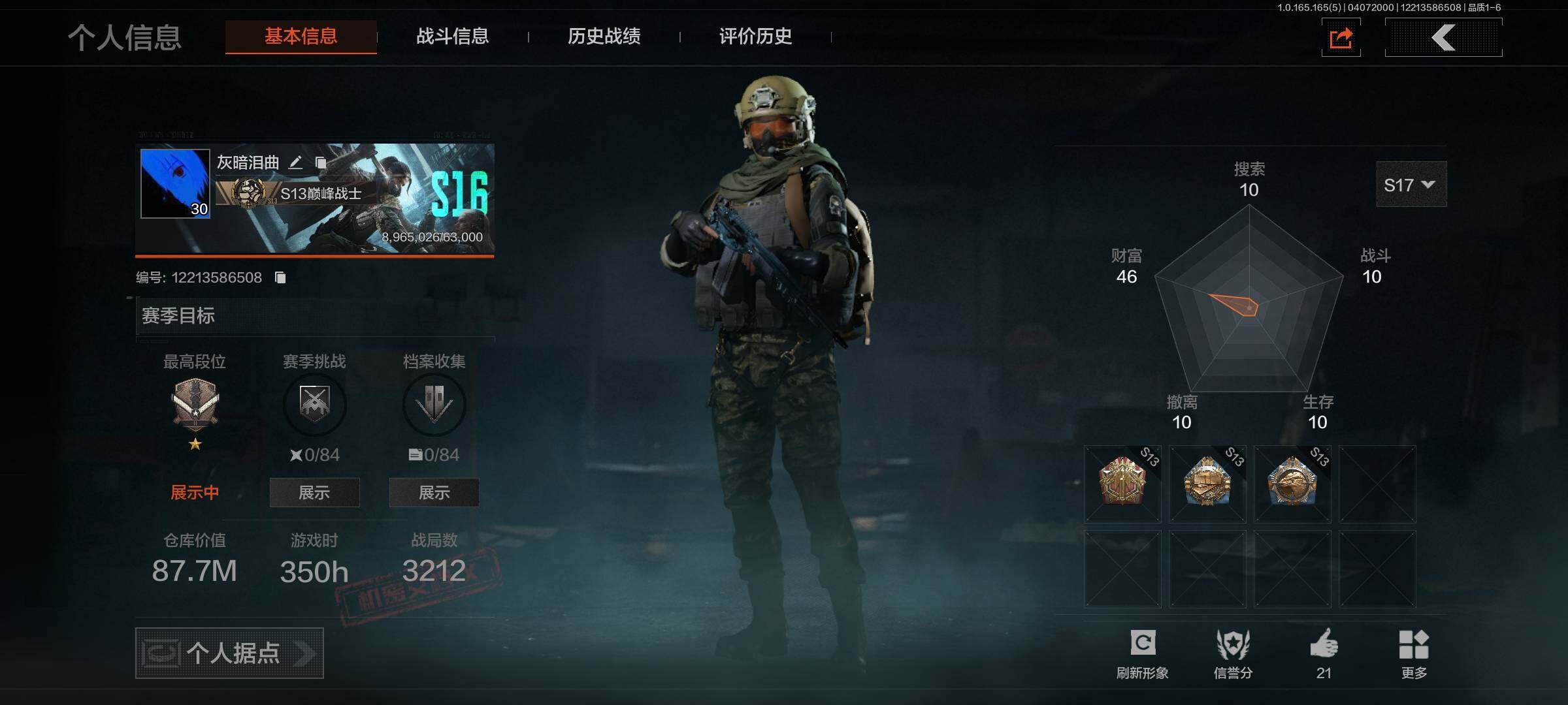 【AQZ397】段位:大师/仓库价值(百万):32.1/柯恩币:9233/工兵