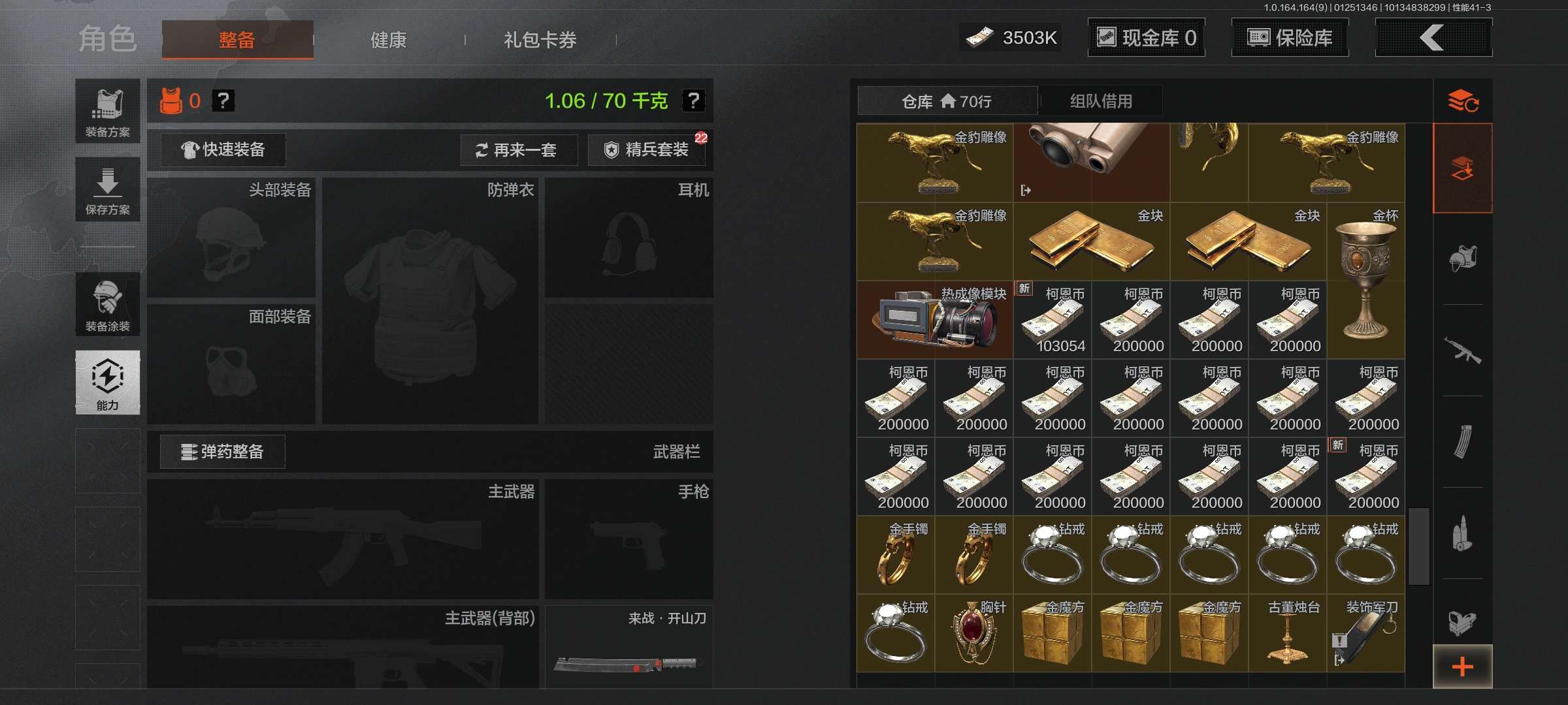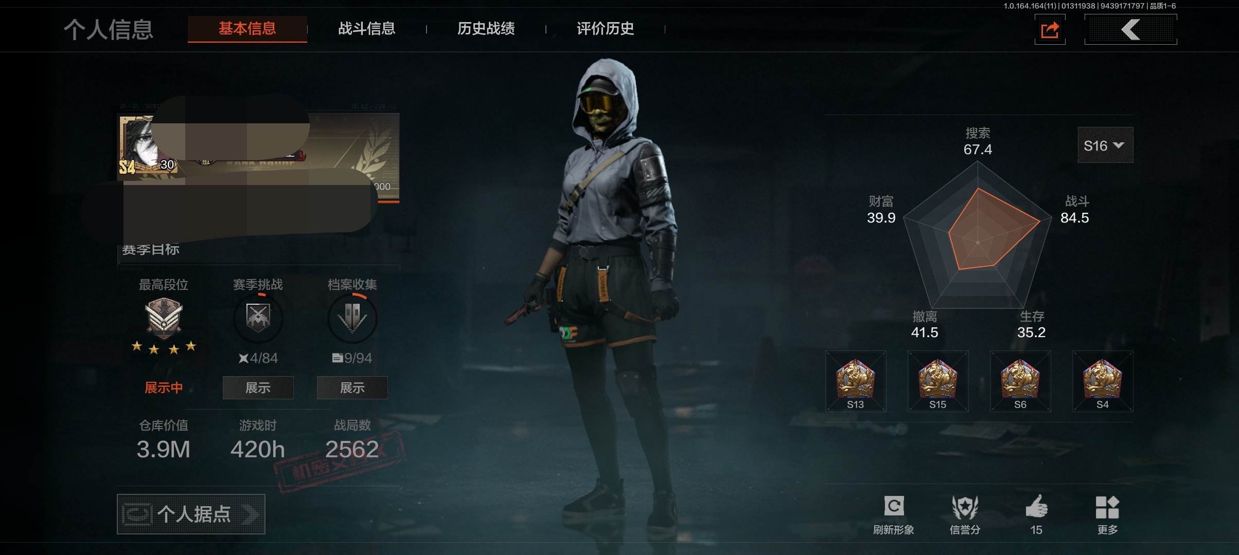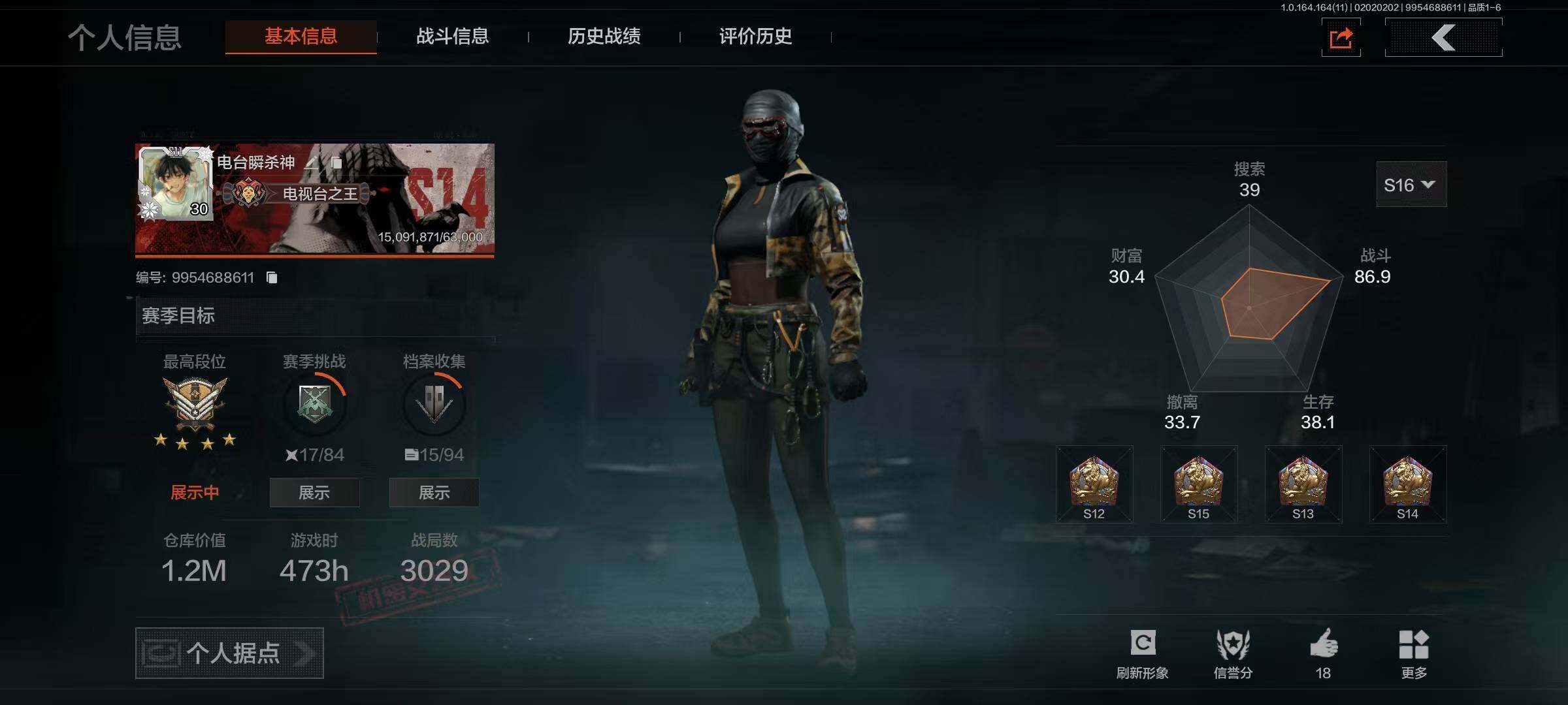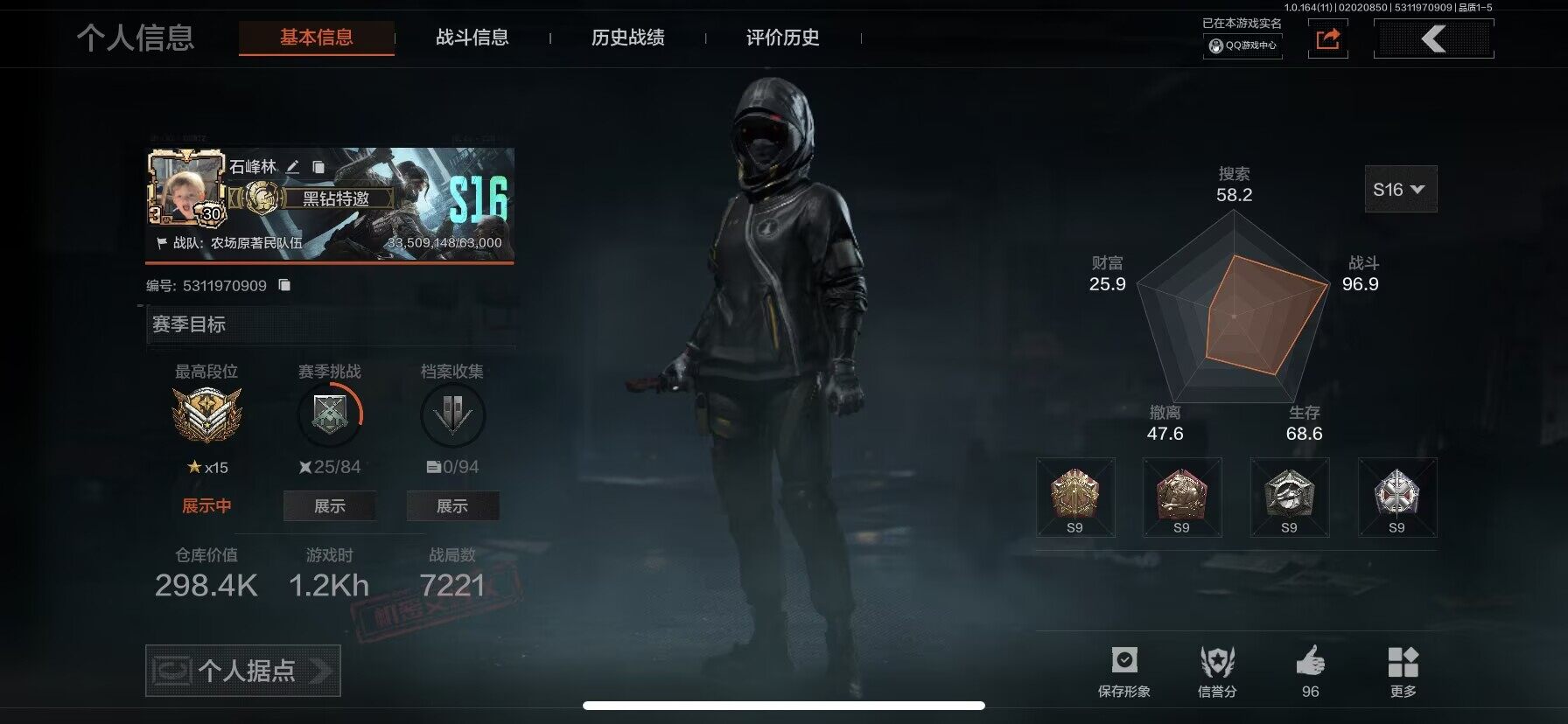 等级:30/段位:暗区传说/仓库价值(百万):9.3/柯恩币:315329/