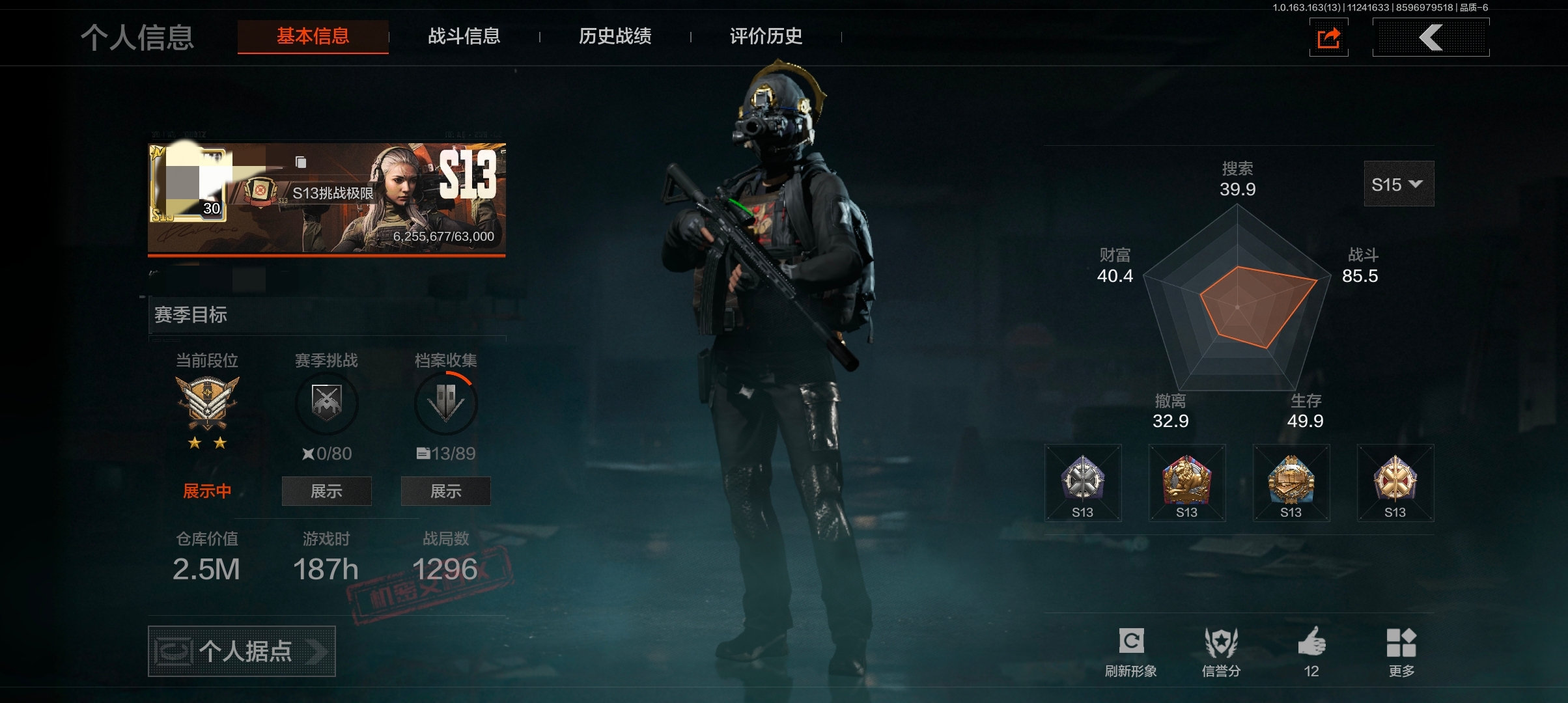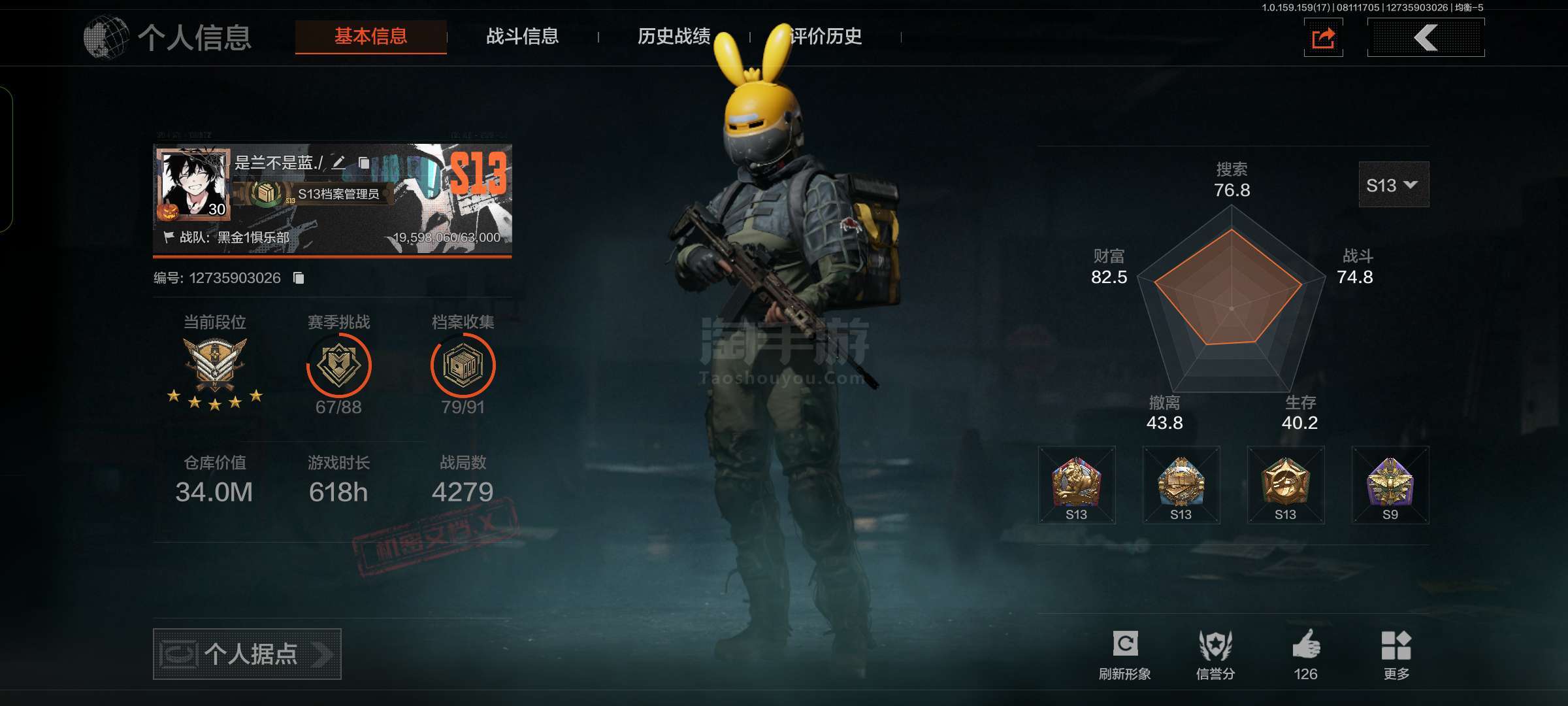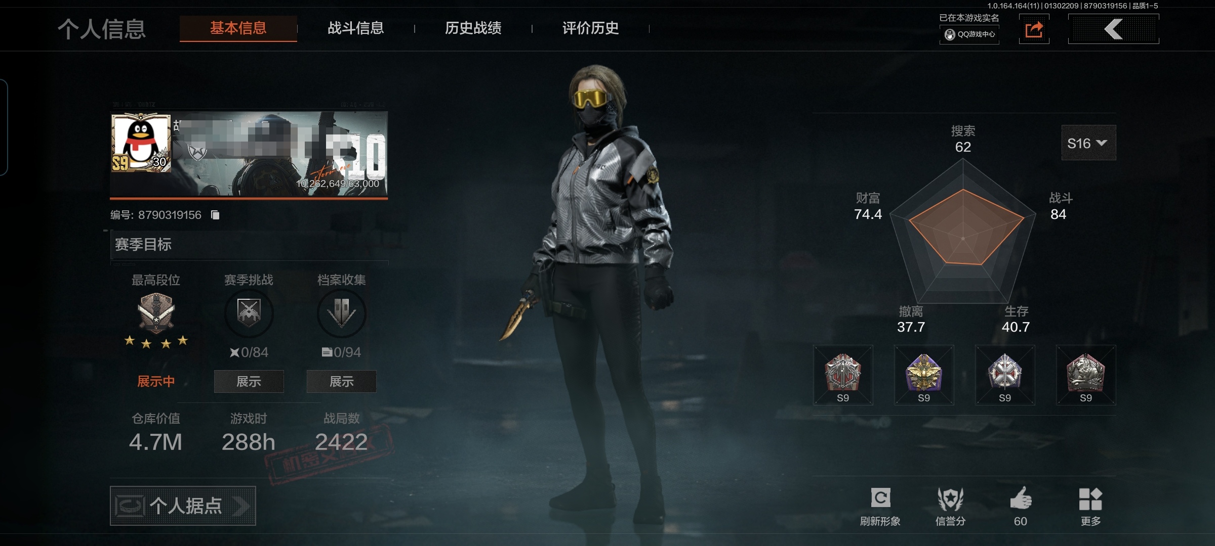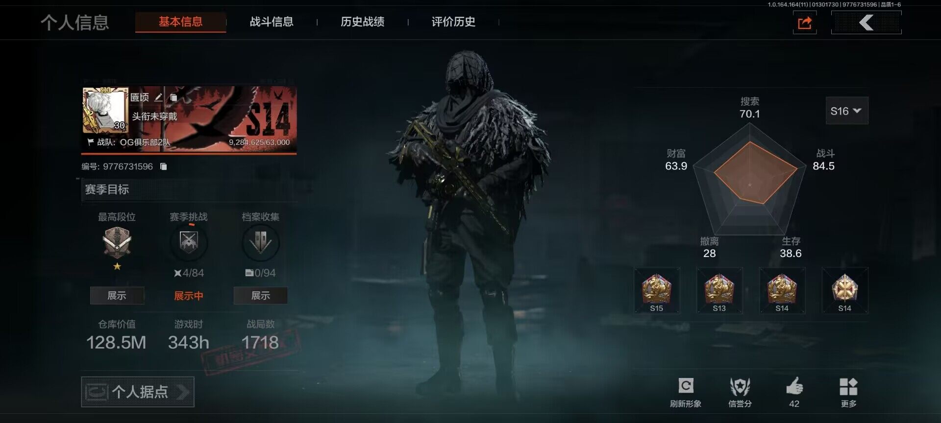 等级:30/段位:专家/仓库价值(百万):128.5/柯恩币:431327000/