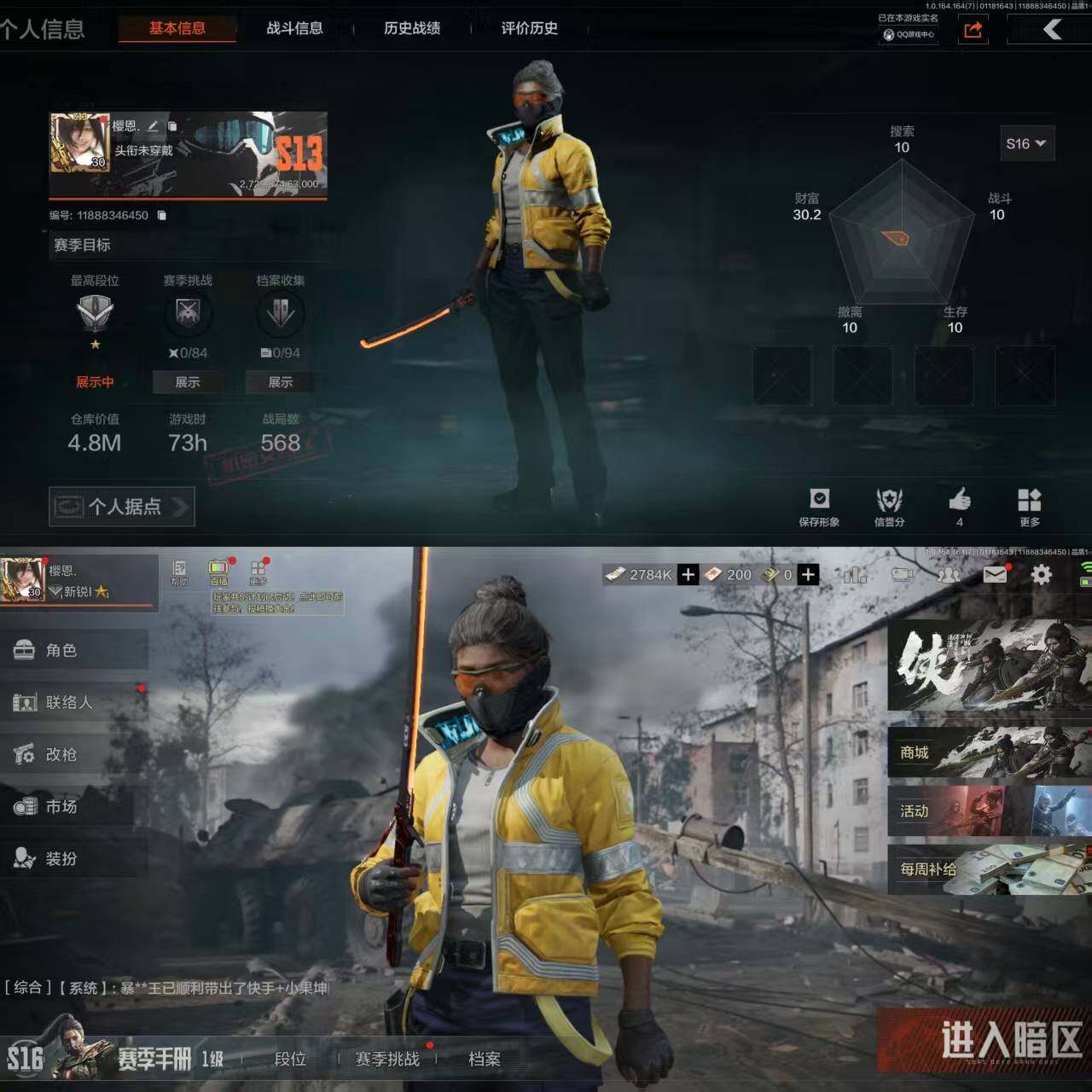 S1自玩号仓库34个M,没时间玩了,有金皮噤声者,和突击匕首,仓库大金非常多,爆率非常高。