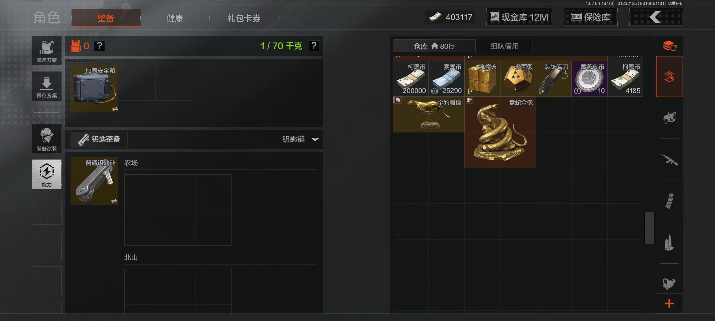 仓库价值(百万):0.4/柯恩币:48135/下弦月/旗帜AEK/战术大师AN94
