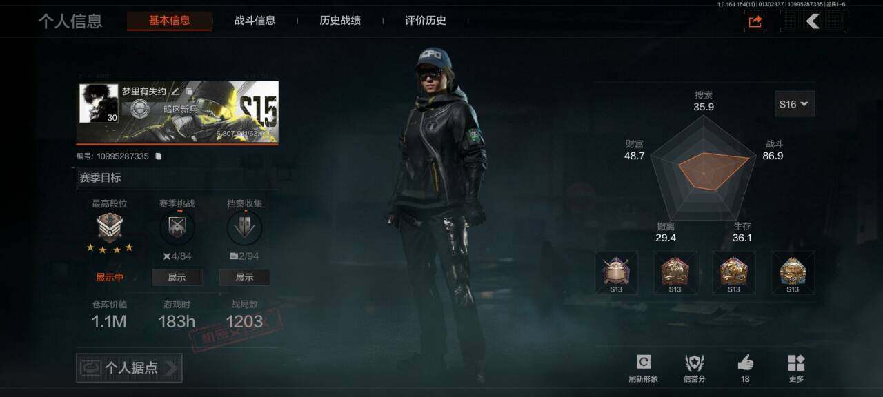 等级:30/段位:王牌/仓库价值(百万):248.6/柯恩币:241392462