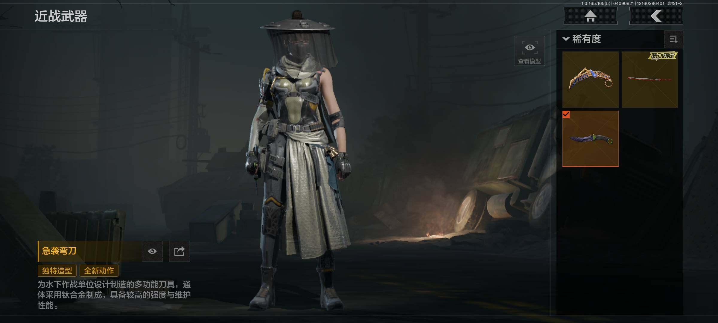 【近战武器】:百炼恒常,精英指虎,工兵铲【金色套装】:冥河,白蔷薇斯黛拉,深