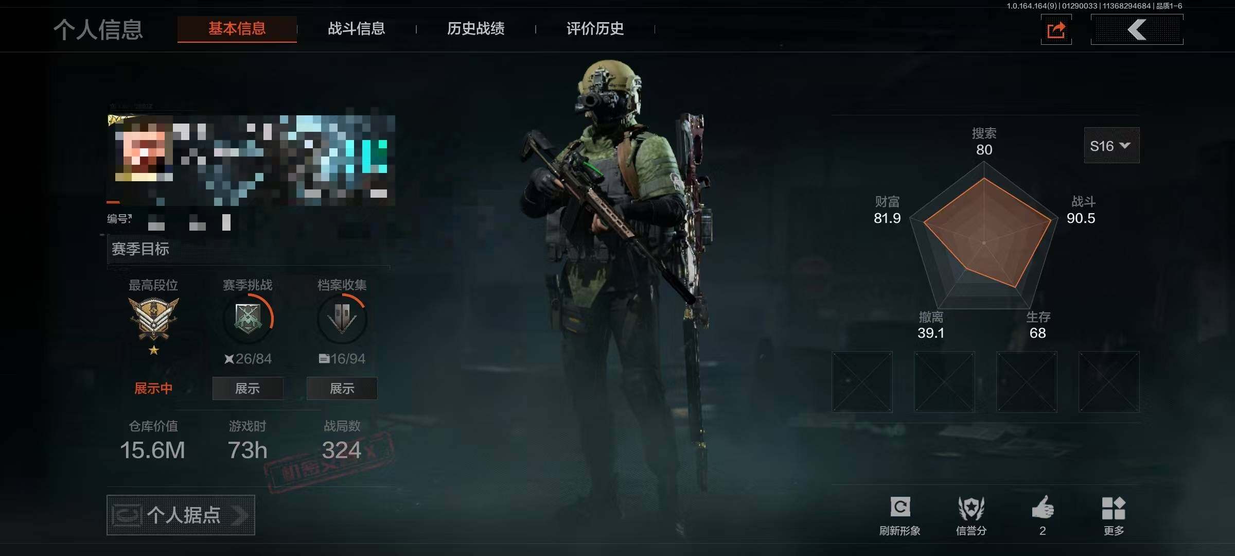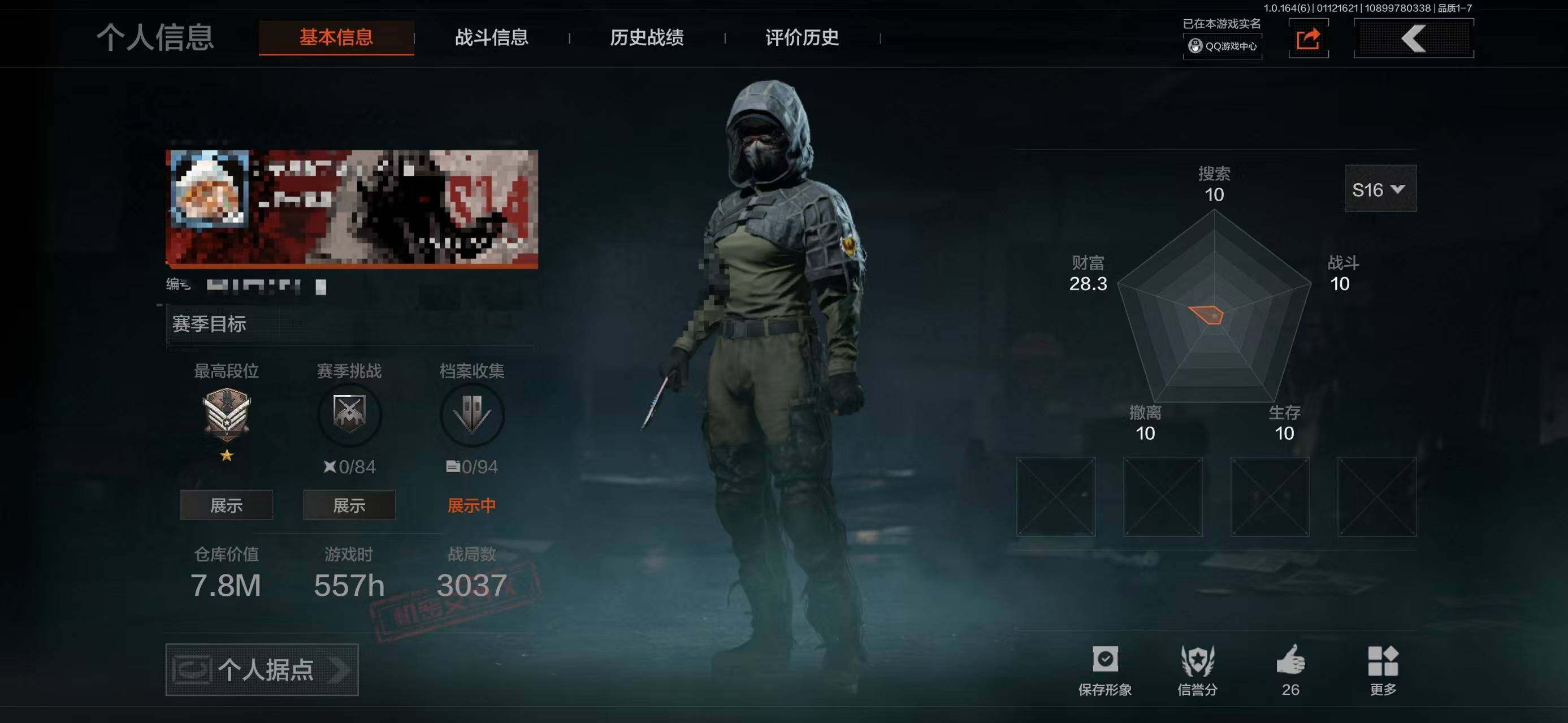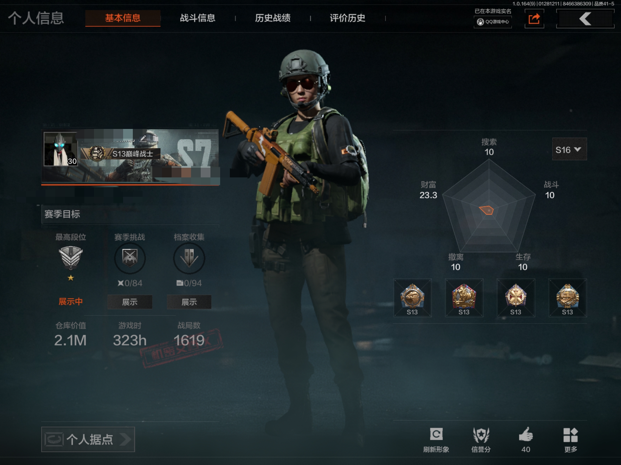 等级:30/段位:暗区传说/仓库价值(百万):3.7/柯恩币:877565/