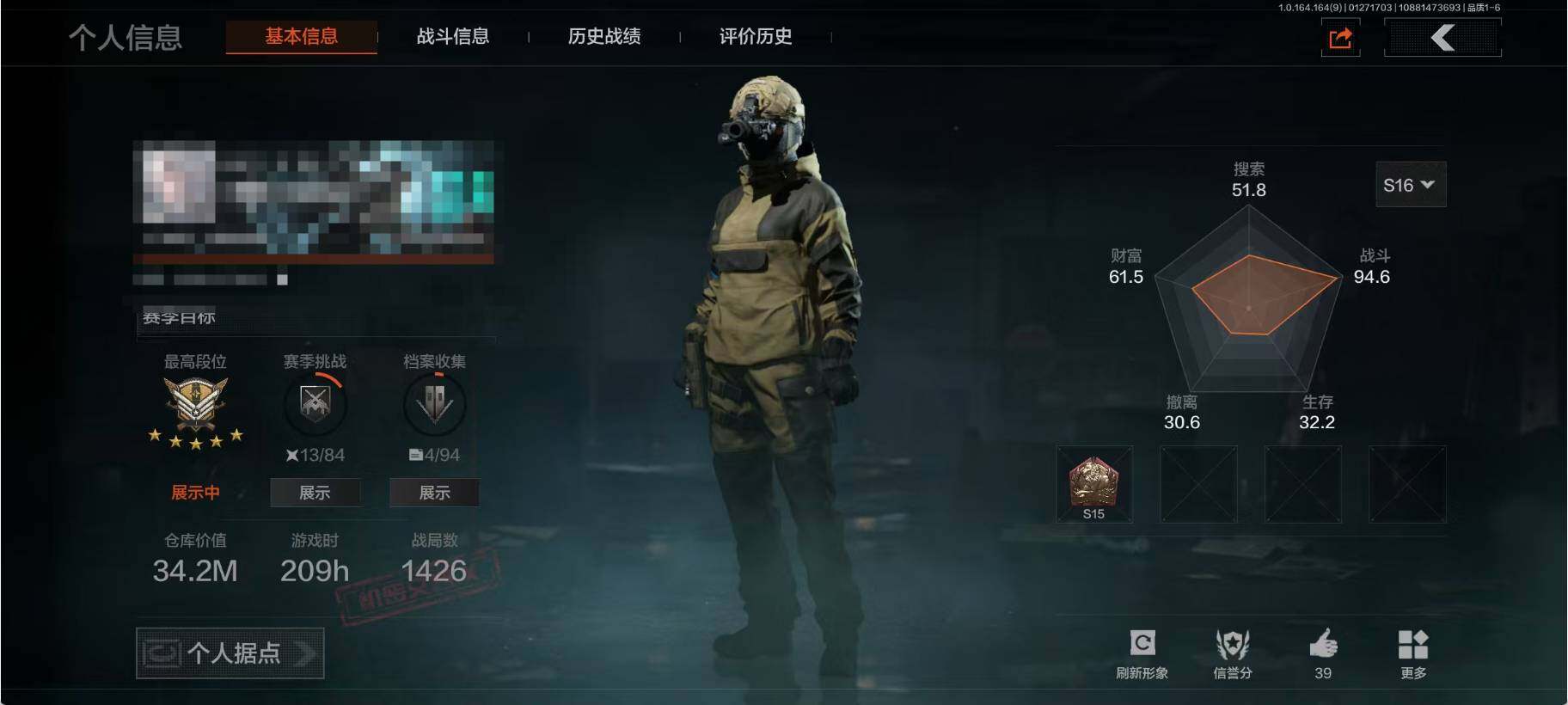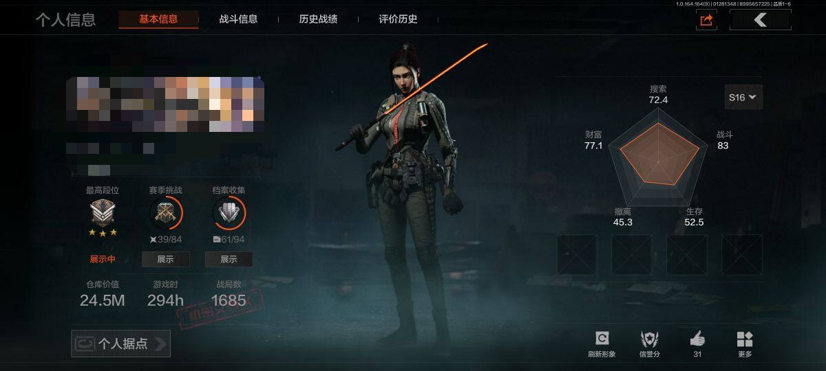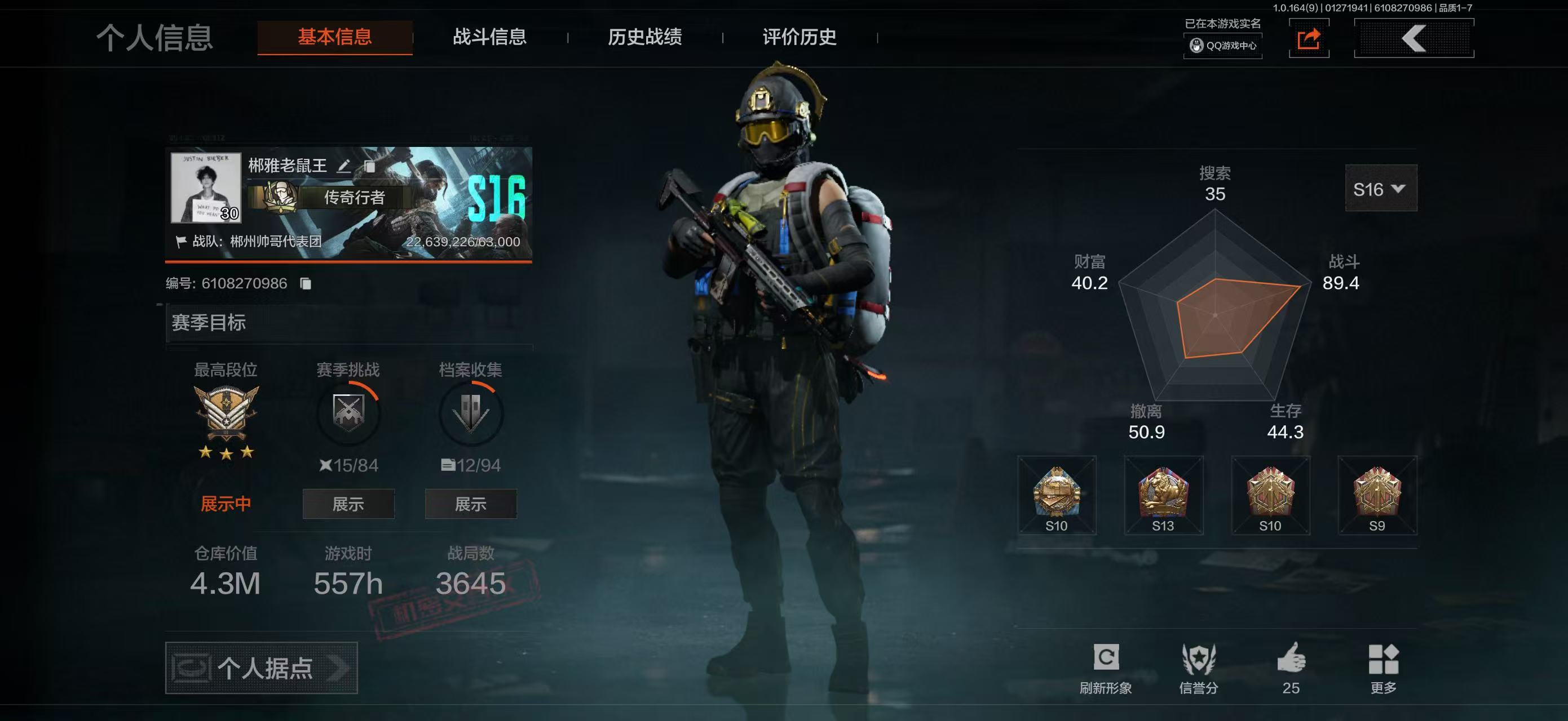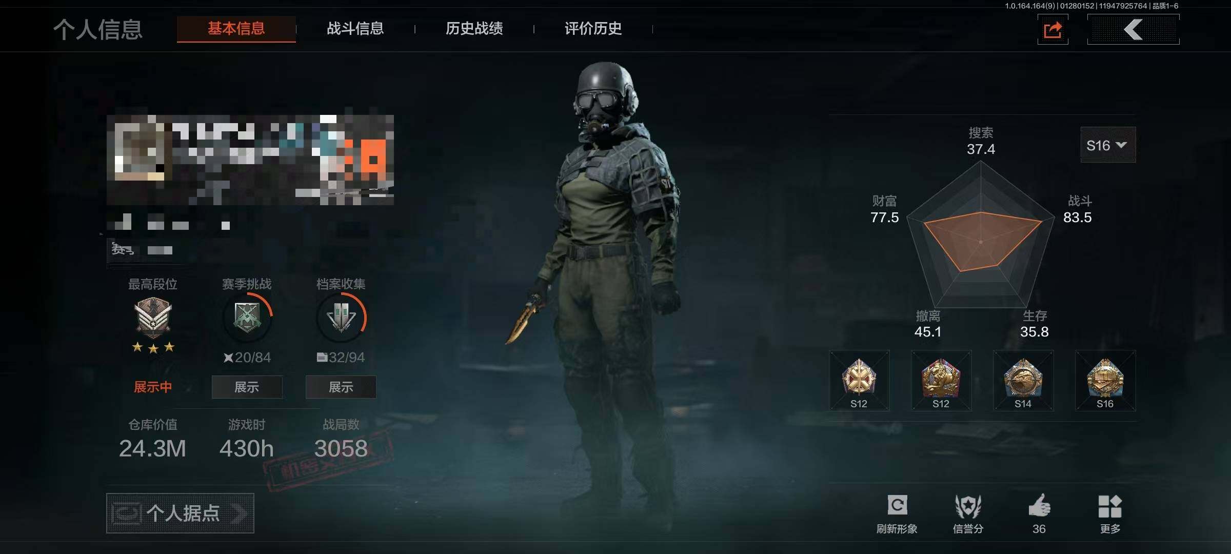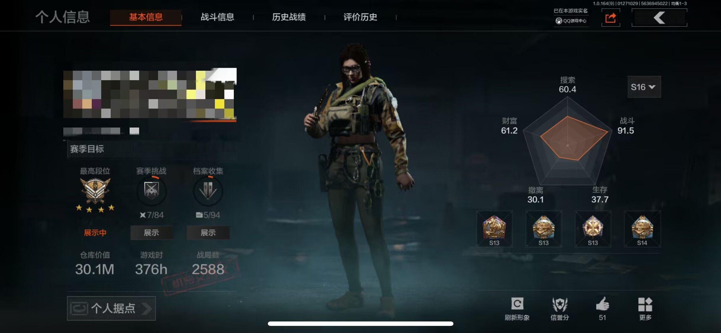等级:30/段位:大师/仓库价值(百万):0.4/柯恩币:84123/热能武器补牢/骑士之剑AX50/