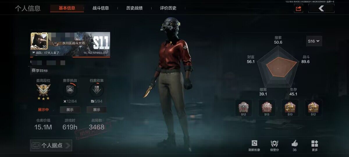 仓库价值(百万):30/热能武器补牢/赢家匕首/黑卡蒂/危崖魅影作战服
