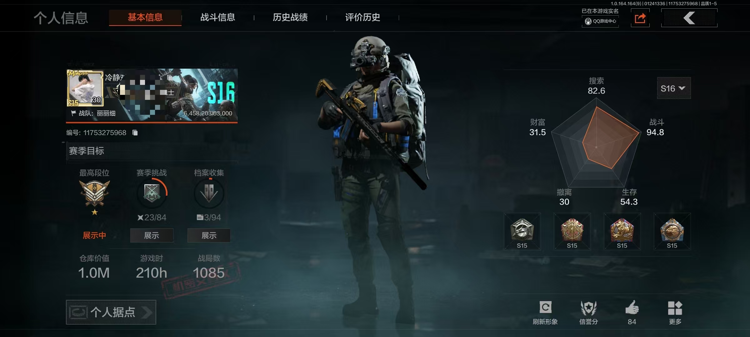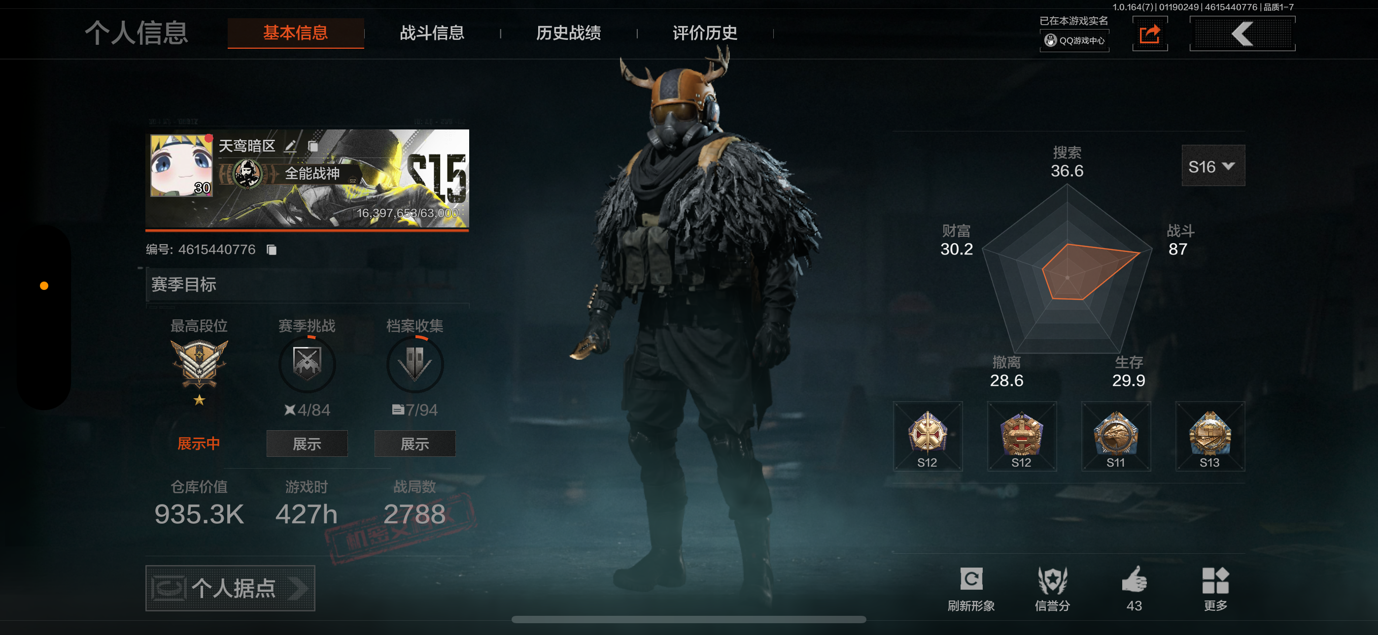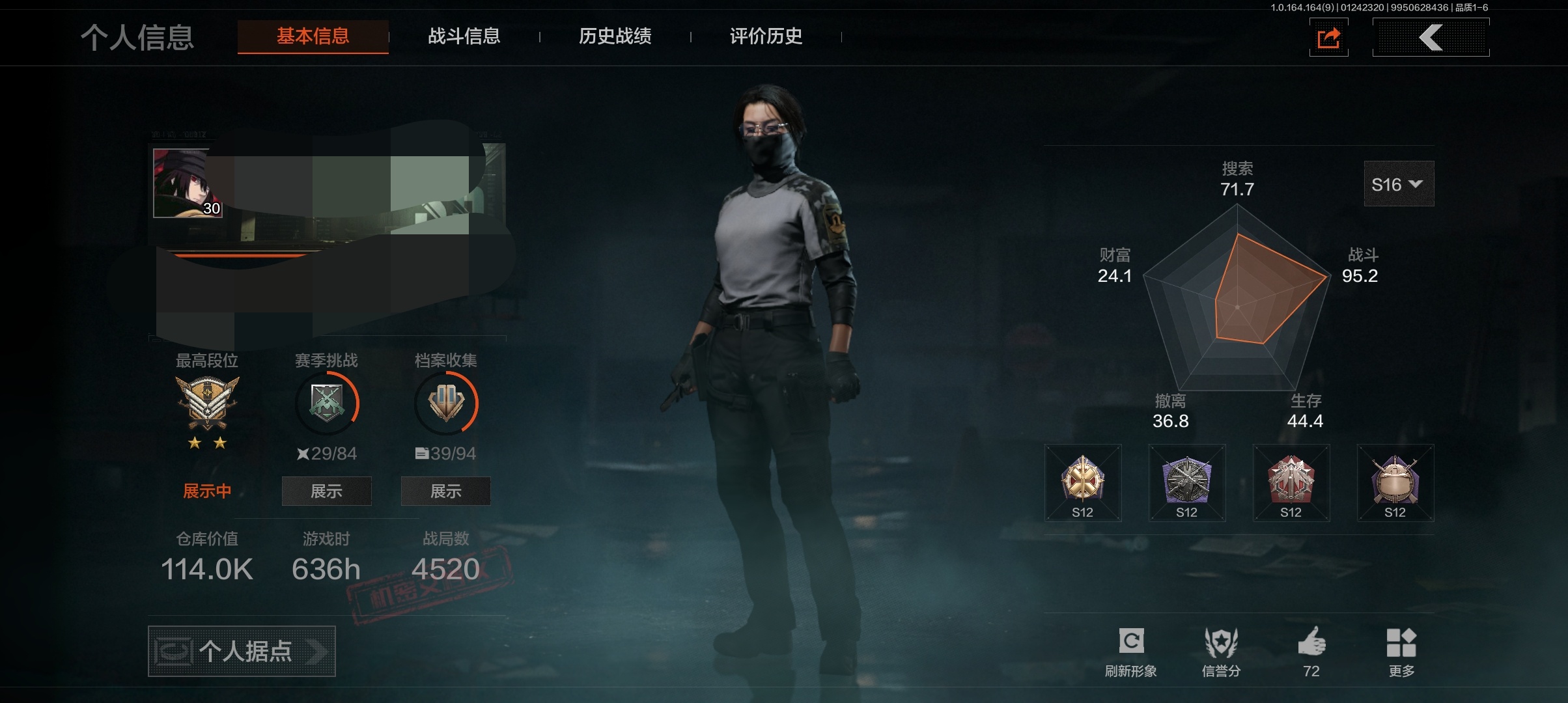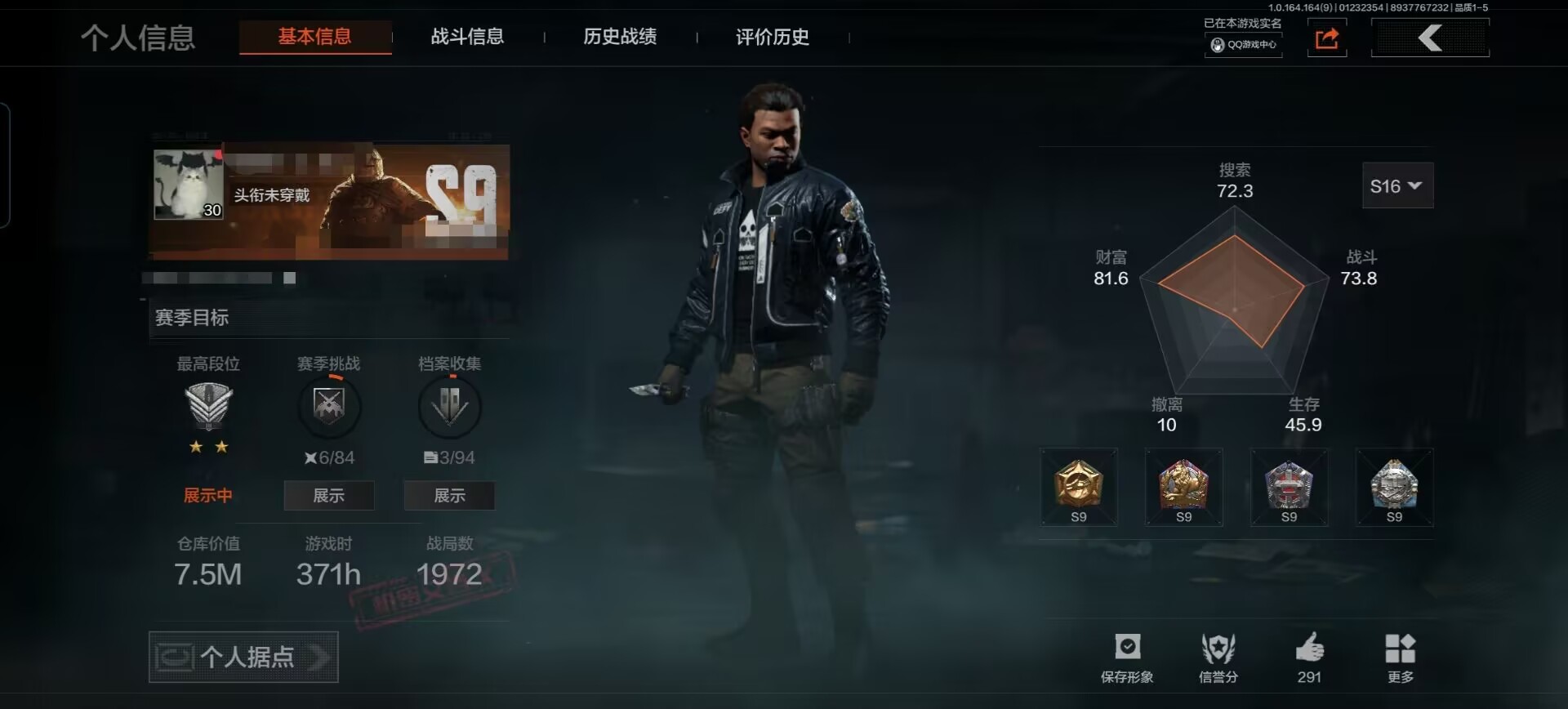 等级:30/段位:大师/仓库价值(百万):1/赢家匕首