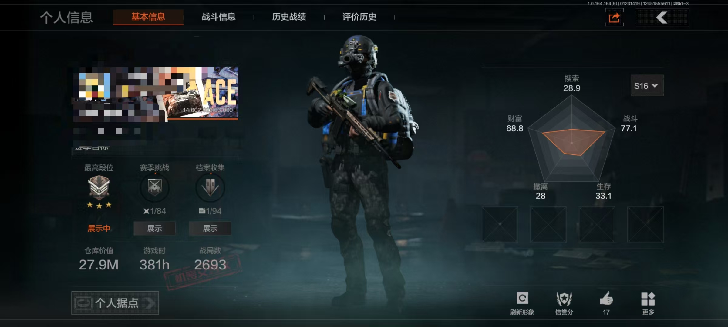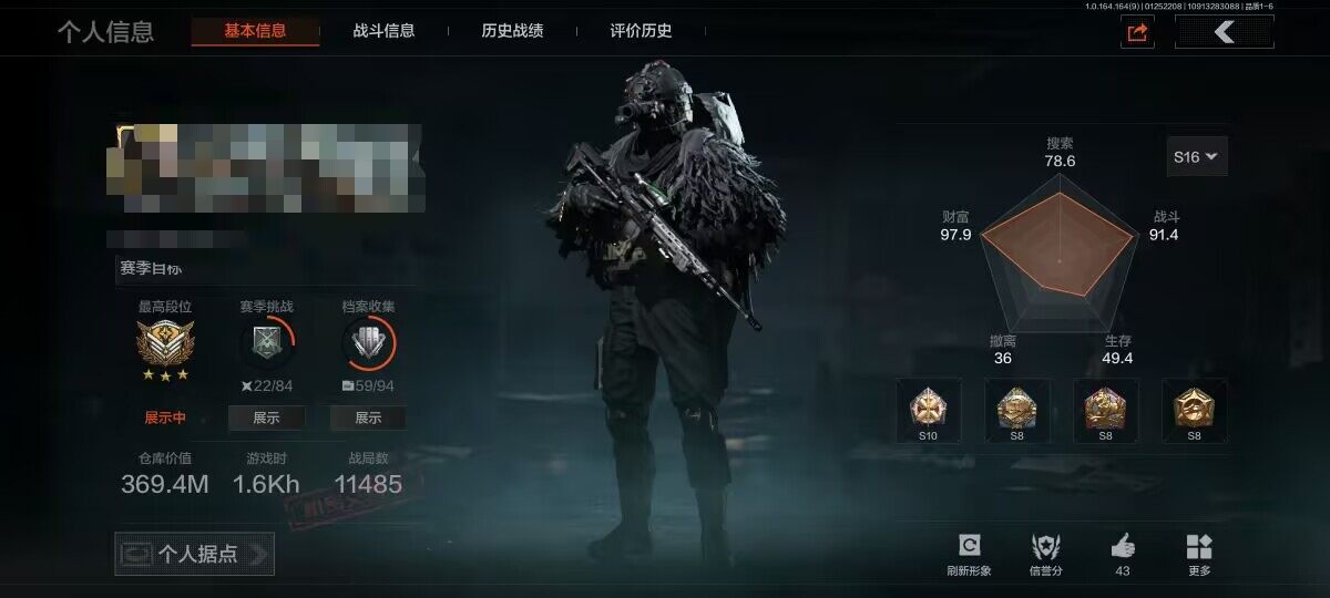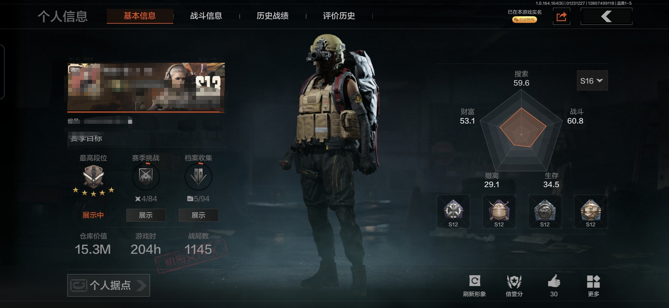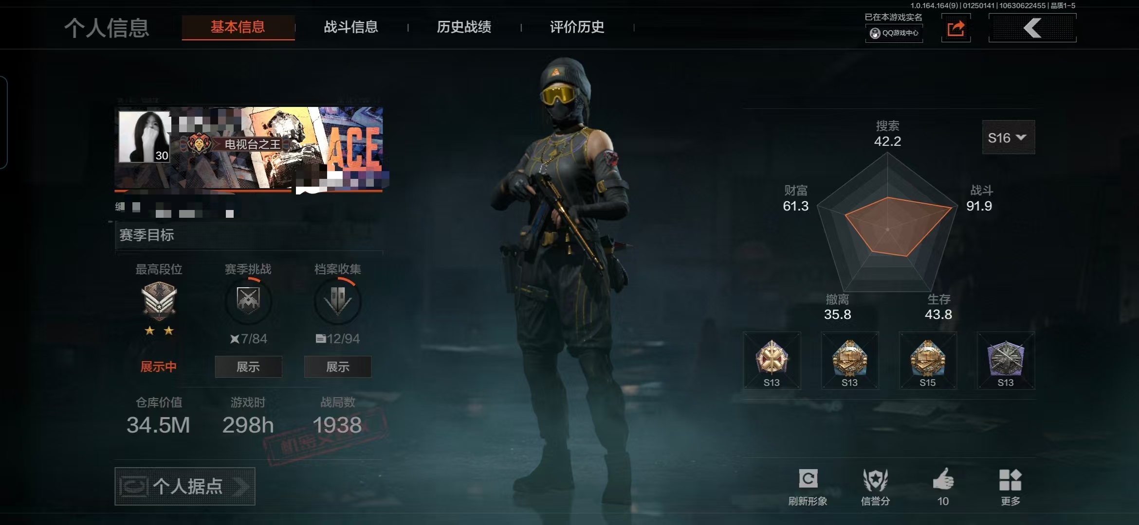 等级:30/段位:大师/仓库价值(百万):1/赢家匕首