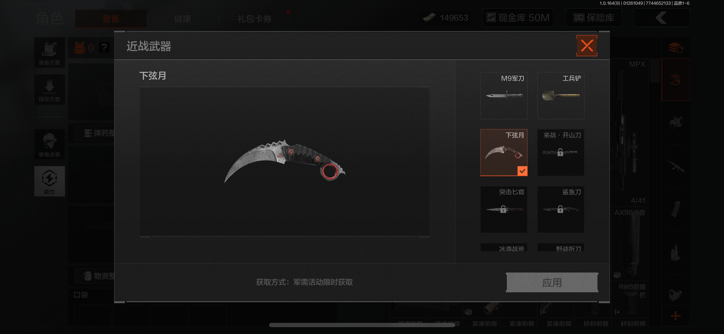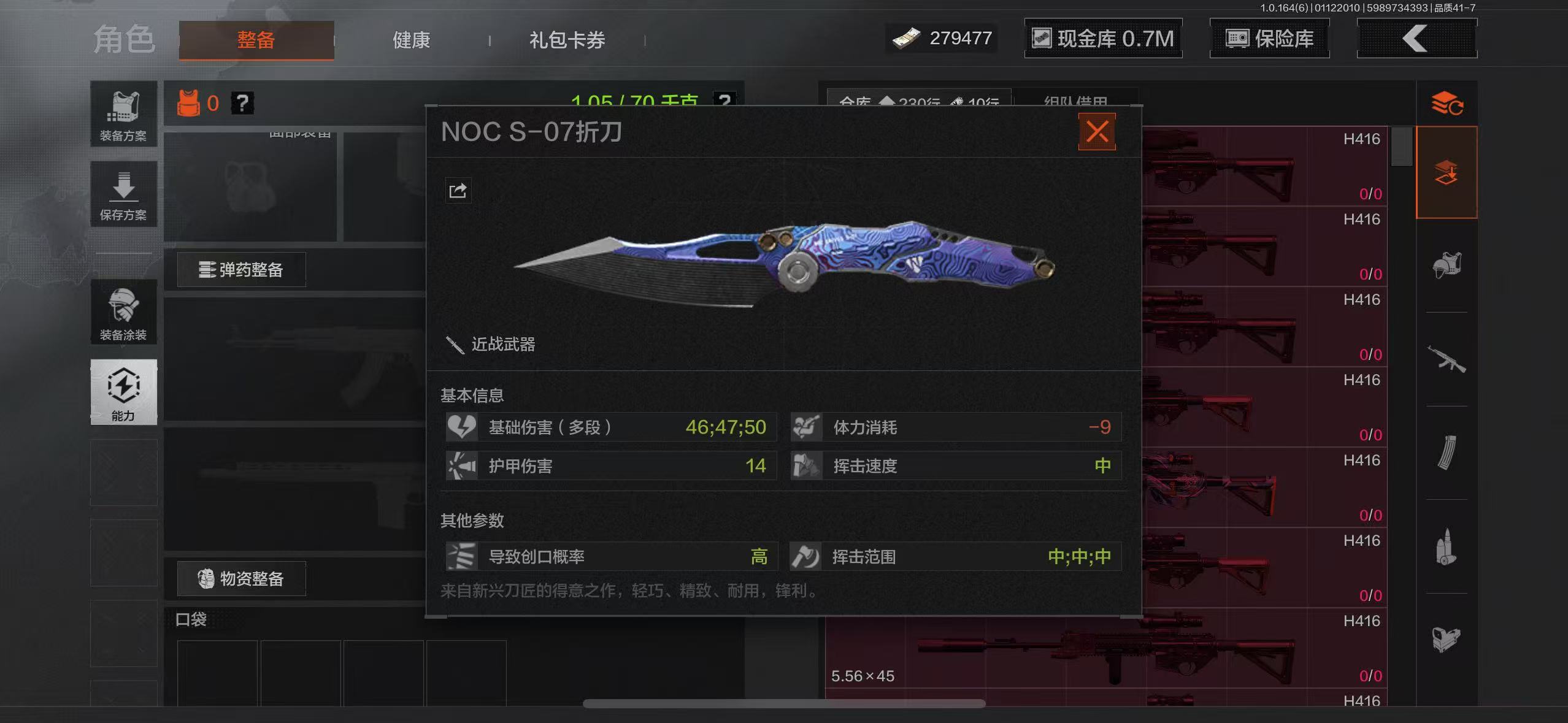 53M仓库价值 野战折刀 开山刀 7金枪 1金投掷物 科恩币31218K