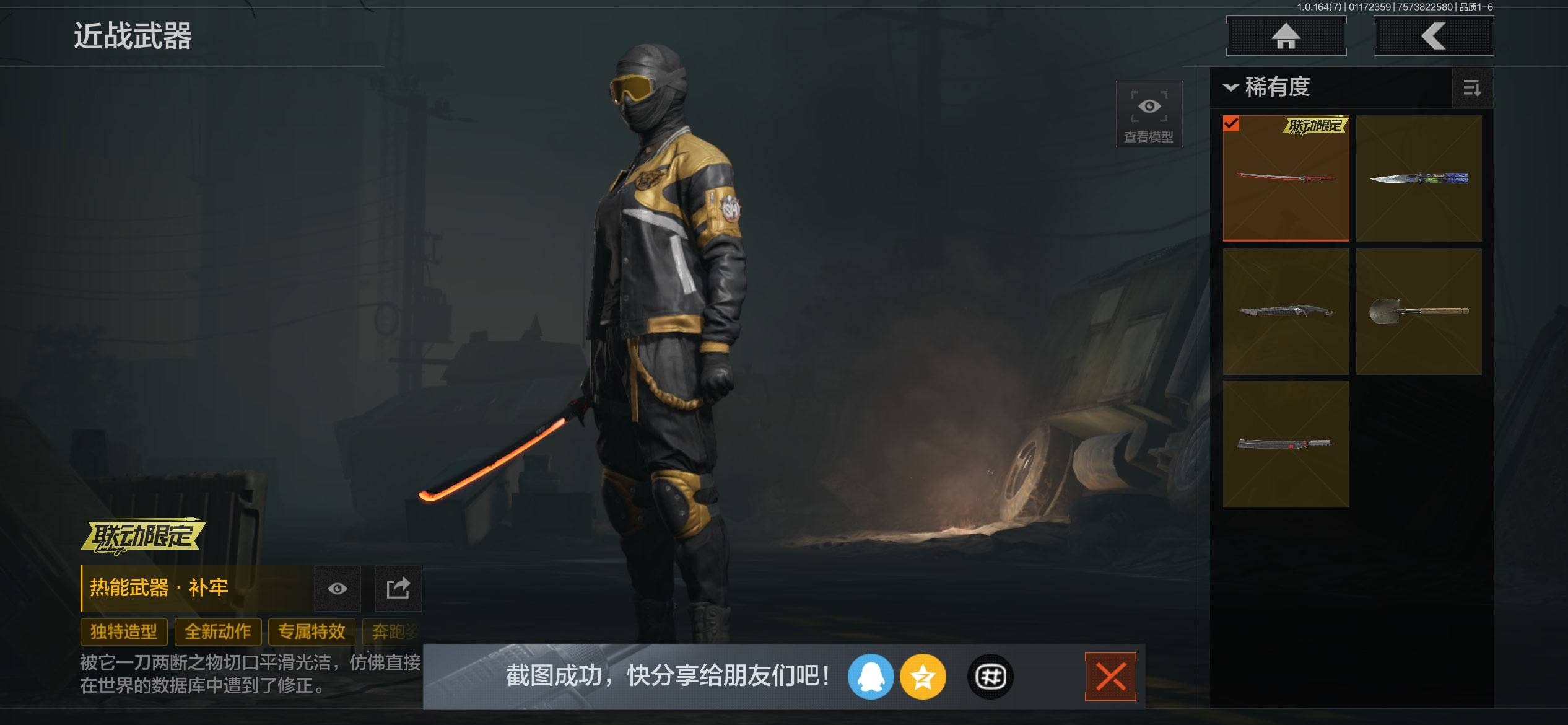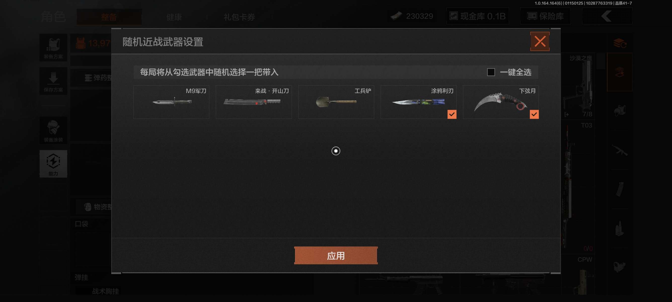 z09,2把刀突击匕首热能武器补牢,4黄枪,仓库6.6M,6外观,瓷蒺藜手榴弹