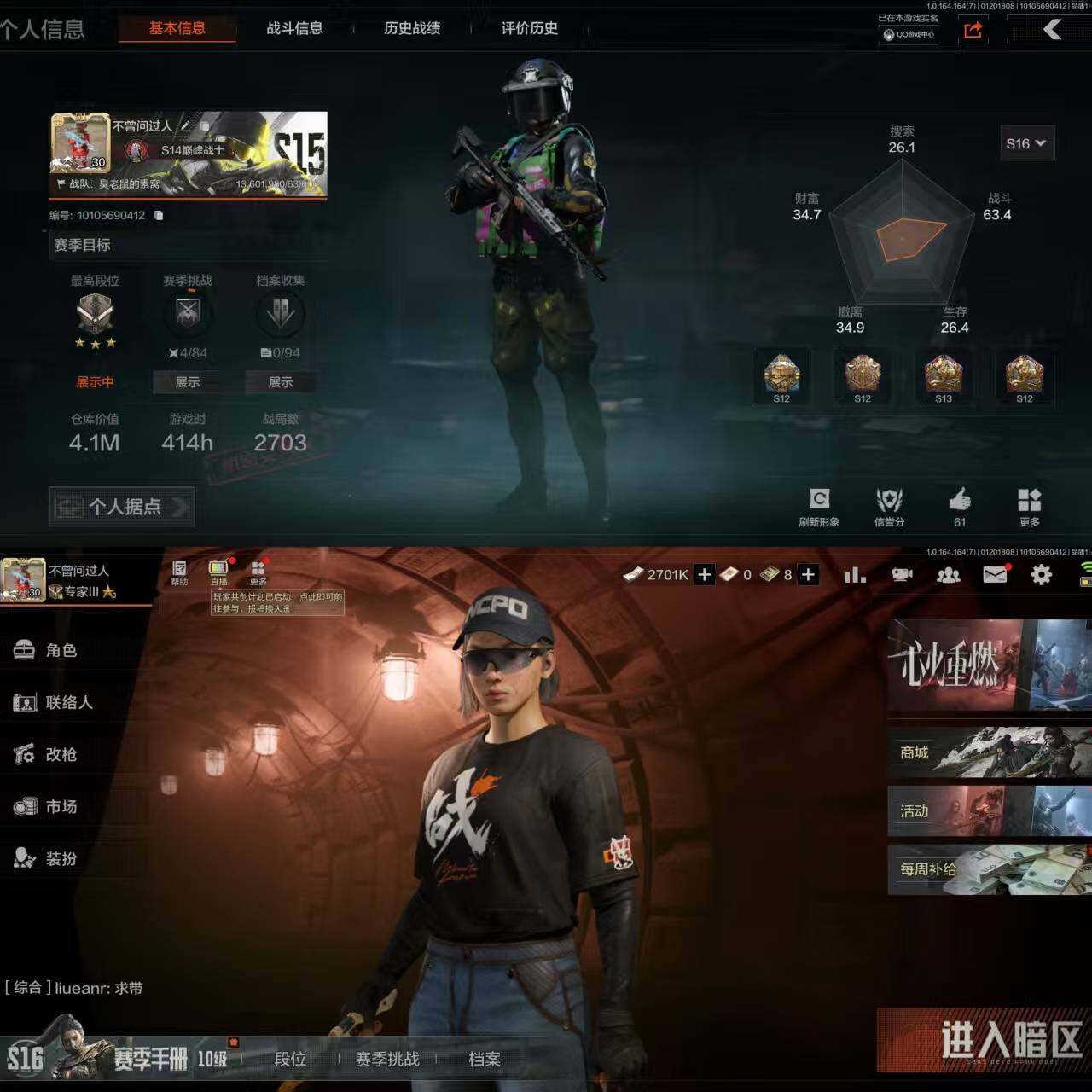 段位:暗区传说/下弦月/冥河/深潜行者II