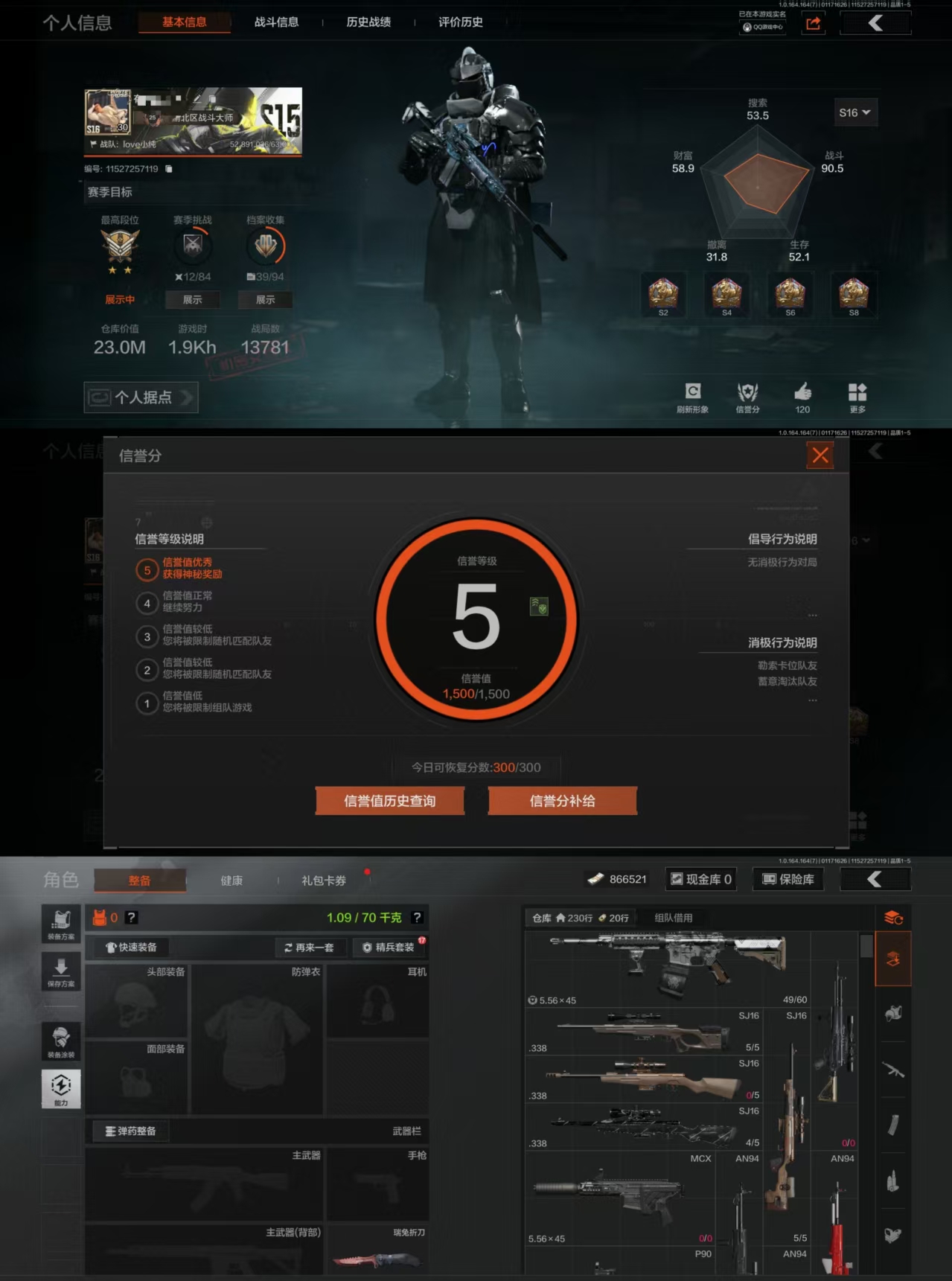 等级30-仓库价值1.1M-科恩币390026-【枪皮】浮鳞影青.QBZ