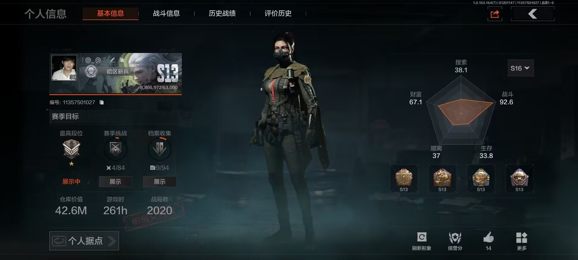 仓库价值(百万):42.6/柯恩币:20961000/苍白之触手套/急袭弯刀/热能武器补牢/白蔷薇斯黛拉