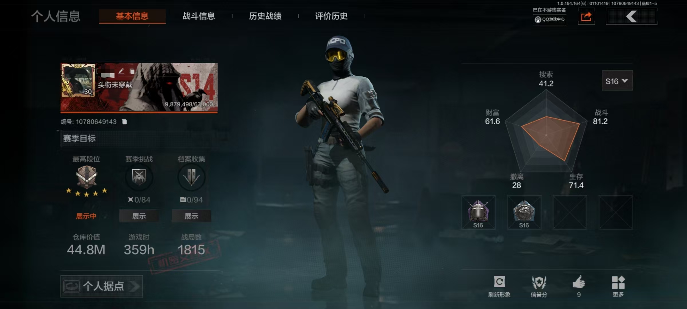 仓库价值11.8M 空腔战术 突击匕首 6金枪 -等级30