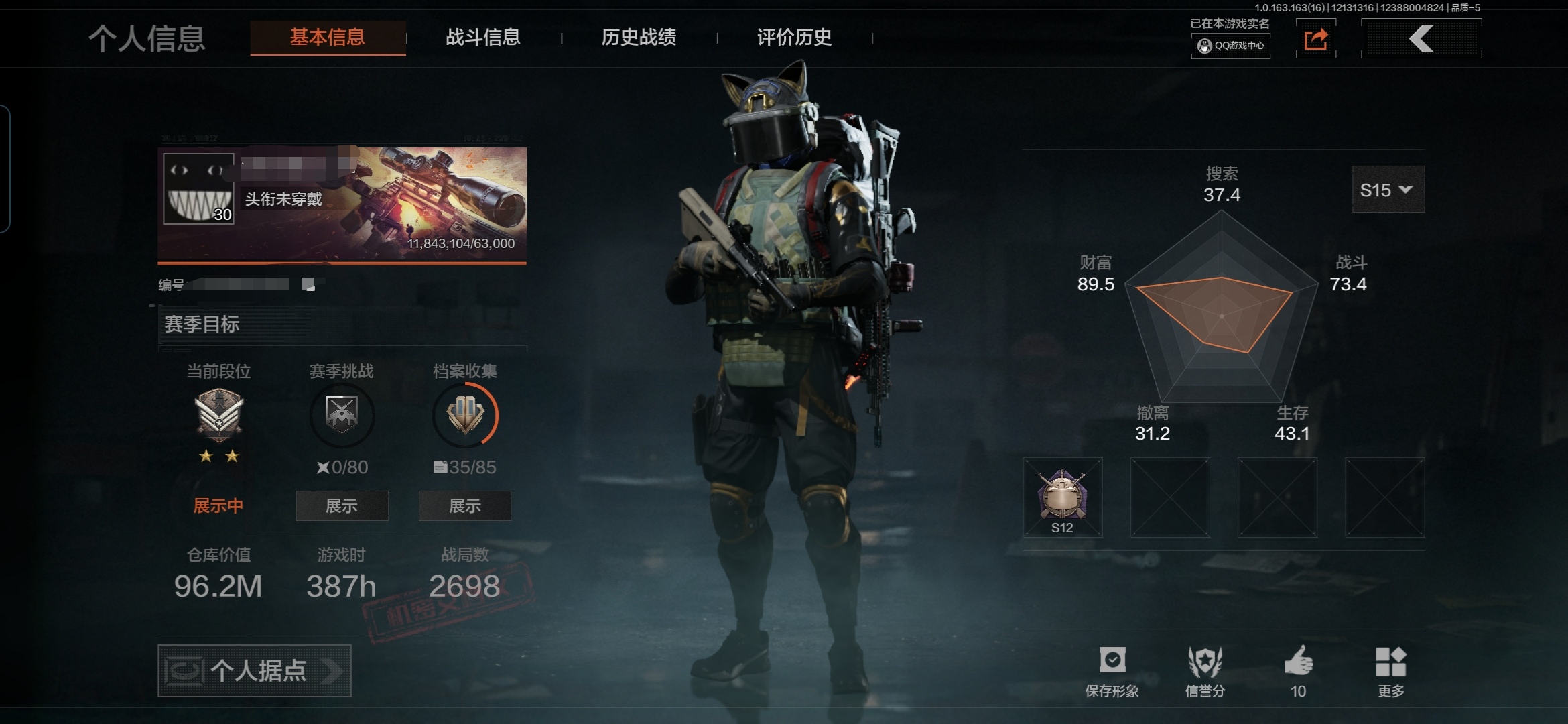 等级:30/段位:暗区传说/仓库价值(百万):70/柯恩币:45950000/苍穹利爪/伦琴幻影FAL/