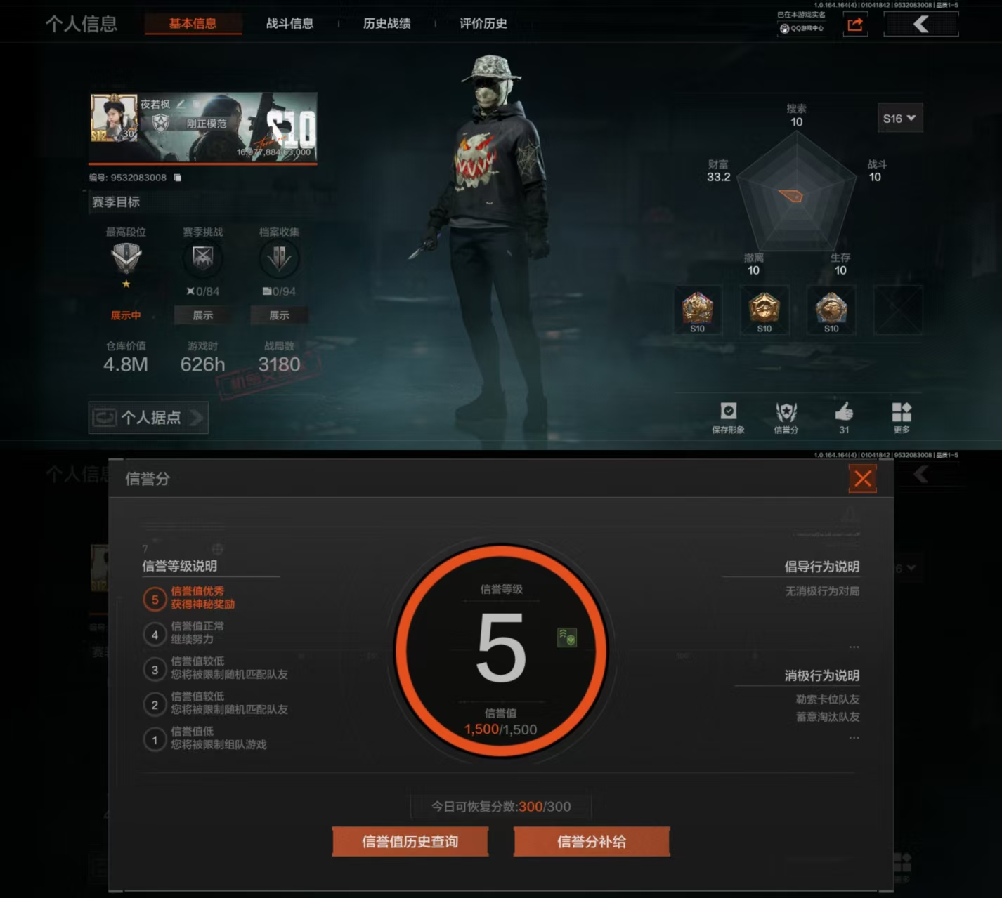 FY5947,总资产:32.6m,近战武器,百炼恒常,空腔战术,S-07折刀,赢家匕首,急袭弯刀,角色装扮(金),芭斯特,套金客莫雷尔,脉冲马克西姆,使徒欧瑞恩,金色枪皮,水果AR57,战术大师AK102,蓝色咆哮H416,地脉深处FAL,旧王圣谕VSS,战术大师AN94,冰河碎影MK14,大金,T7热成像,暗区突围苹果Q区实名可修改