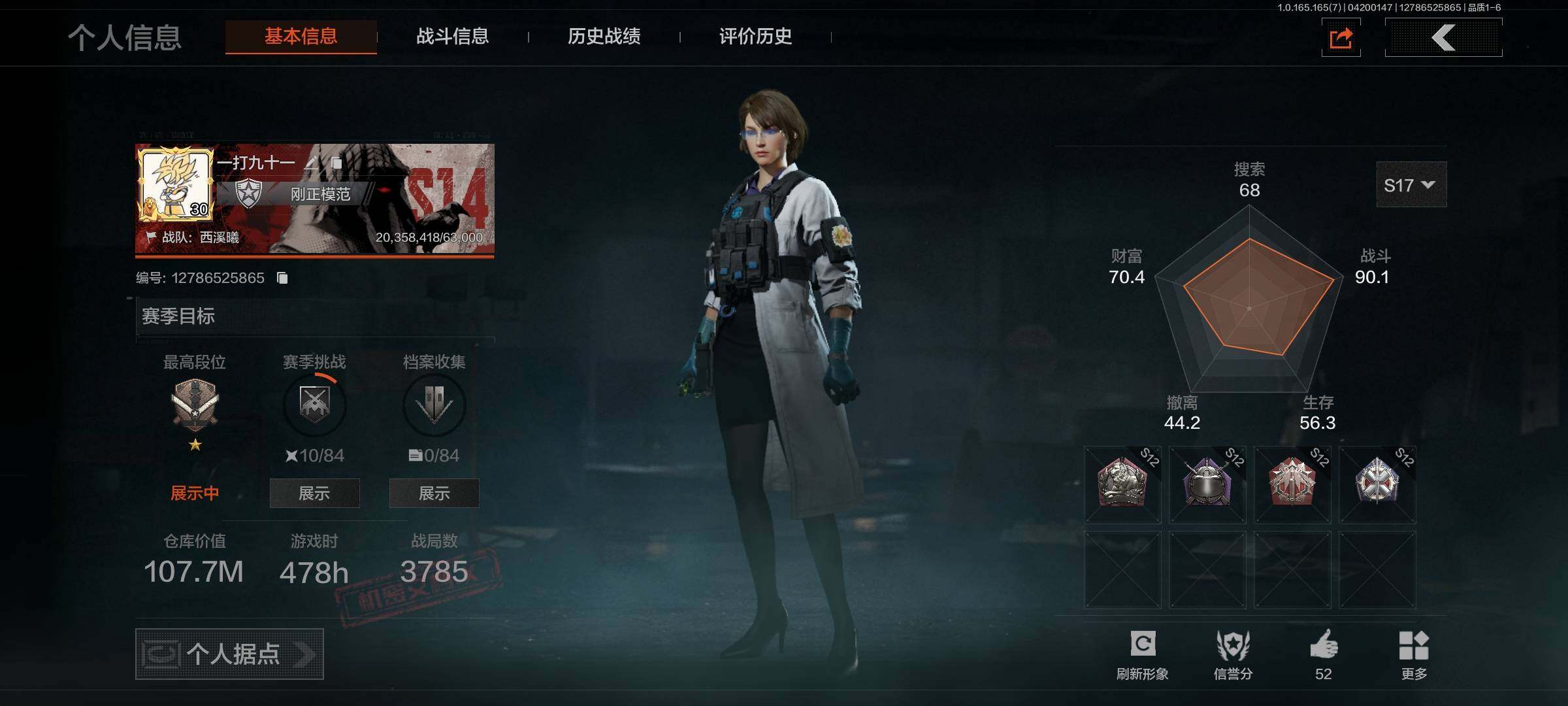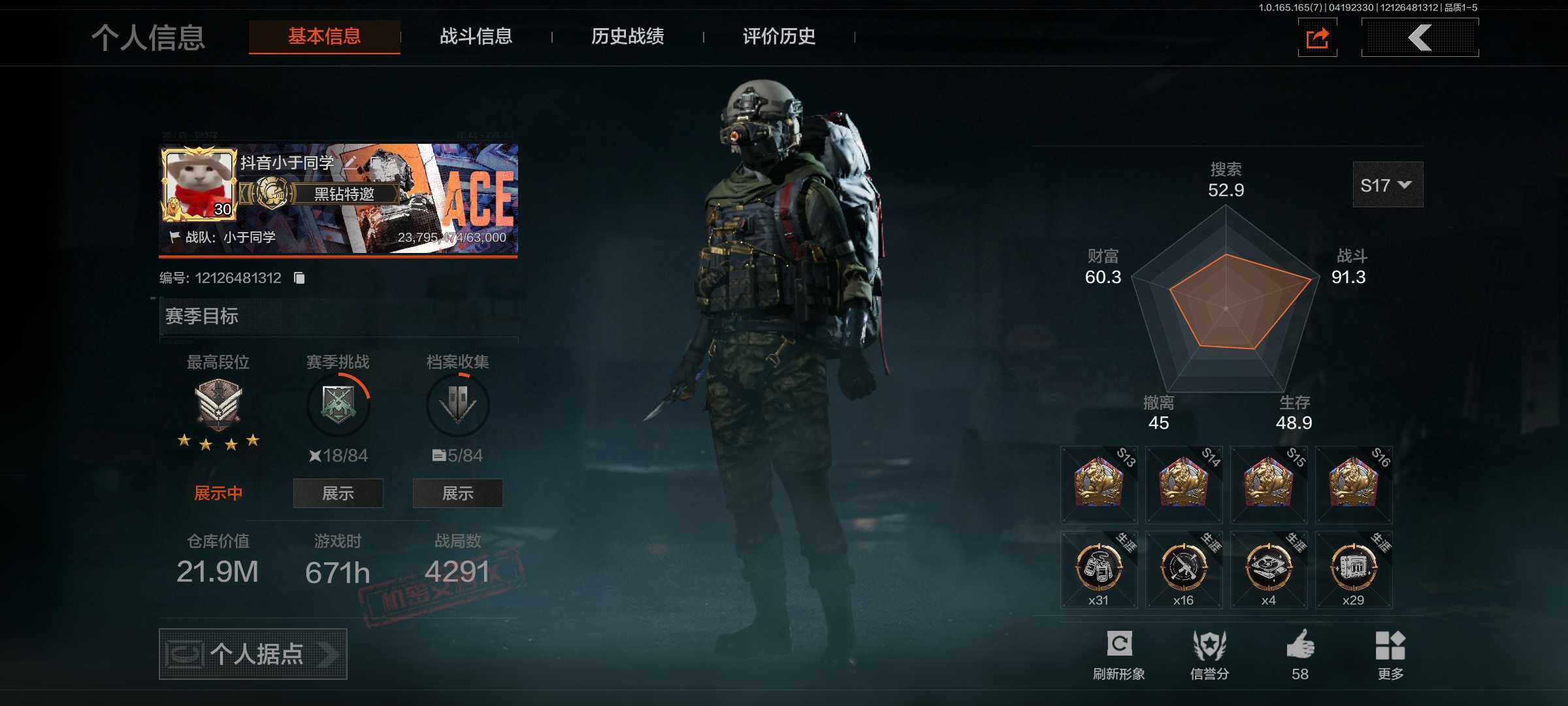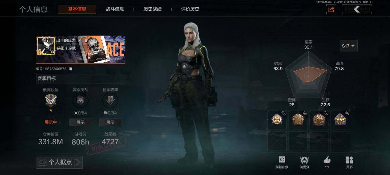 等级:30/段位:新锐/仓库价值(百万):331.8/柯恩币