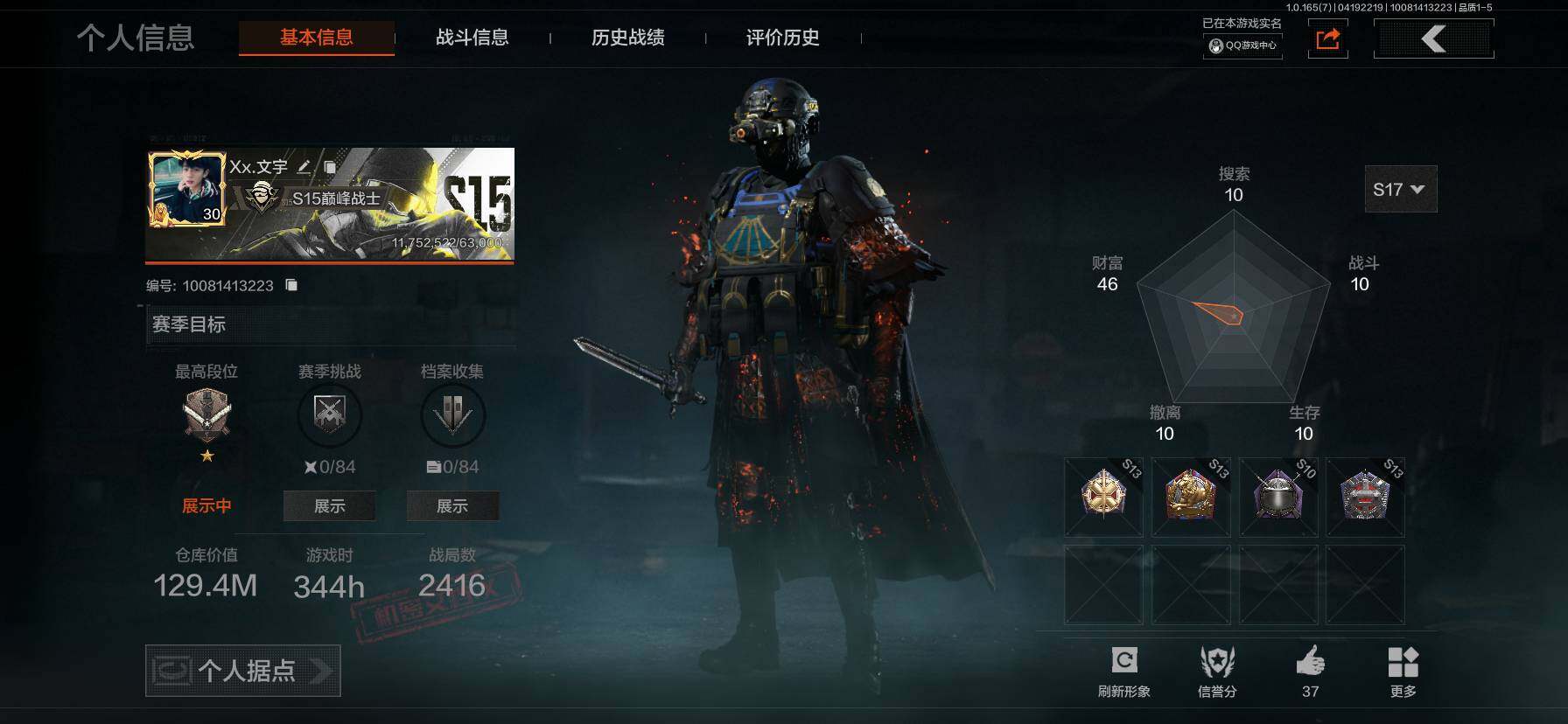 等级:30/段位:专家/仓库价值(百万):129/柯恩币:2