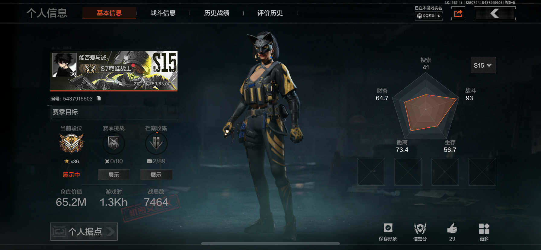 暗区突围【安卓QQ】库存价值481M 3手套 18近战 11橙套装 6金套装 0橙枪 12金枪 王牌