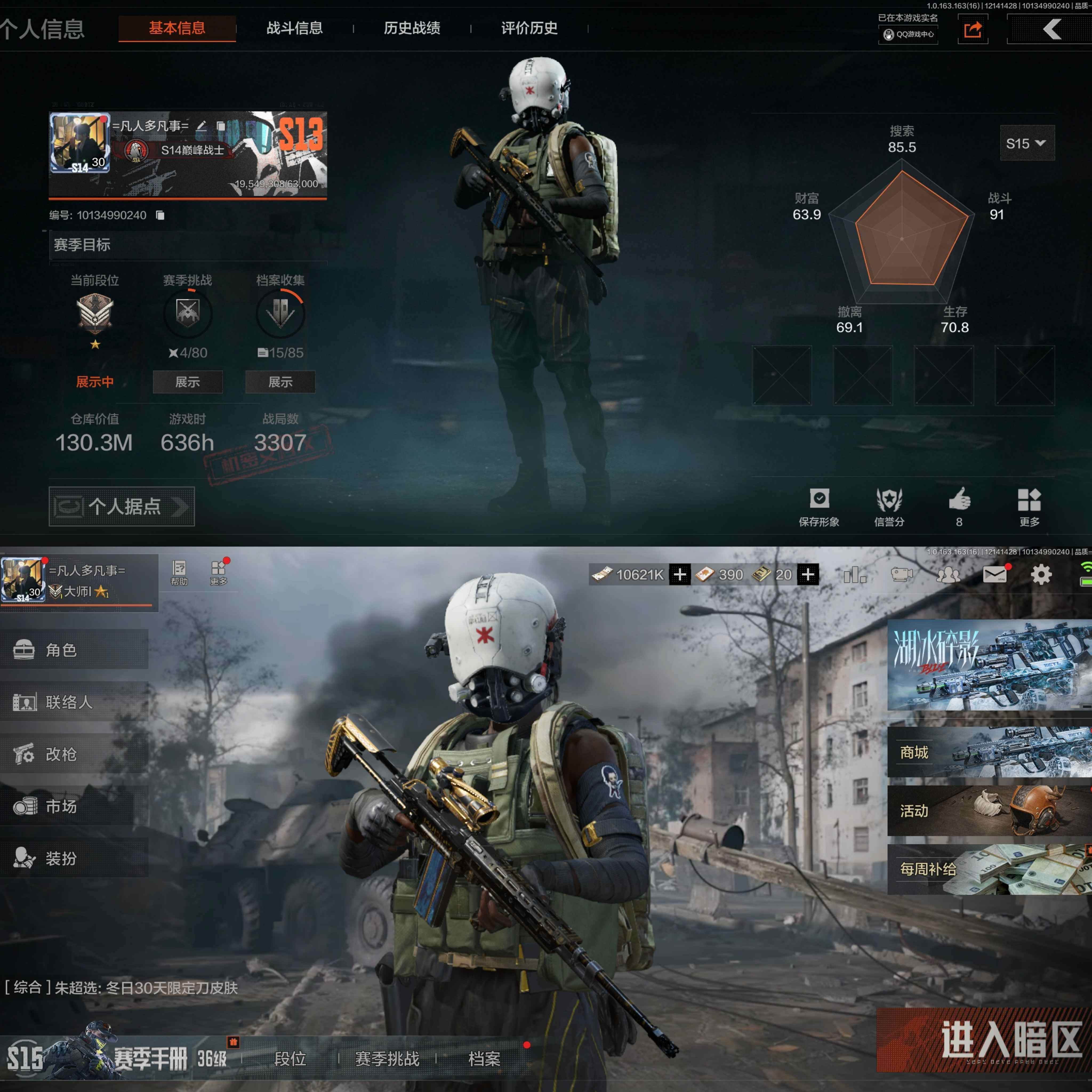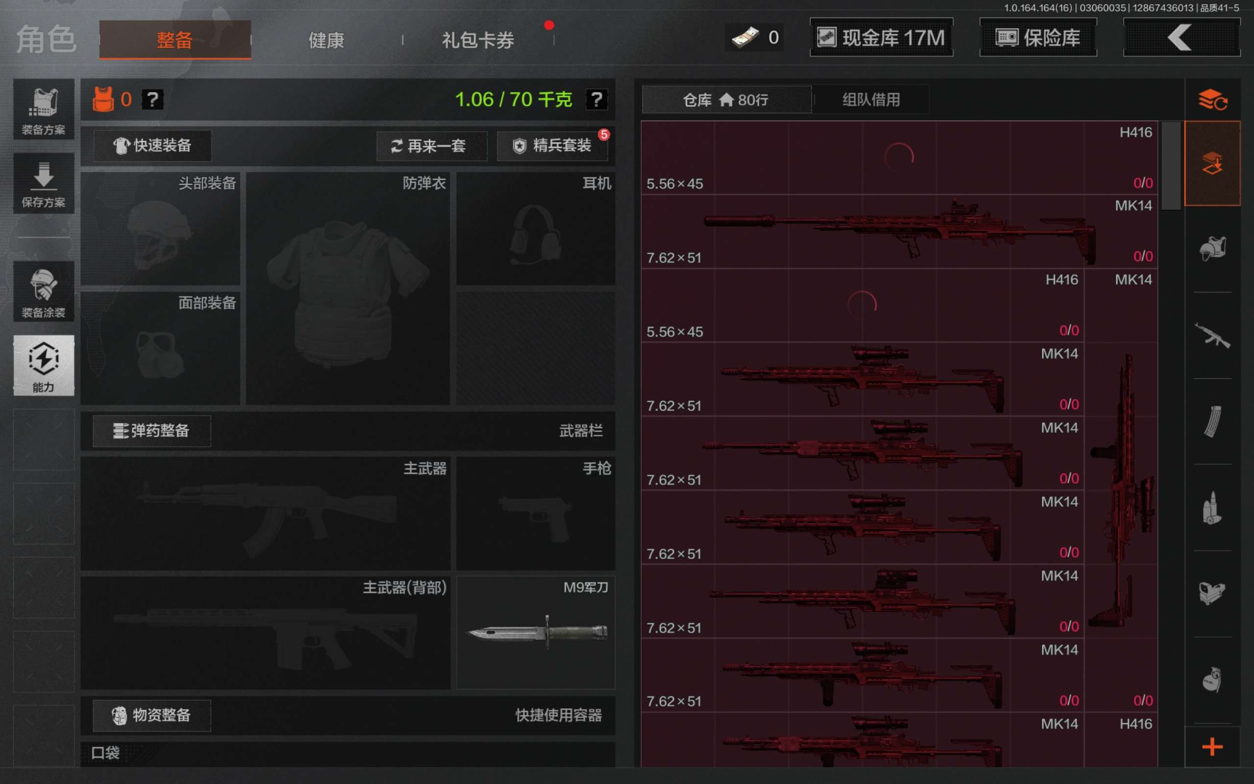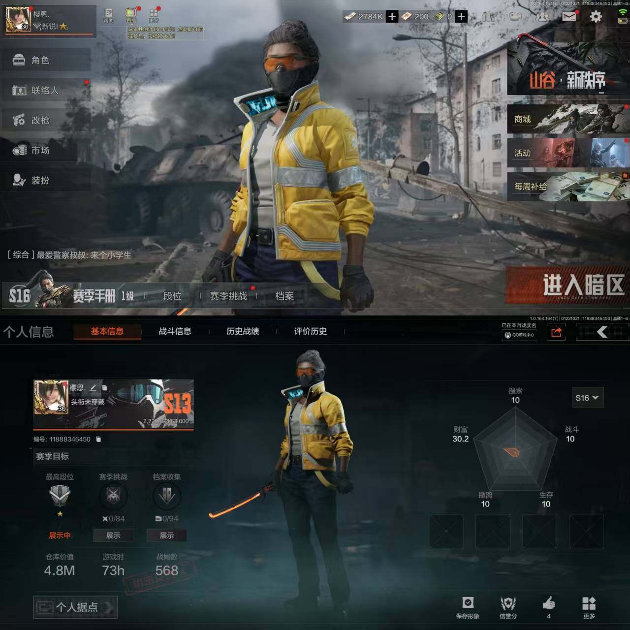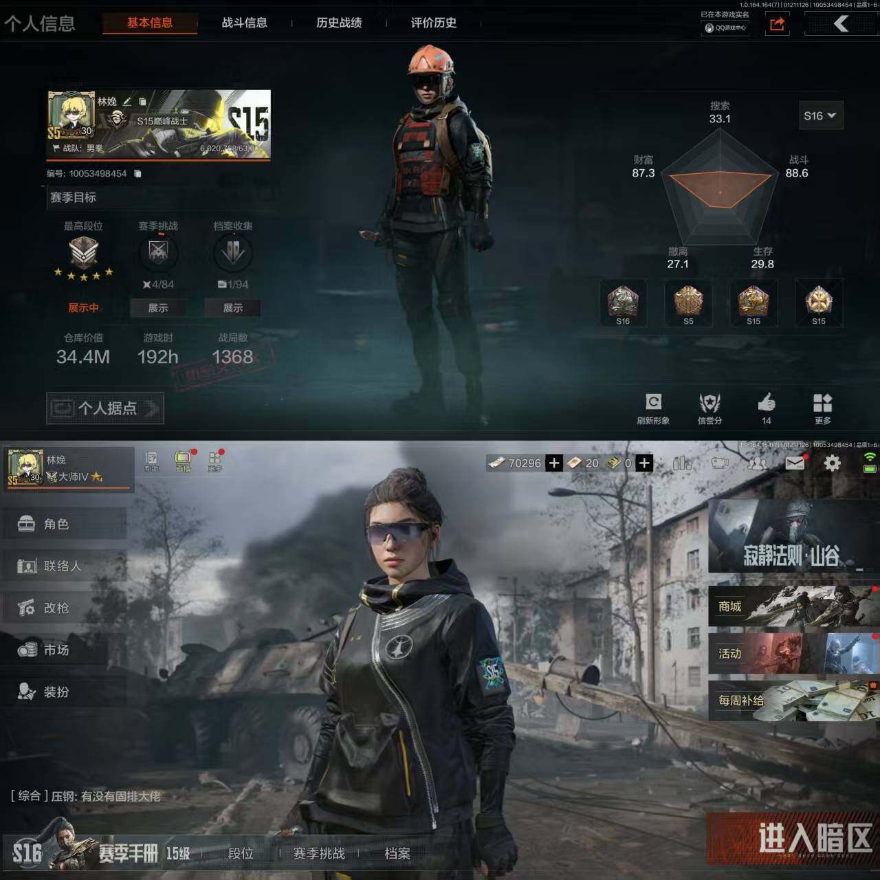 z30,2把刀空腔战术,1黄枪战术大师,仓库34.4M,科恩币20070K,1