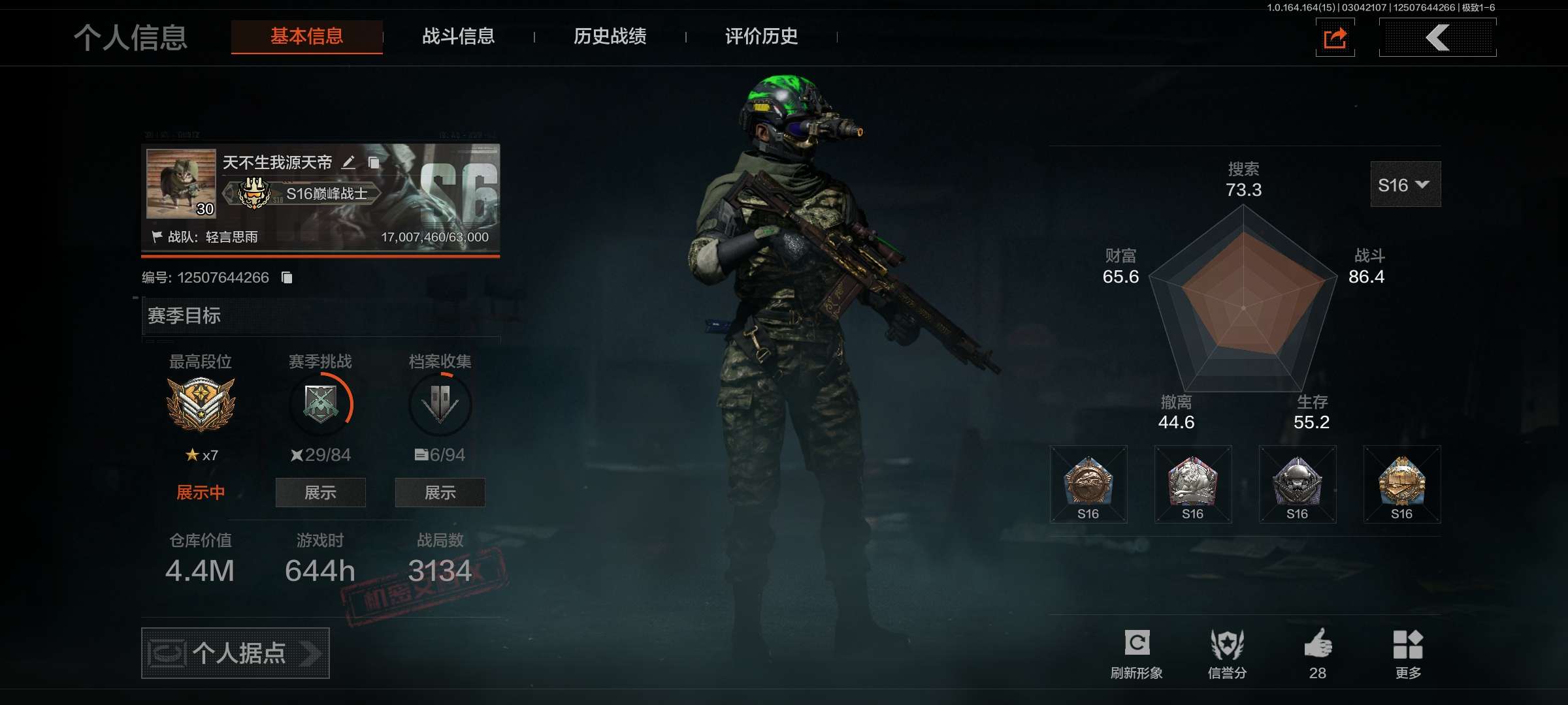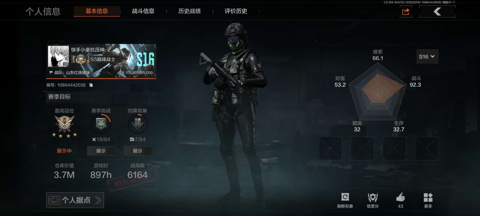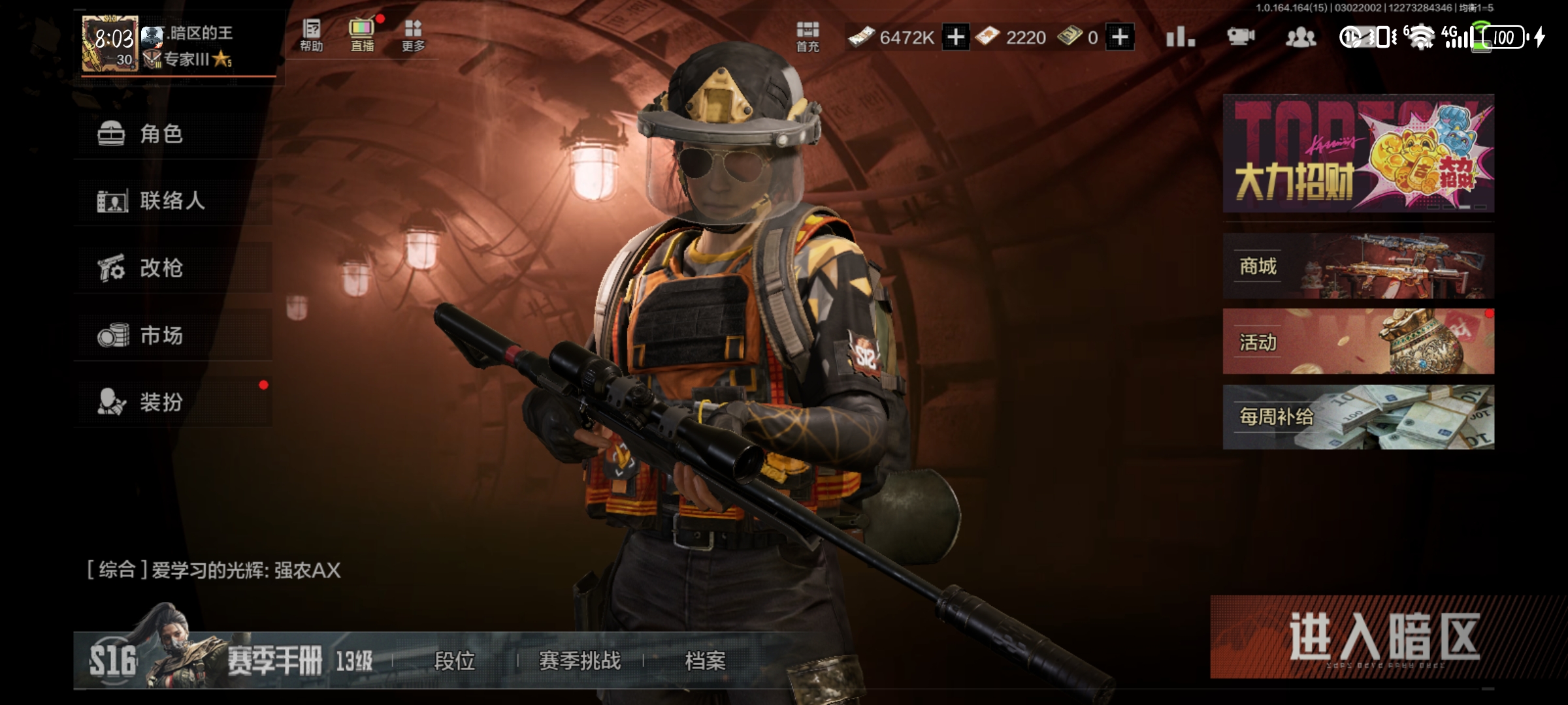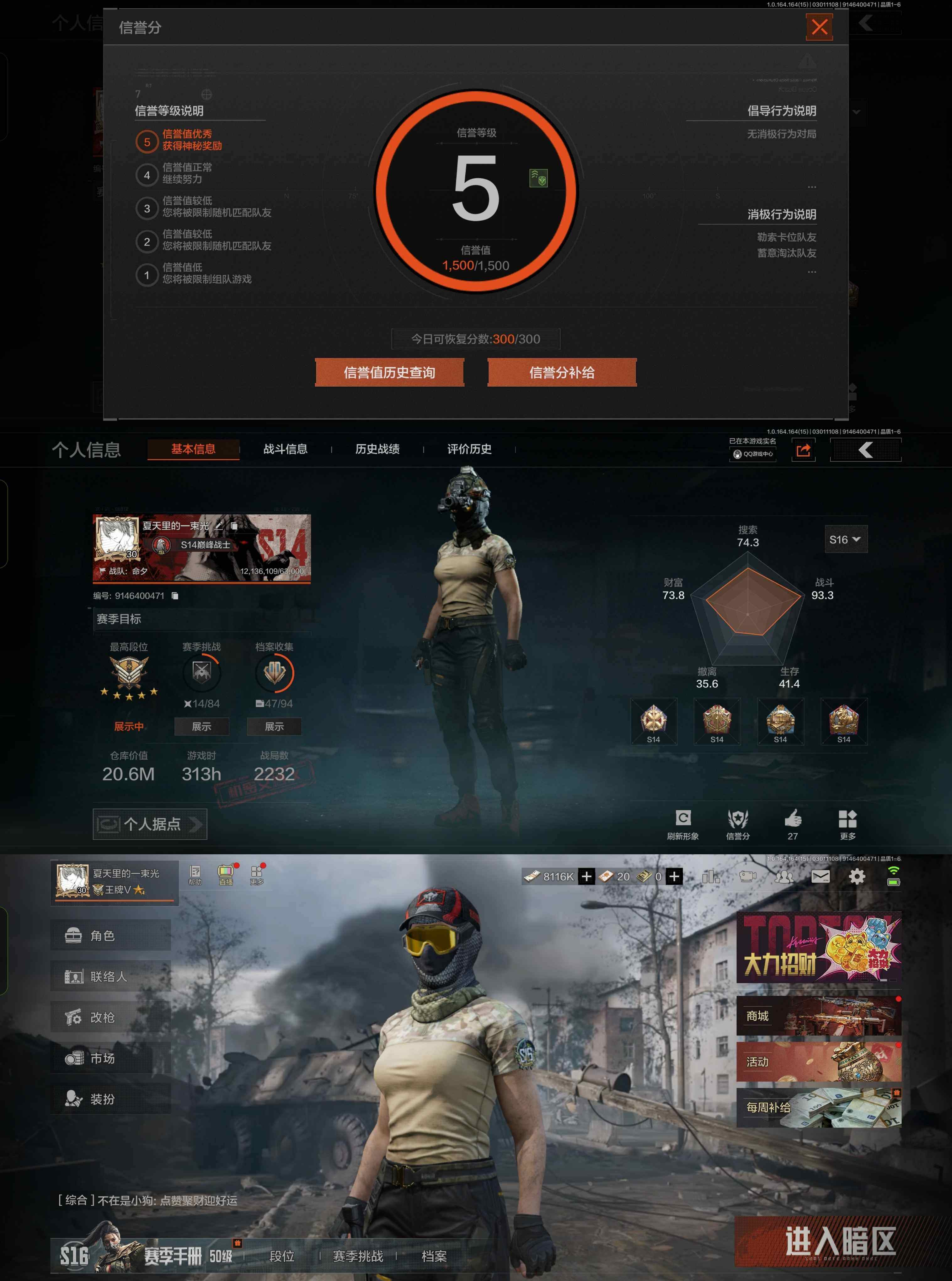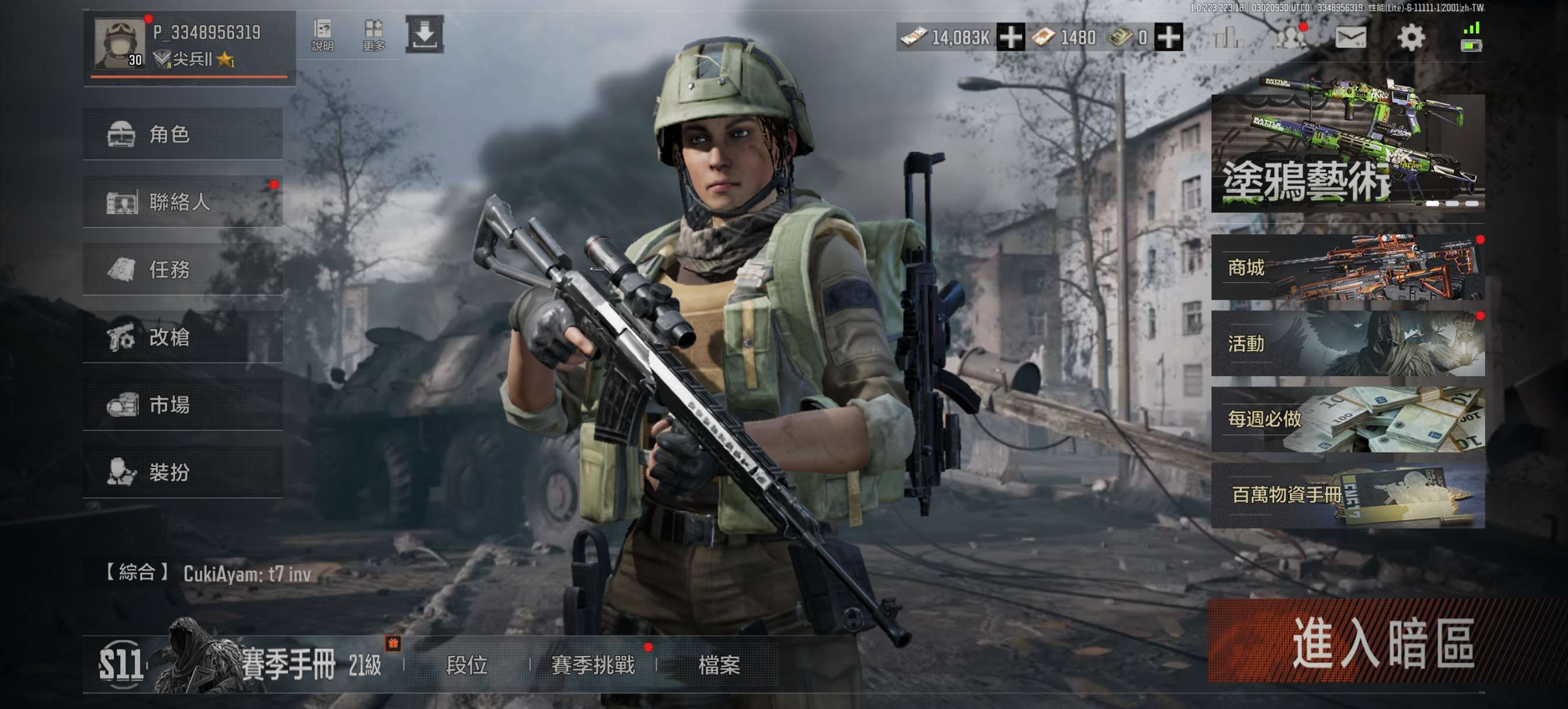 【国际服】暗区国际服手游版三十级的号,14m+科恩币,outlook邮箱登陆可换绑。