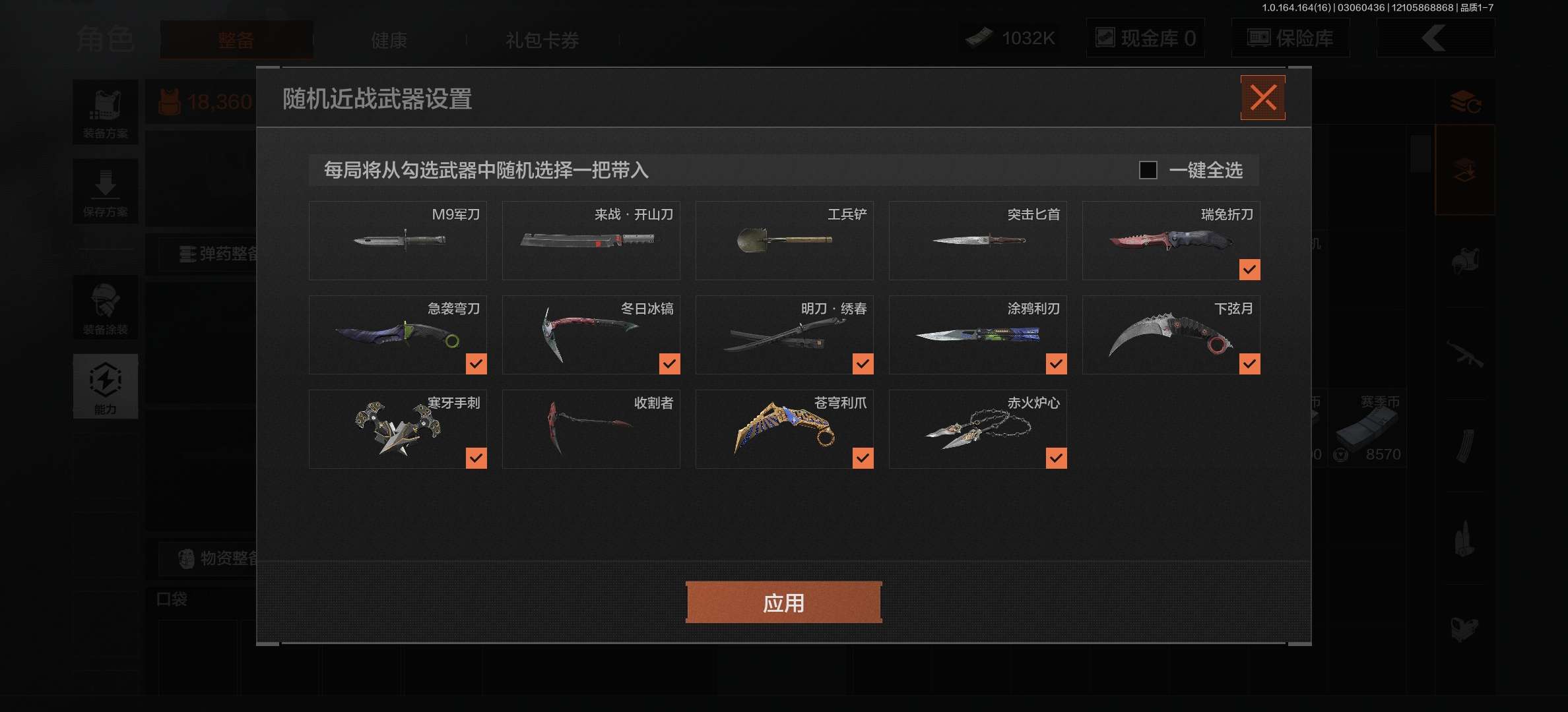 r08,8把刀6黄枪皮,竞技,战术大师,旗帜,钢铁真理,仓库36.3M,科恩币