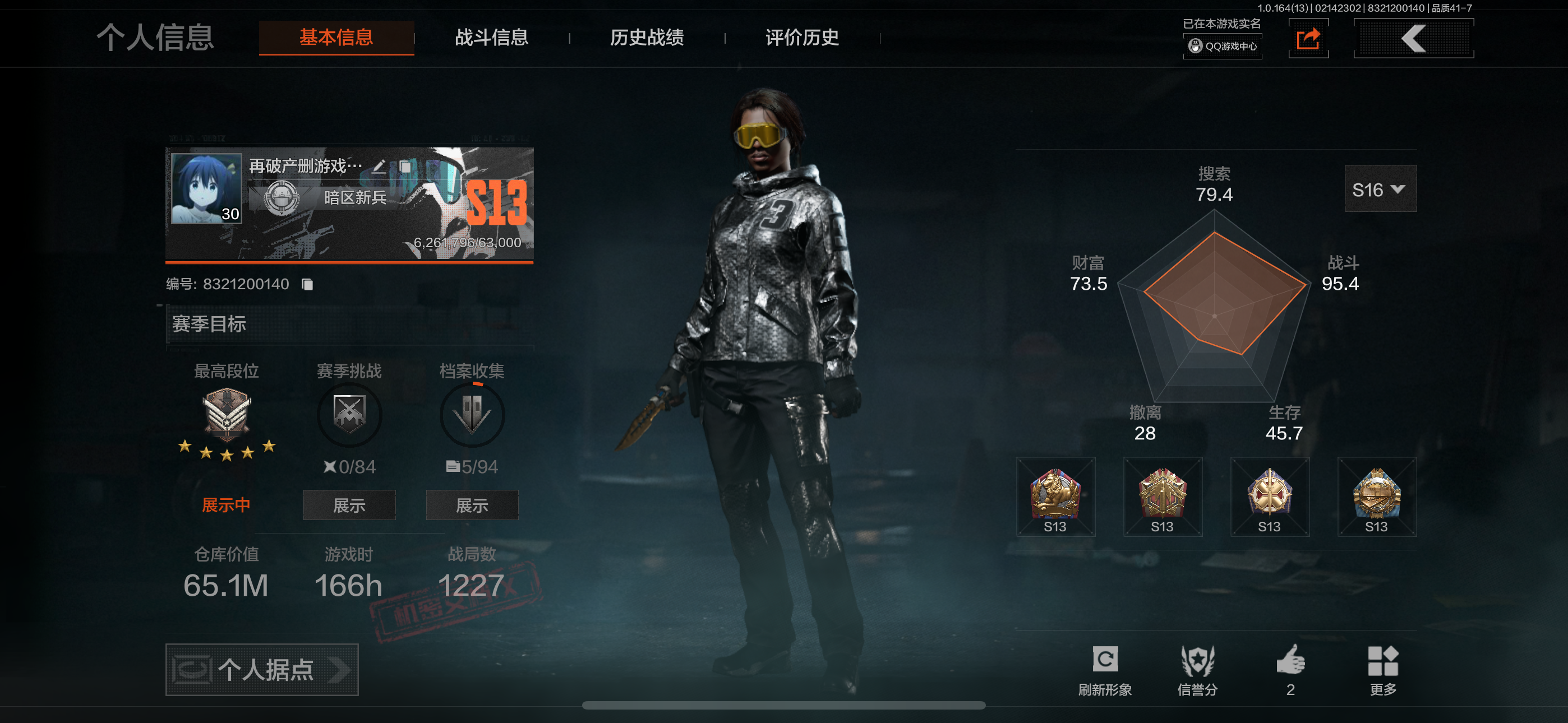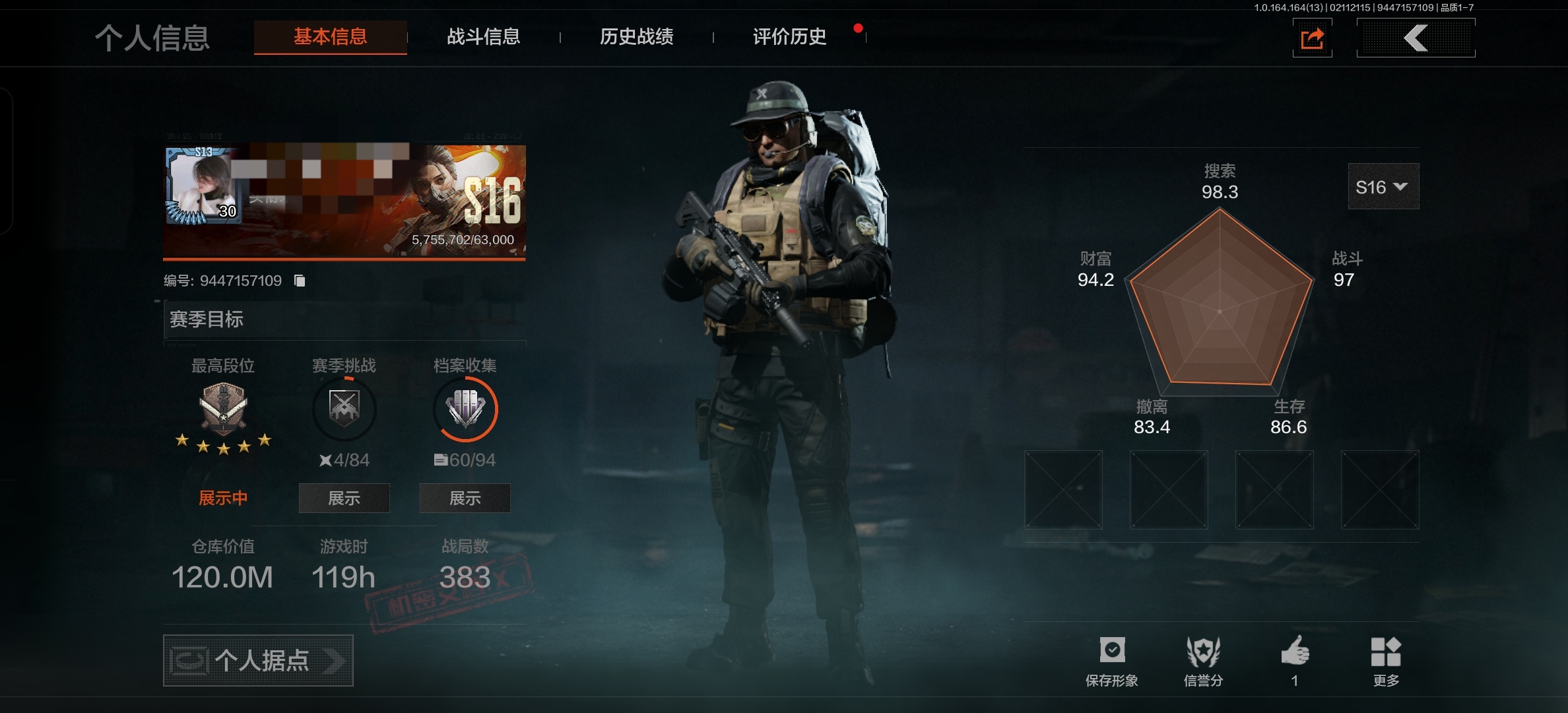 仓库价值(百万):85/战术甲胄防护手套/S-07折刀/白蔷薇斯黛拉/战术甲胄/套金客莫雷尔
