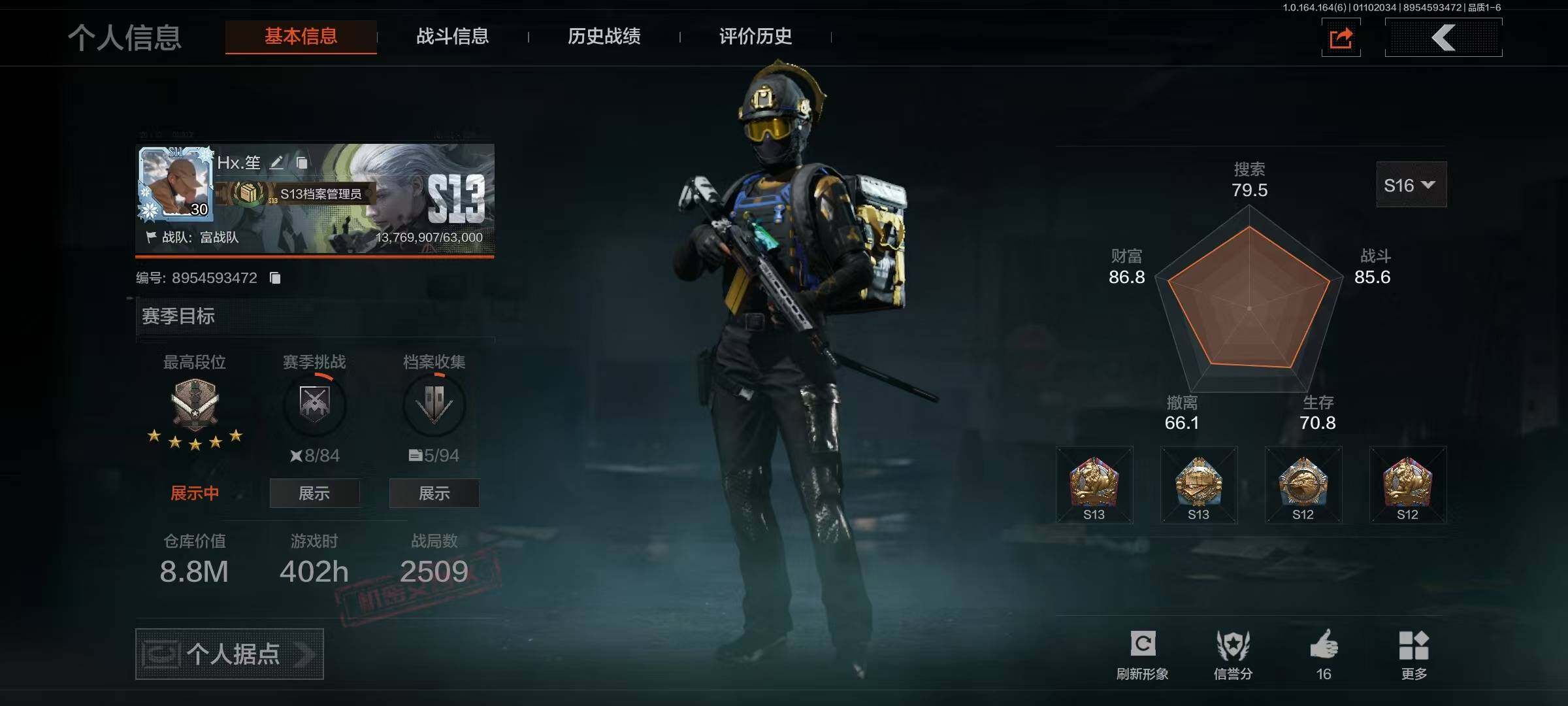 段位:大师/仓库价值(百万):3/瑞兔折刀