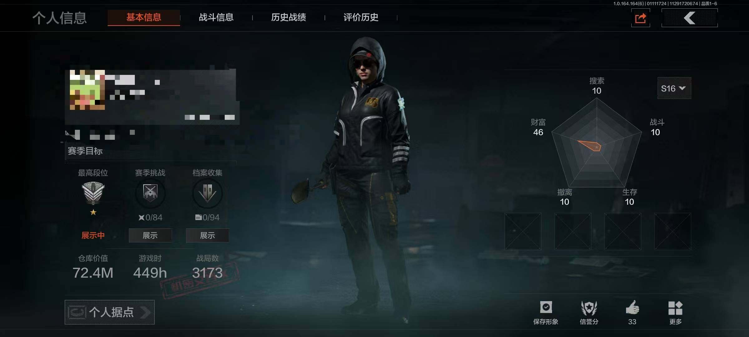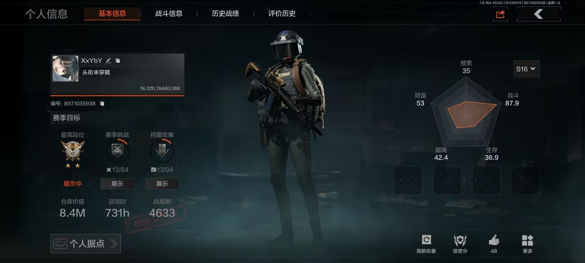 仓库价值(百万):17.1/柯恩币:1441000/热能武器补牢/突击匕首/使徒欧瑞恩/竞技H416/告丧夜曲AR57