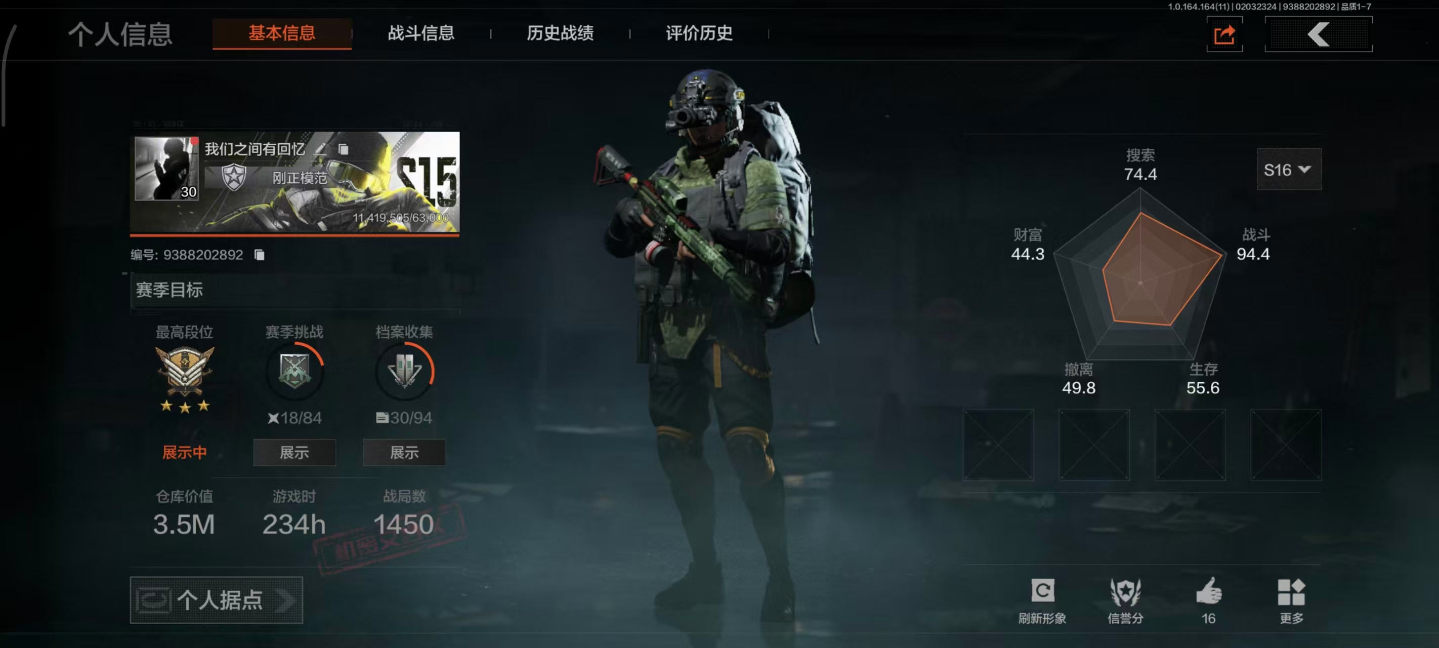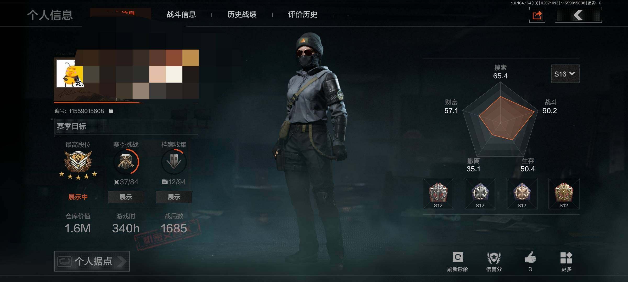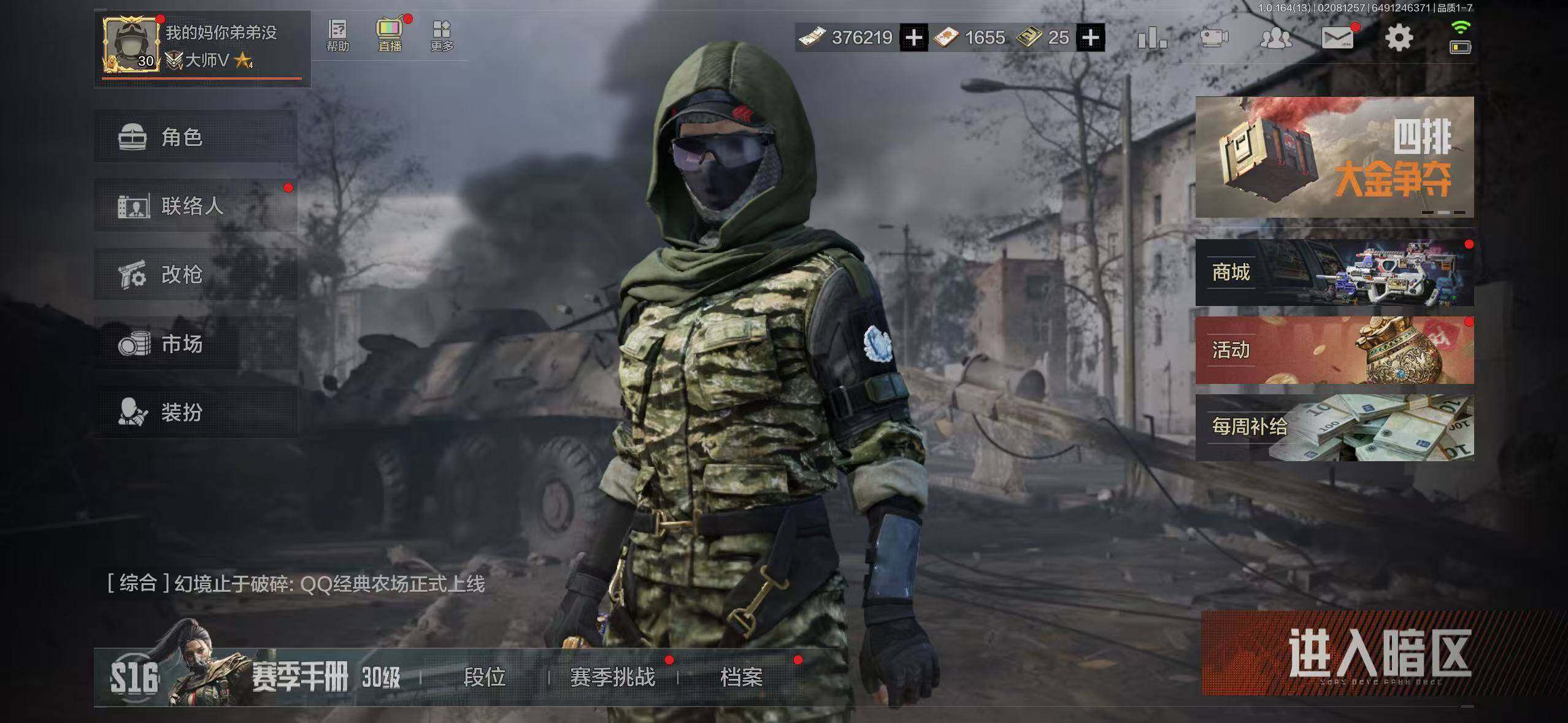 等级:30/段位:暗区传说/仓库价值(百万):1.6/柯恩币:756805/苍穹利爪/赢家匕首