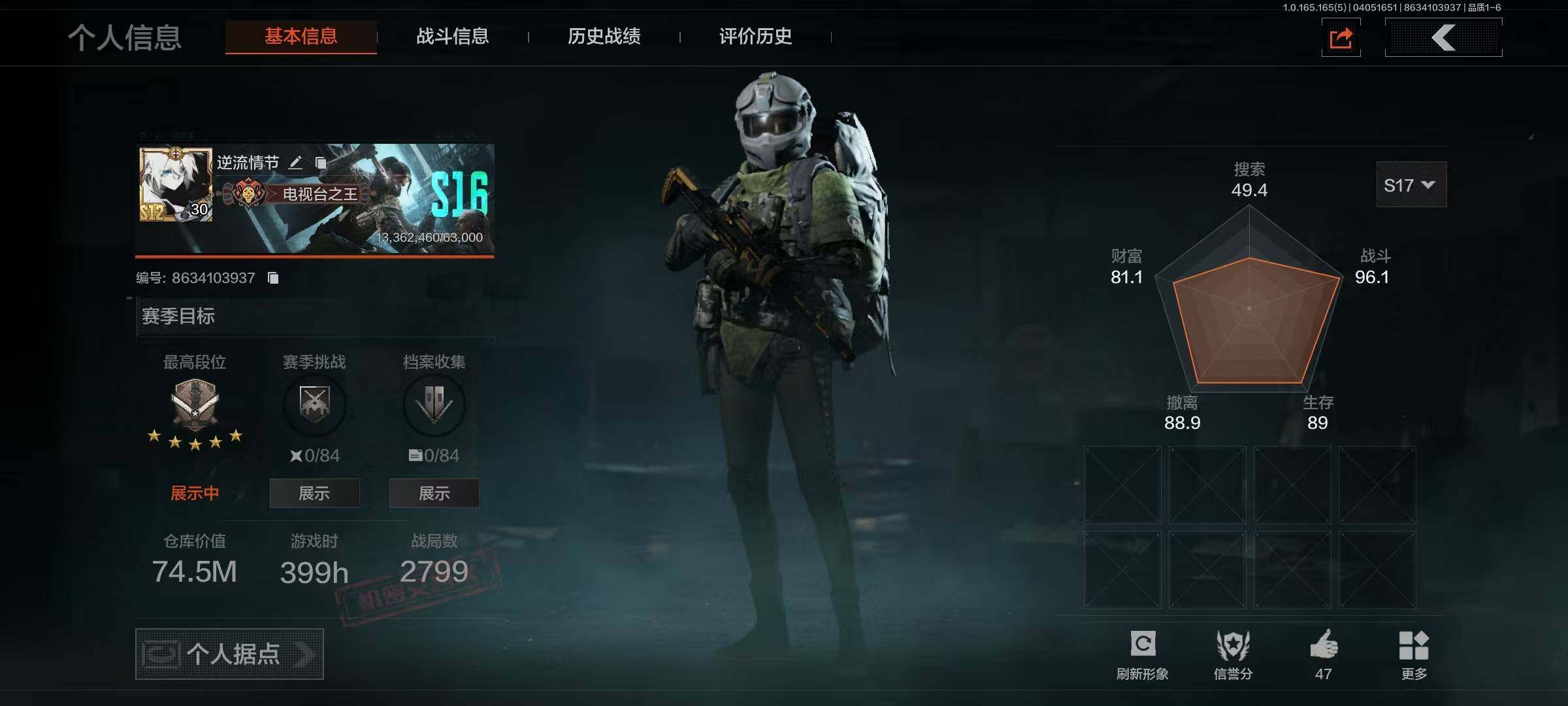 段位:暗区传说/仓库价值(百万):476/柯恩币:30905
