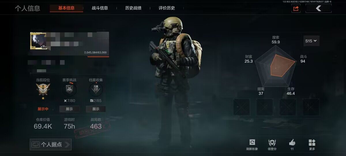 等级:30/段位:精英/仓库价值(百万):9/柯恩币:2867/工兵铲/收割者