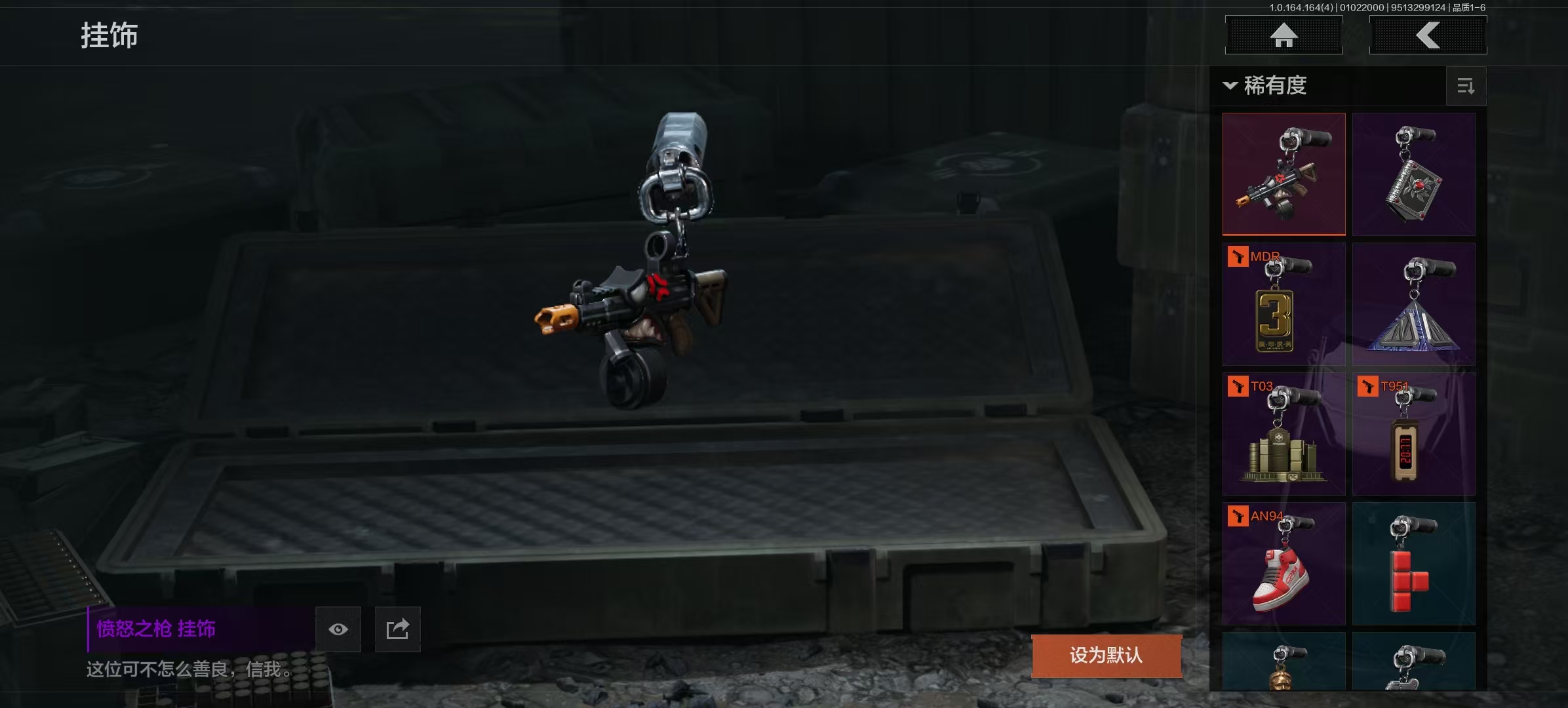 等级:30/段位:暗区传说/仓库价值(百万):0.3/赢家匕首/使徒欧瑞恩/告丧夜曲AR57/旧王圣谕QBZ191/利齿风暴MPX/告丧夜曲AUG