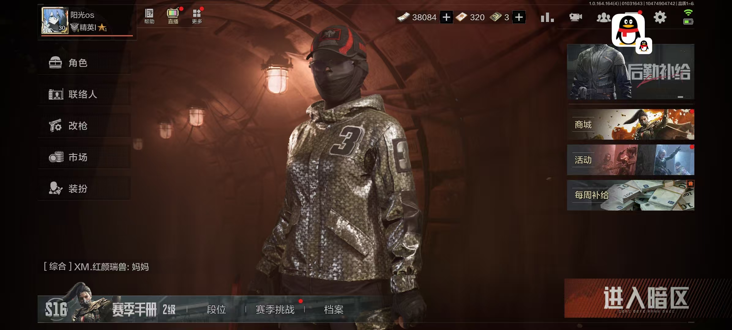 等级:30/段位:暗区传说/赢家匕首/棱光裂变QBU191/旧王圣谕VSS/利齿风暴MPX/钢铁真理QBZ191/浮鳞影青QBZ192/旗帜AEK