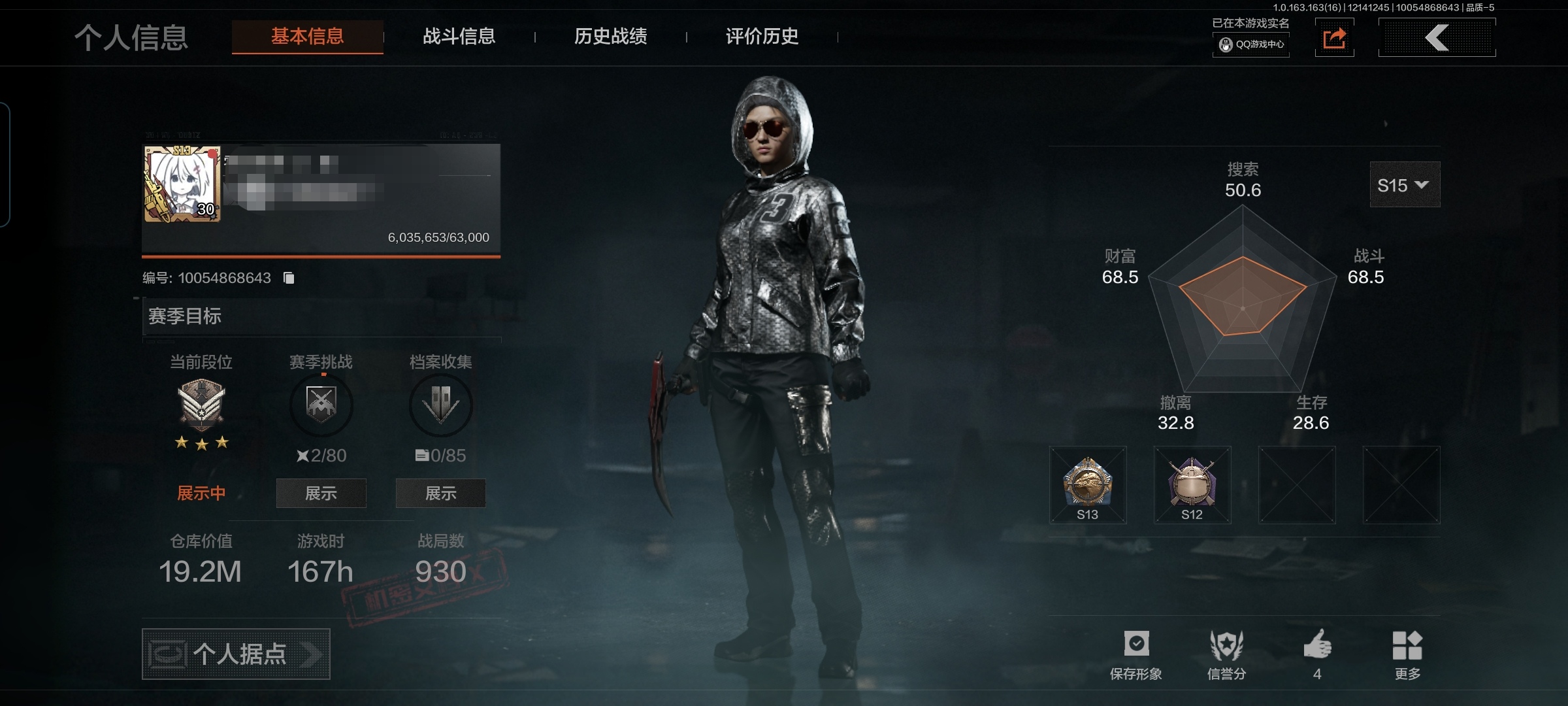 等级:30/段位:专家/仓库价值(百万):18/柯恩币:12930/苍穹利爪/空腔战术/S-07折刀/收割者/来战开山刀/工兵铲/使徒欧瑞恩