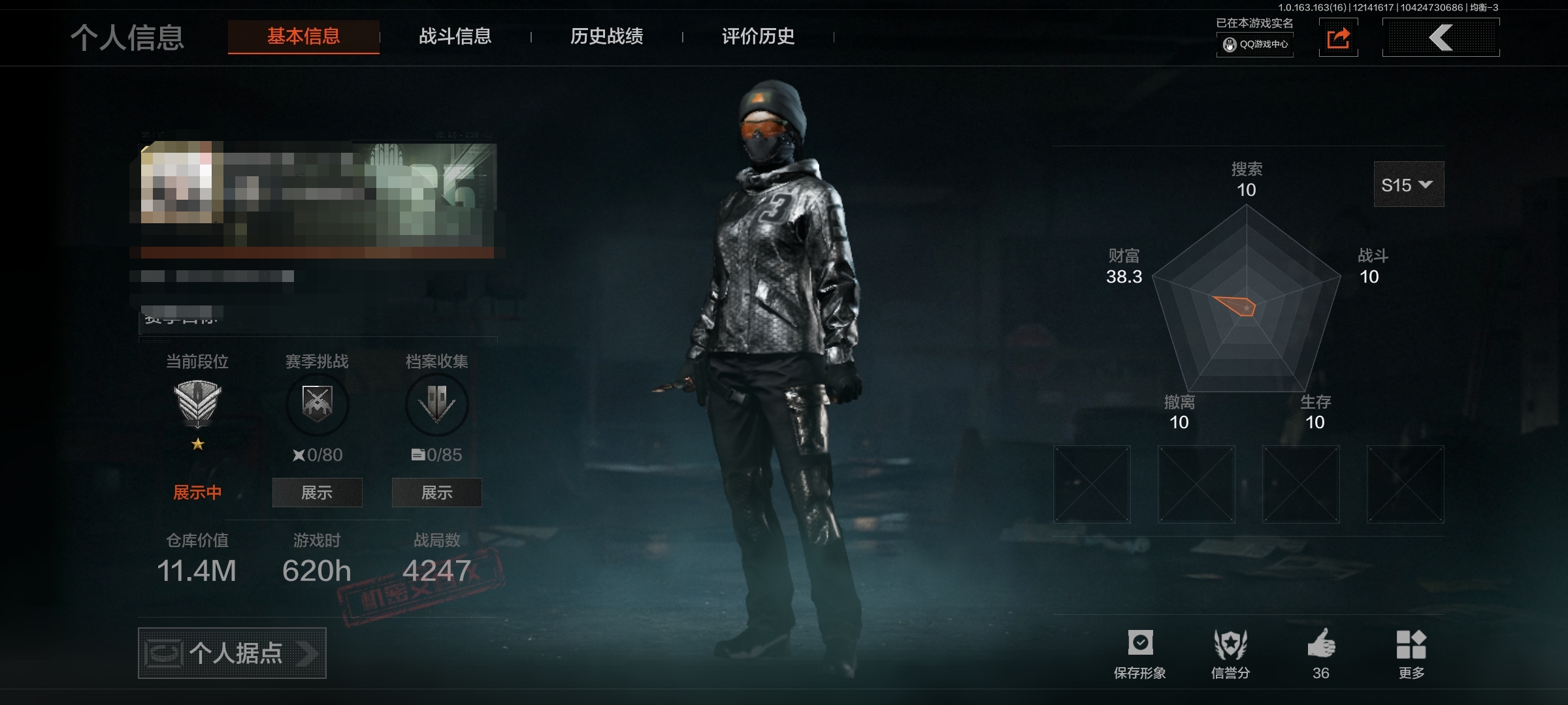 6金枪 4刀皮 2金衣 1手套 暗区传说-等级30-仓库价值393.7k-科恩币45k