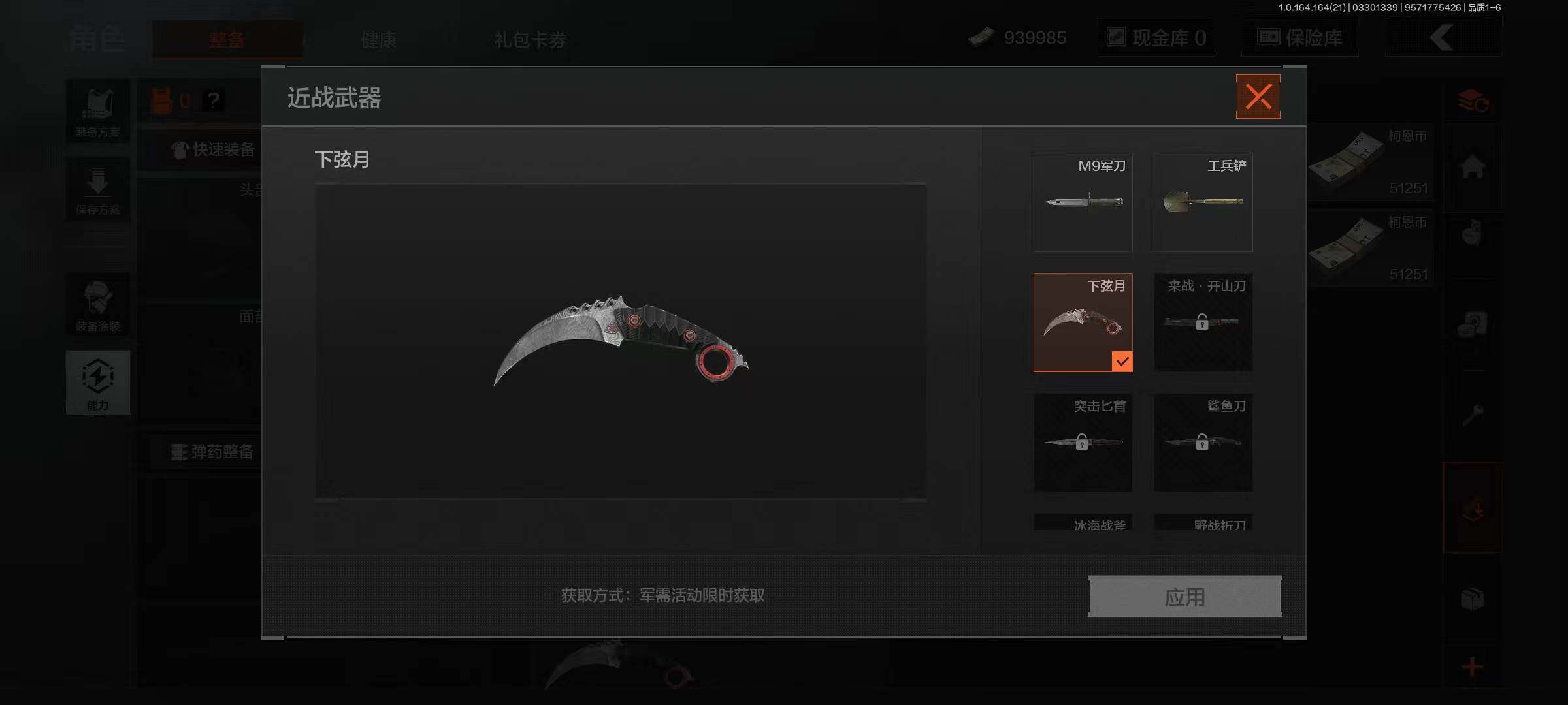 两把手感不错的刀皮,两橙一金衣,柯恩币1008K,金枪15把【勾选了部分装备-
