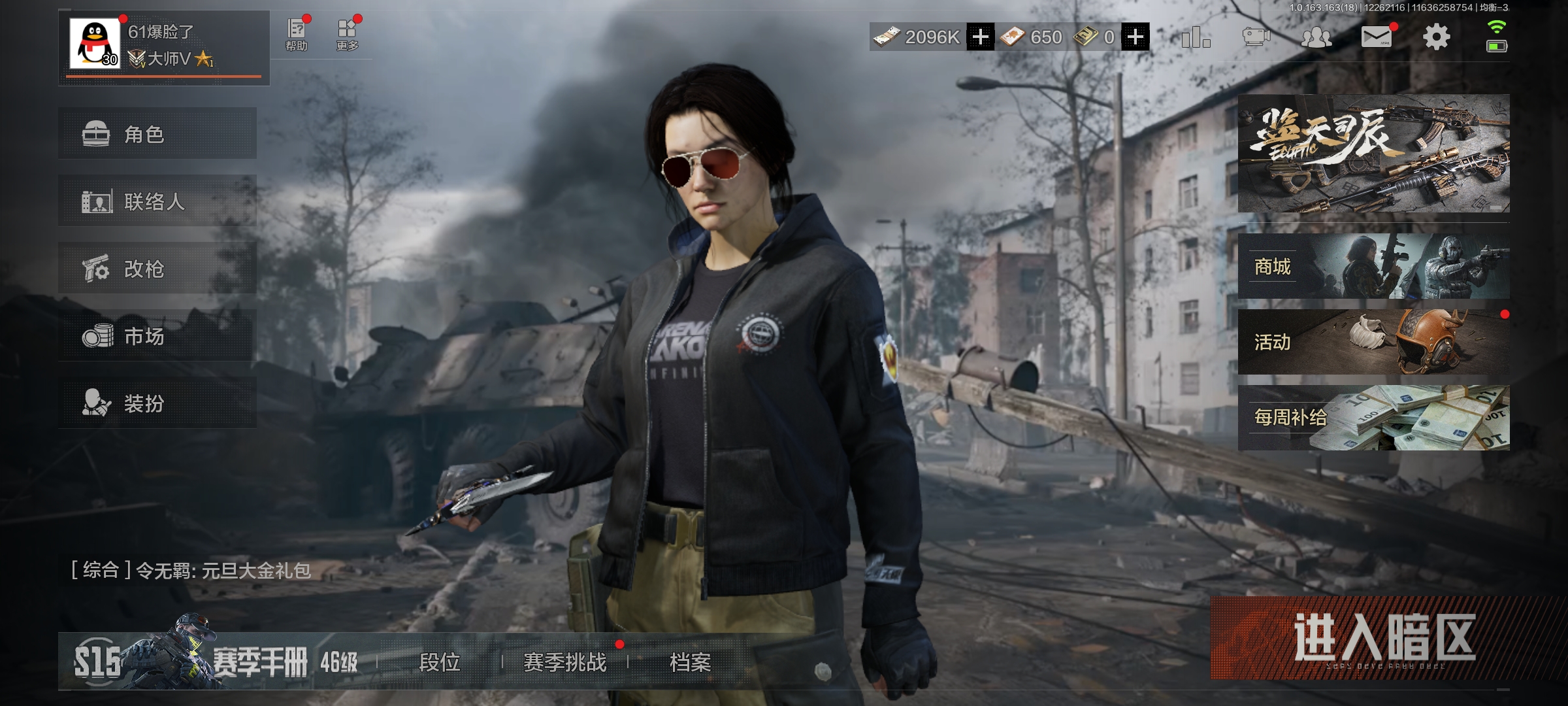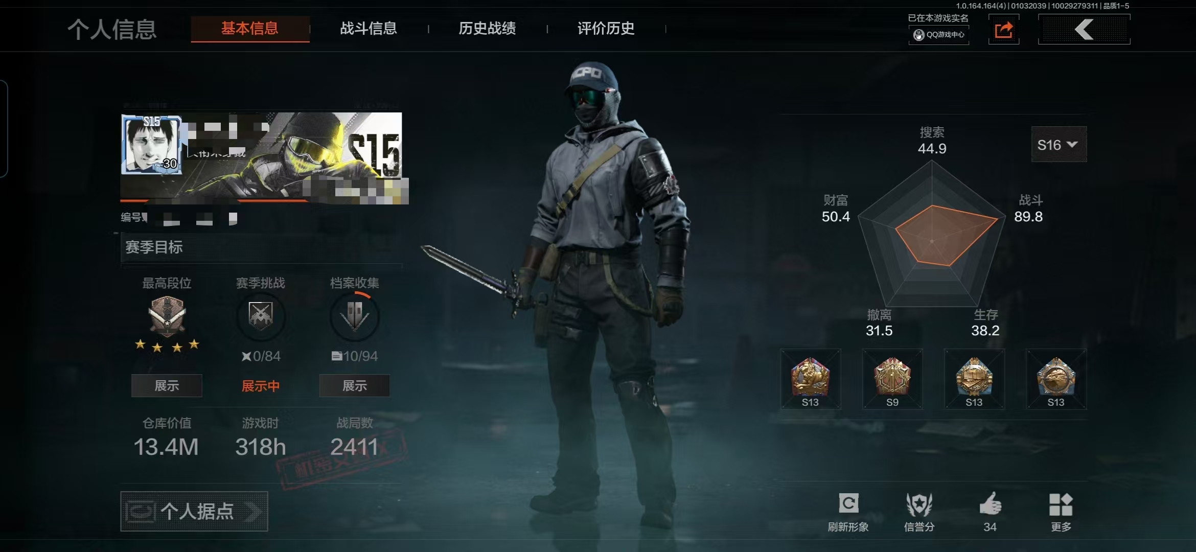 等级:30/段位:专家/仓库价值(百万):33/冬日冰镐/工兵铲