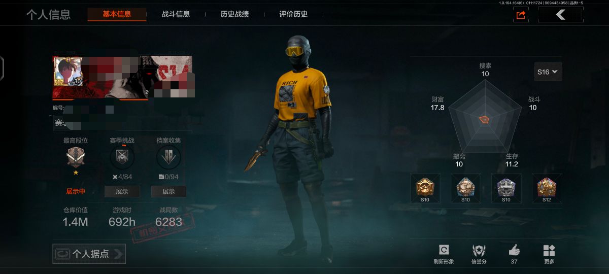 段位:新锐/仓库价值(百万):62.7/赢家匕首
