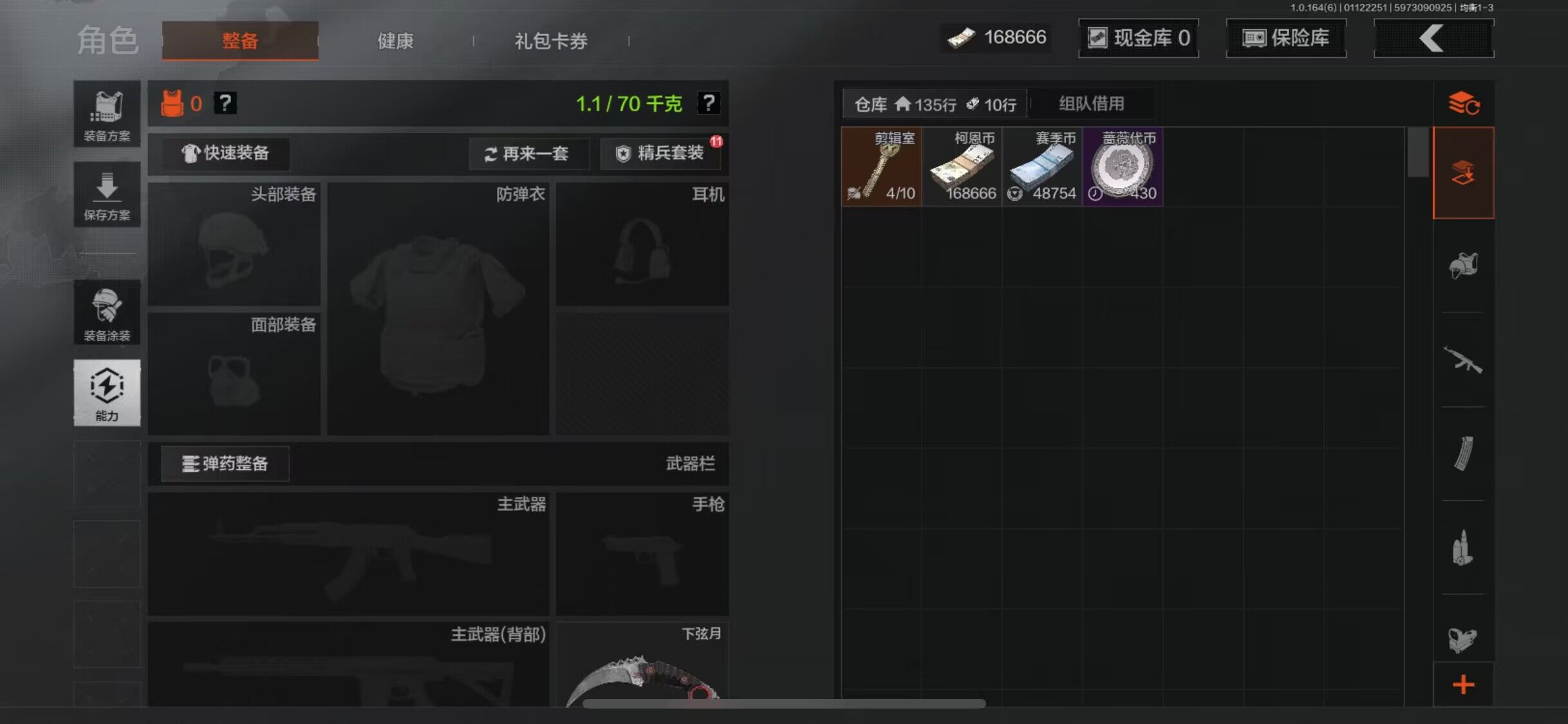 5.1M 仓库价值 苍穹利爪 4金枪 1金投掷物 科恩币1964K