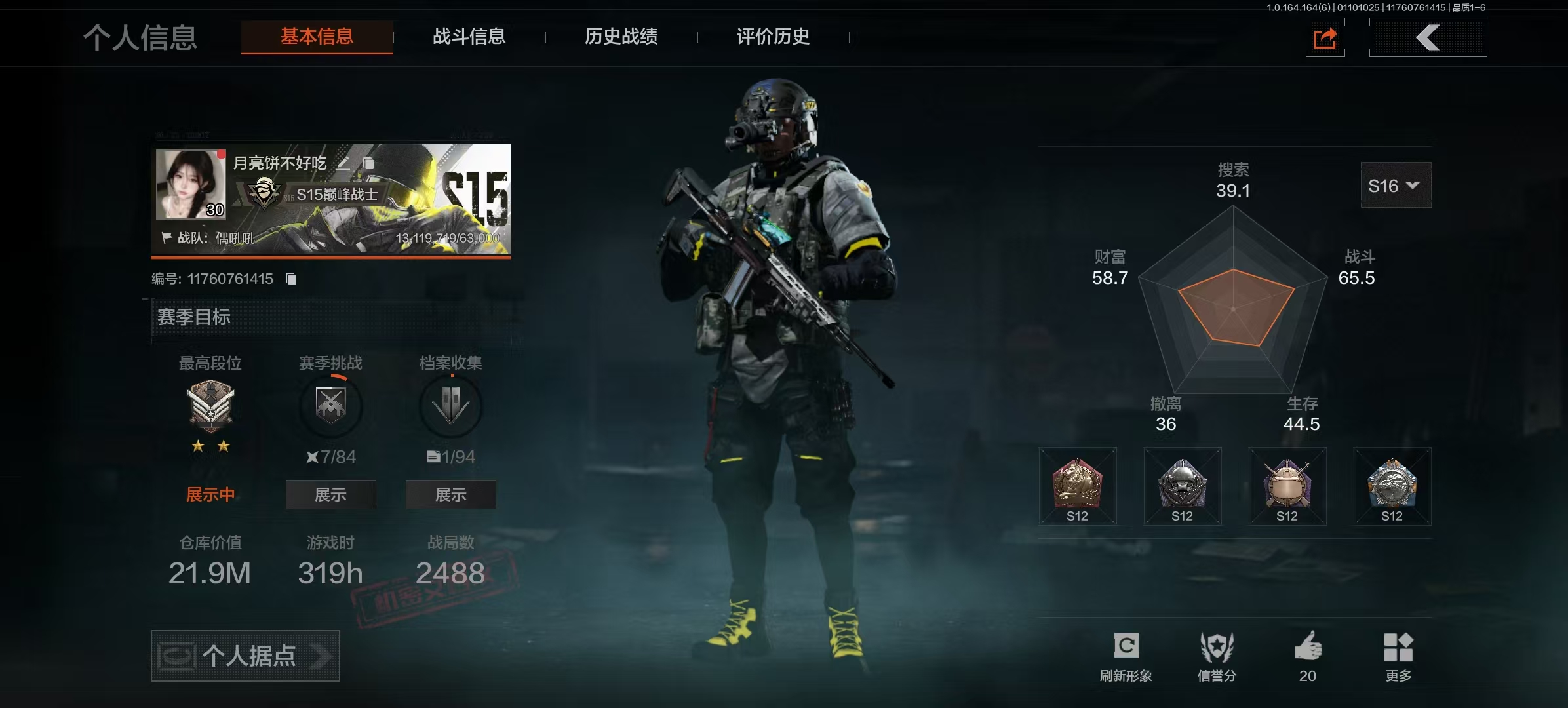 等级:30/段位:王牌/仓库价值(百万):0.5/柯恩币:0.1/下弦月