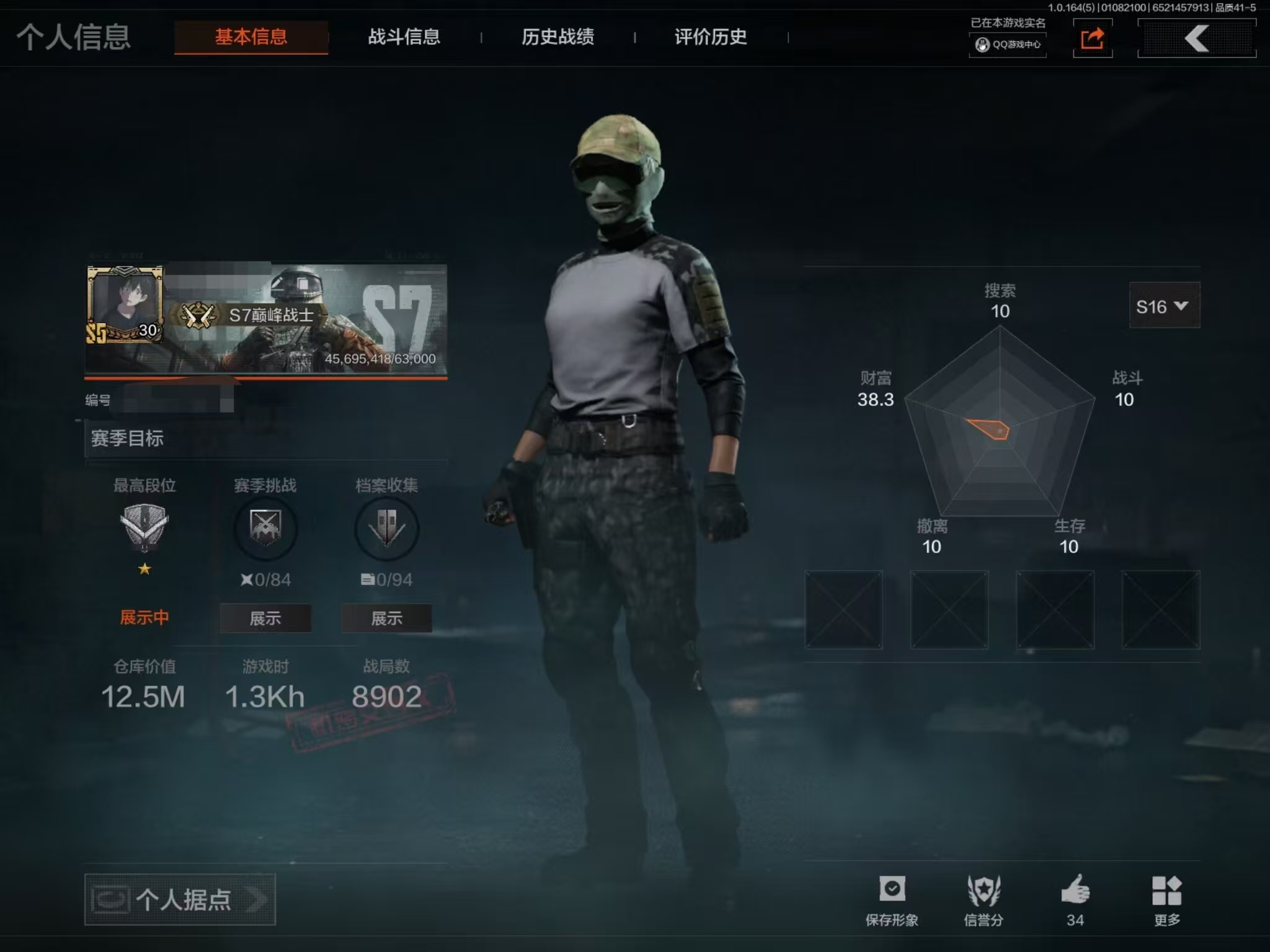 等级:30/段位:暗区传说/仓库价值(百万):70/柯恩币:45950000/苍穹利爪/伦琴幻影FAL/